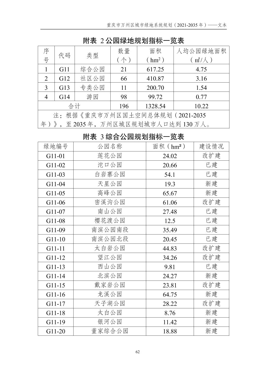 關于印發《重慶市萬州區城市綠地系統規劃(2021—2035年)》的通知