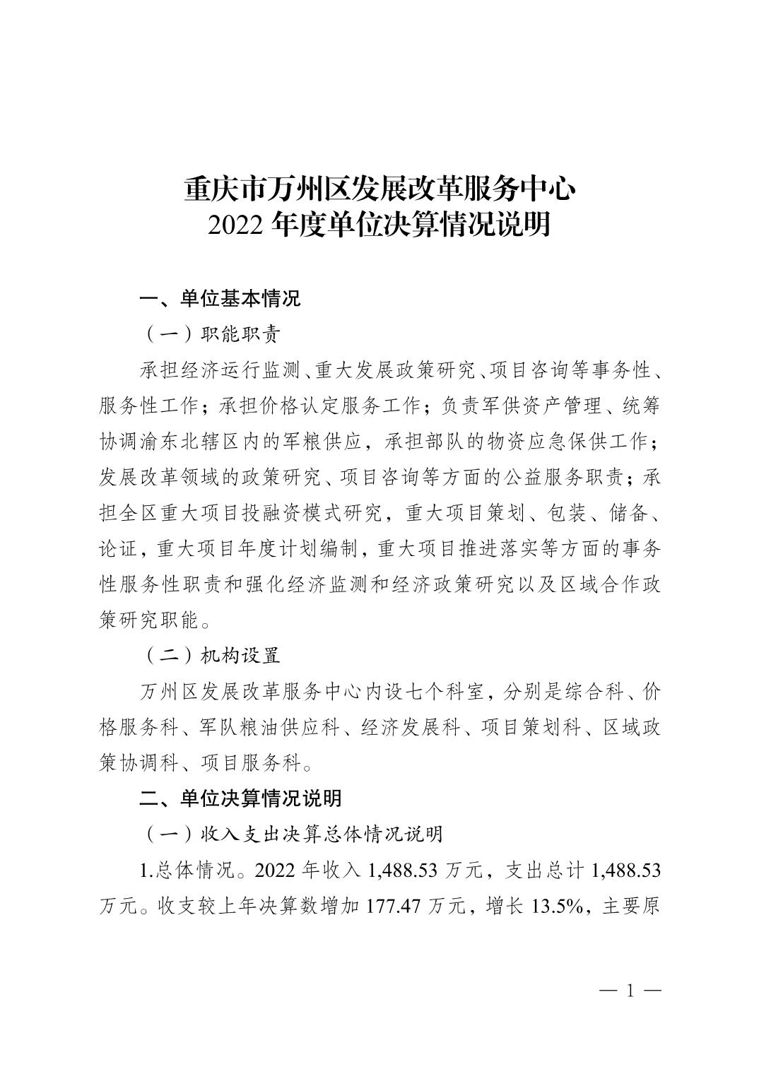 重慶市萬州區發展改革服務中心 2022年度單位決算情況說明