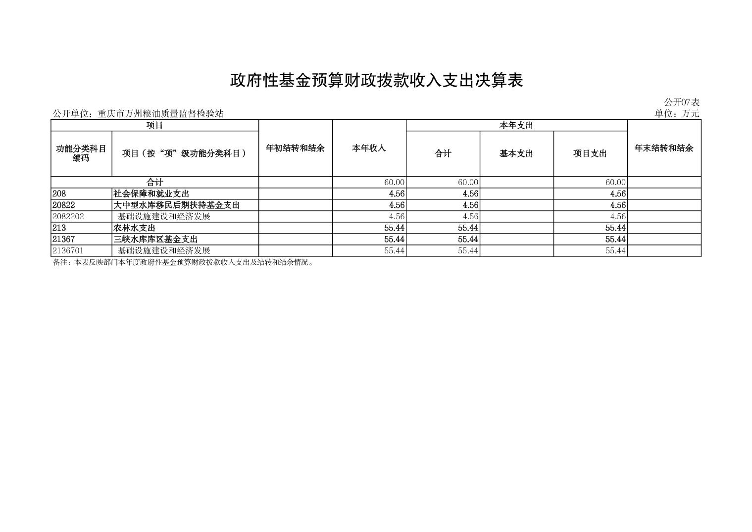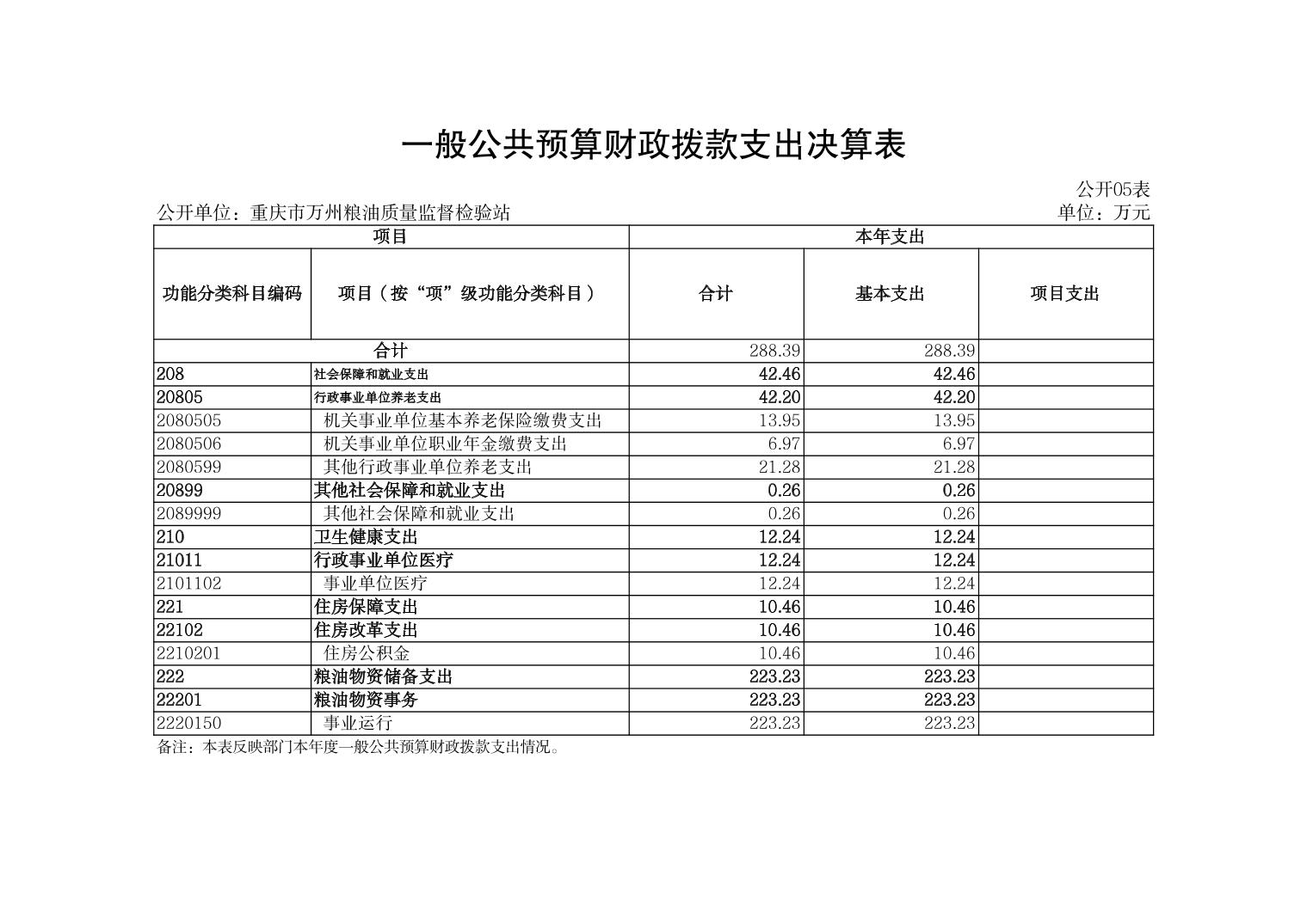 重慶市萬州糧油質(zhì)量監(jiān)督檢驗(yàn)站 2022年度單位決算情況說明