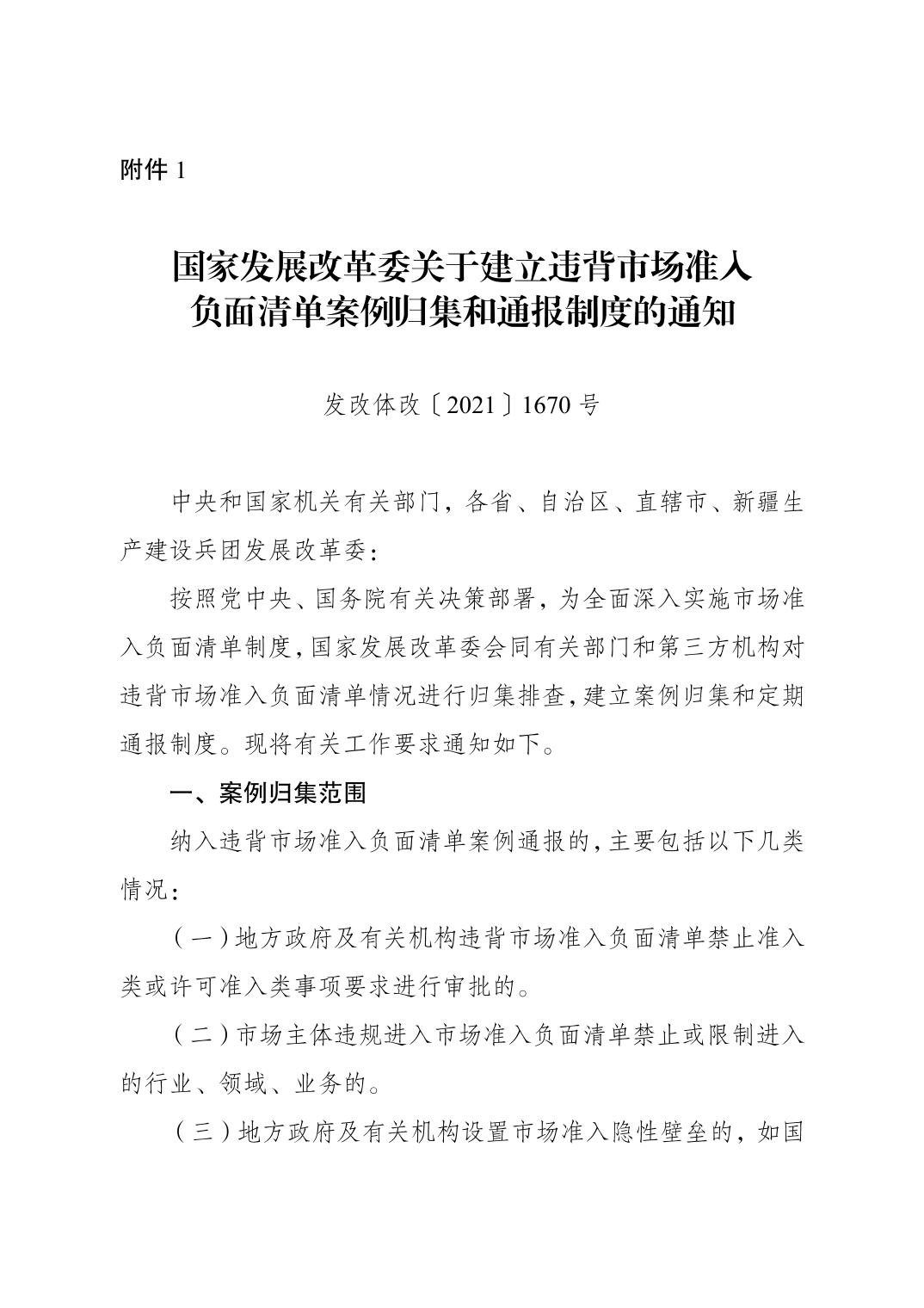 附件:1.國家發展改革委關于建立違背市場準入負面清單