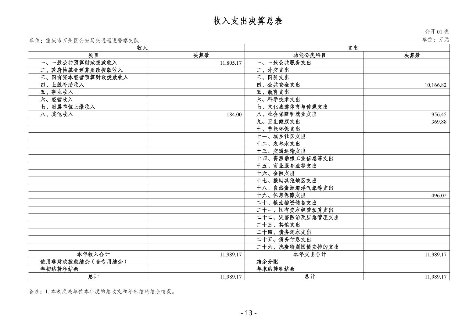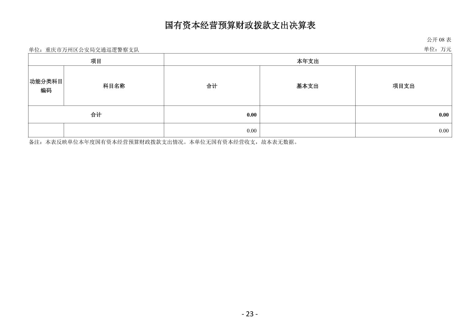 重慶市萬州區(qū)公安局交通巡邏警察支隊(duì) 2024 年度決算公開說明