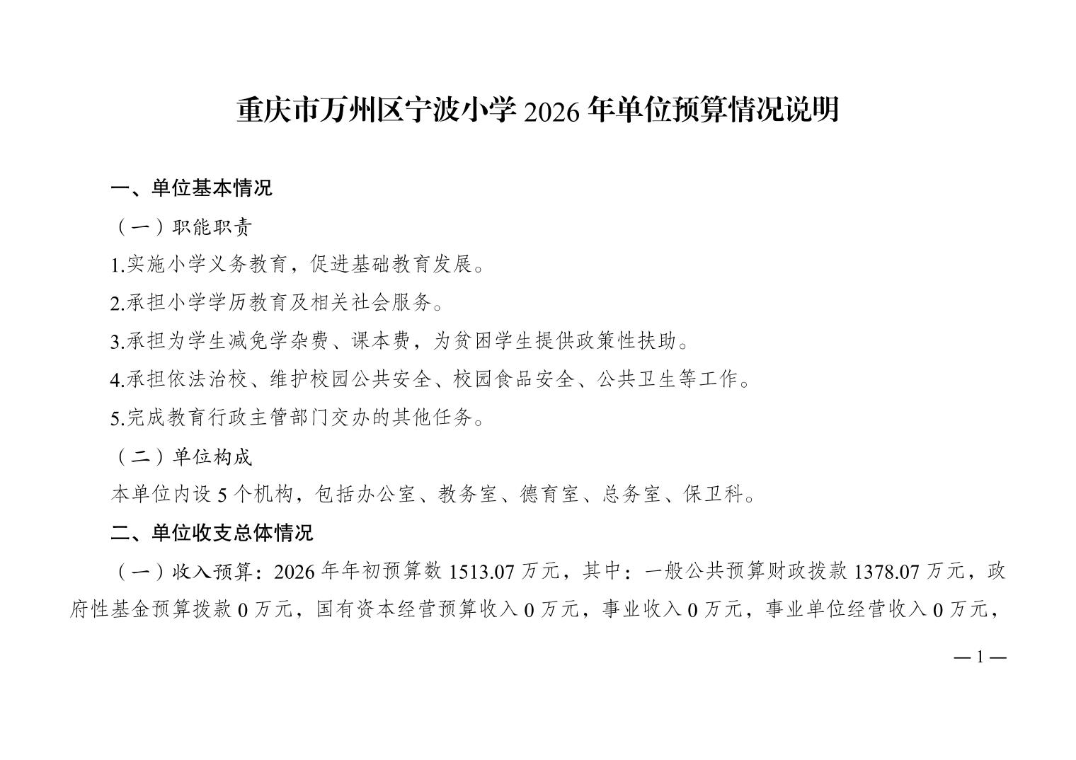 重慶市萬州區寧波小學2026年單位預算情況說明