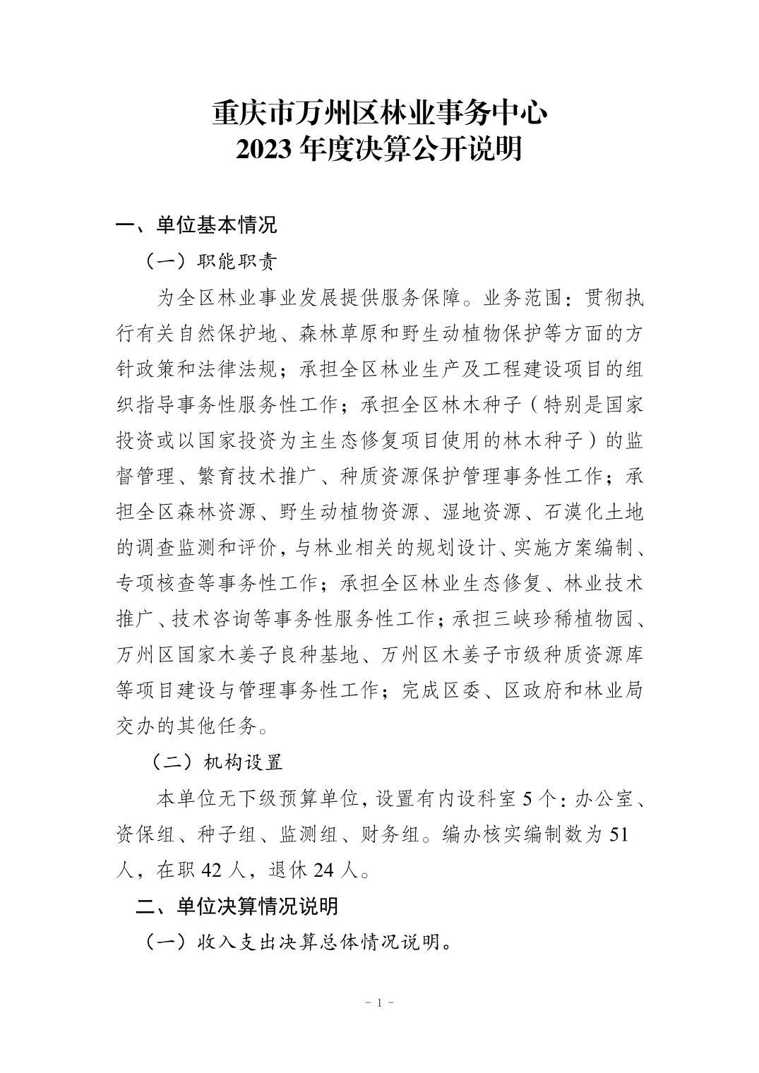 重慶市萬州區林業事務中心2023年度決算公開說明