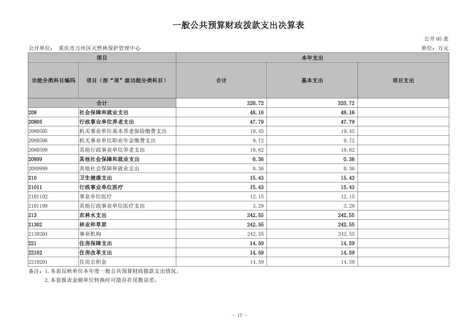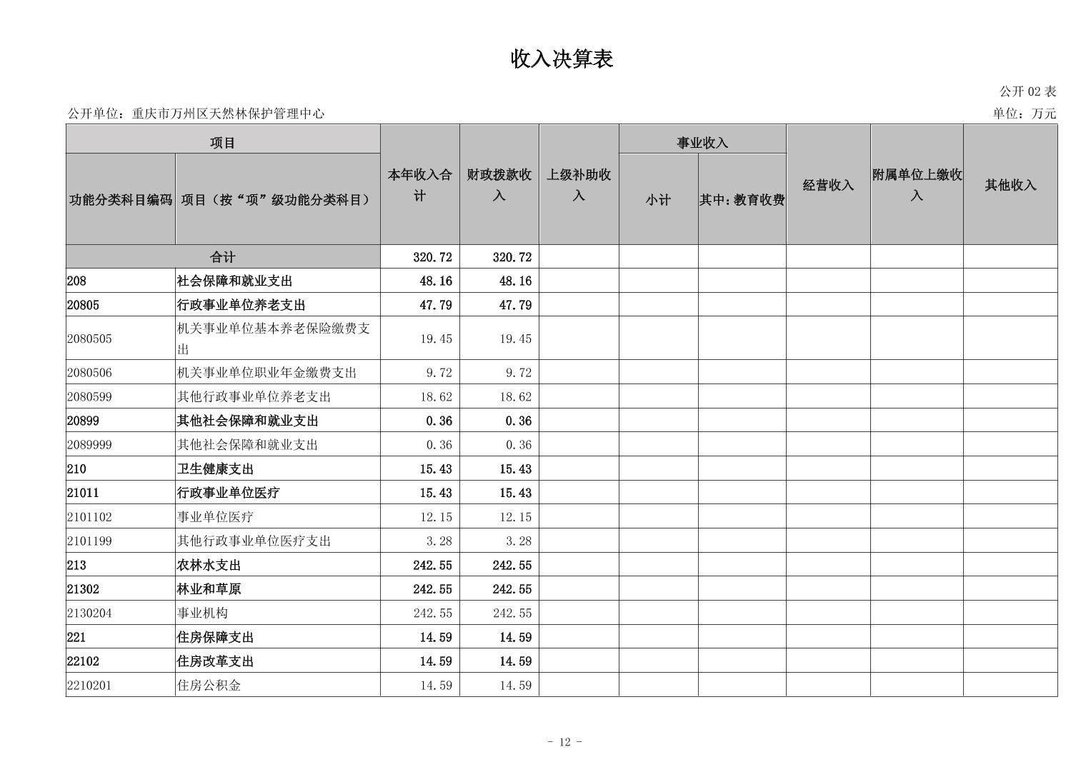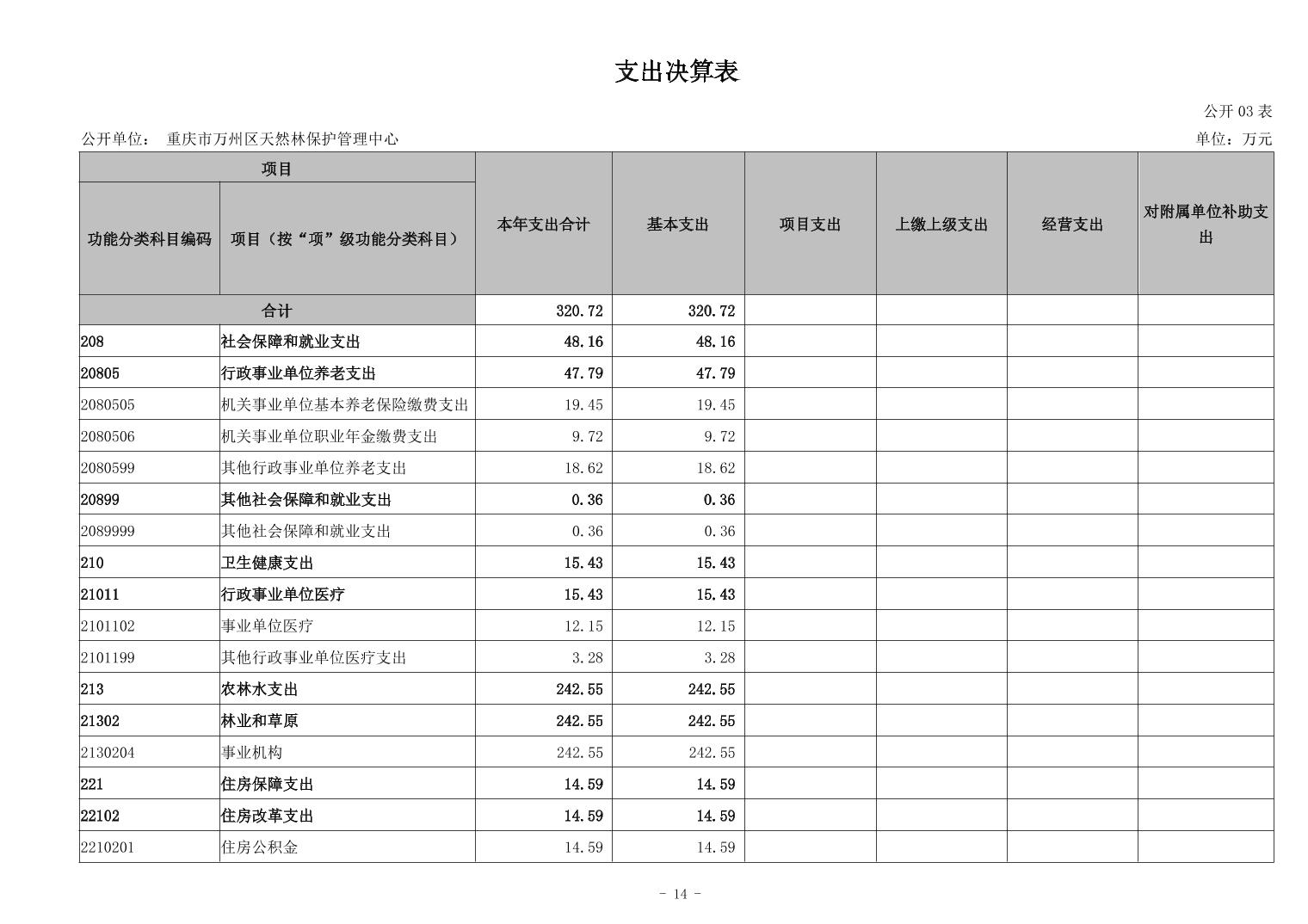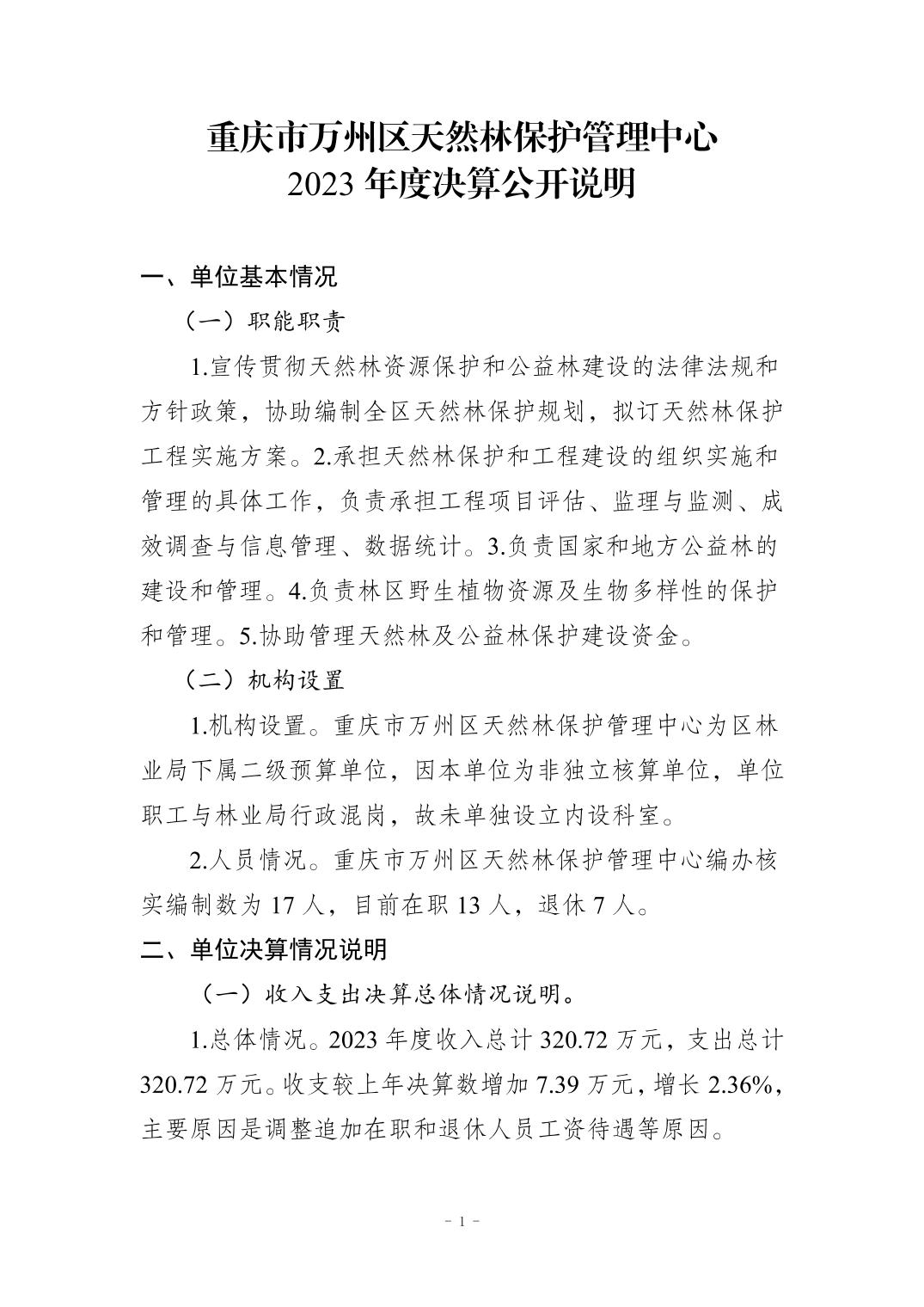 重慶市萬州區天然林保護管理中心2023年度決算公開說明