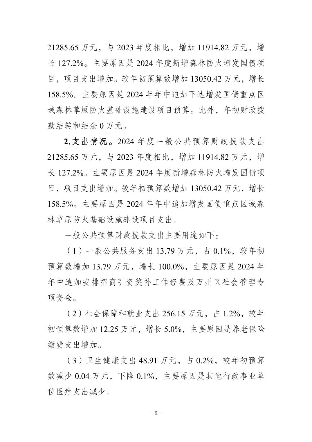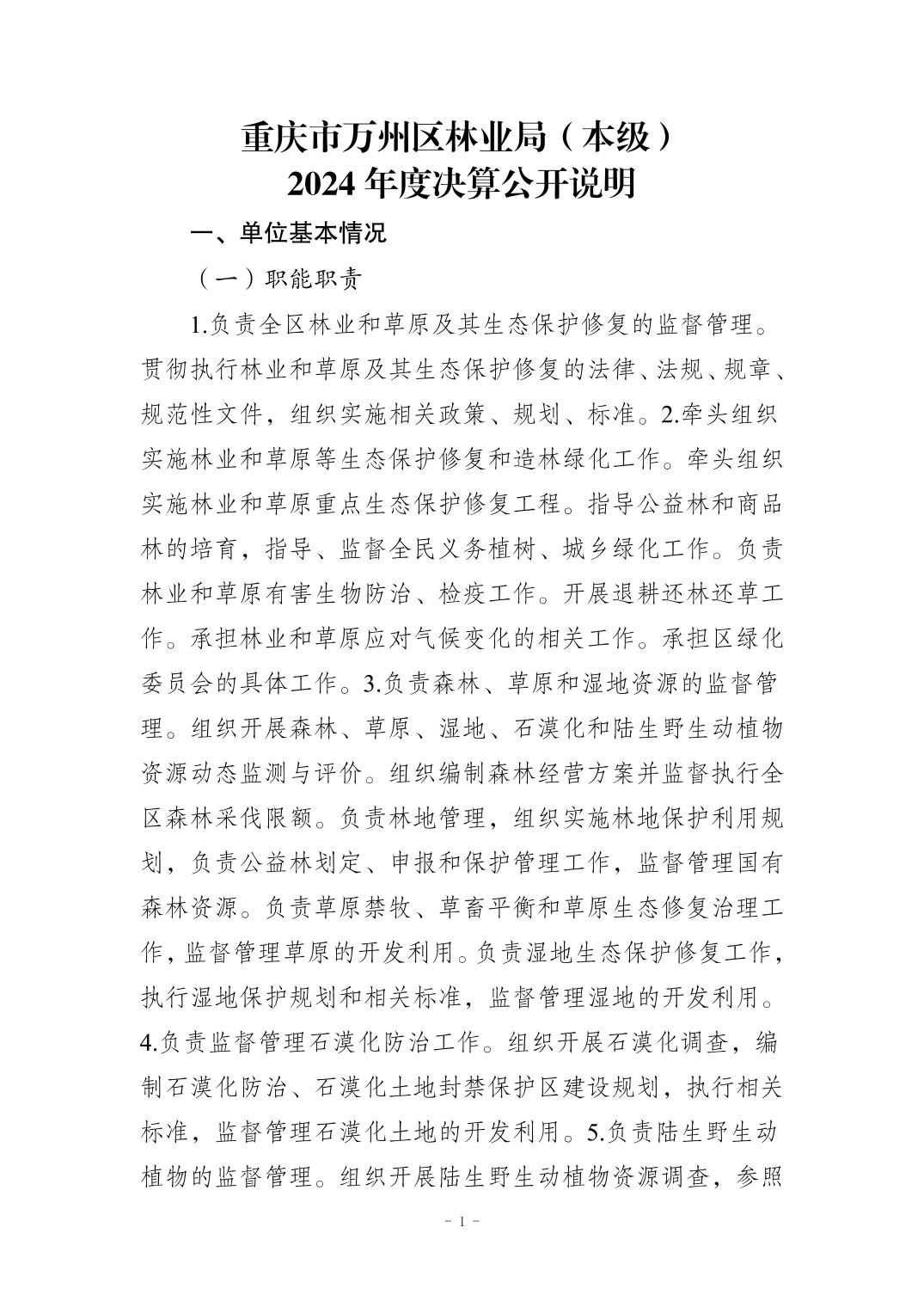 重慶市萬州區(qū)林業(yè)局(本級)2024年決算公開說明