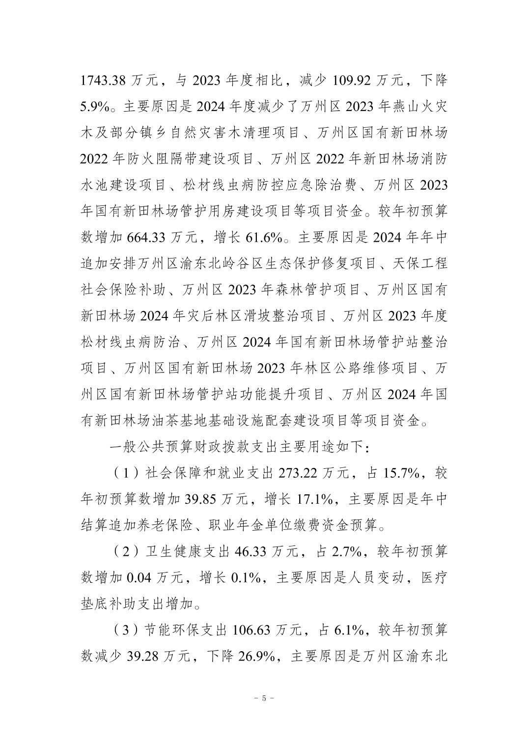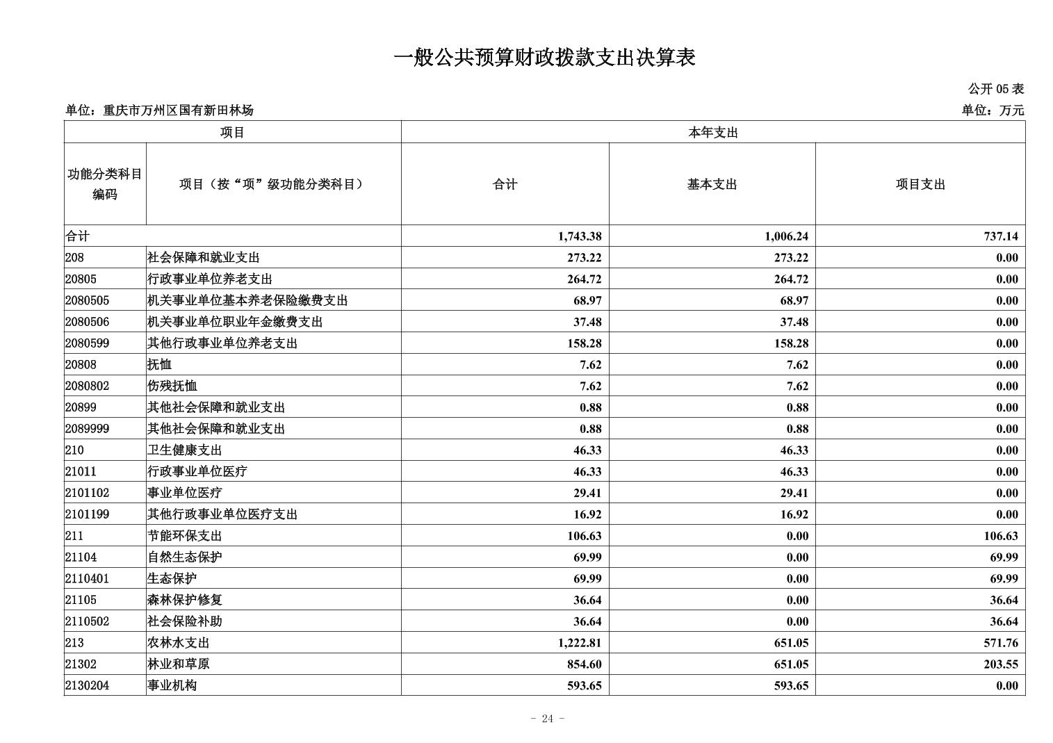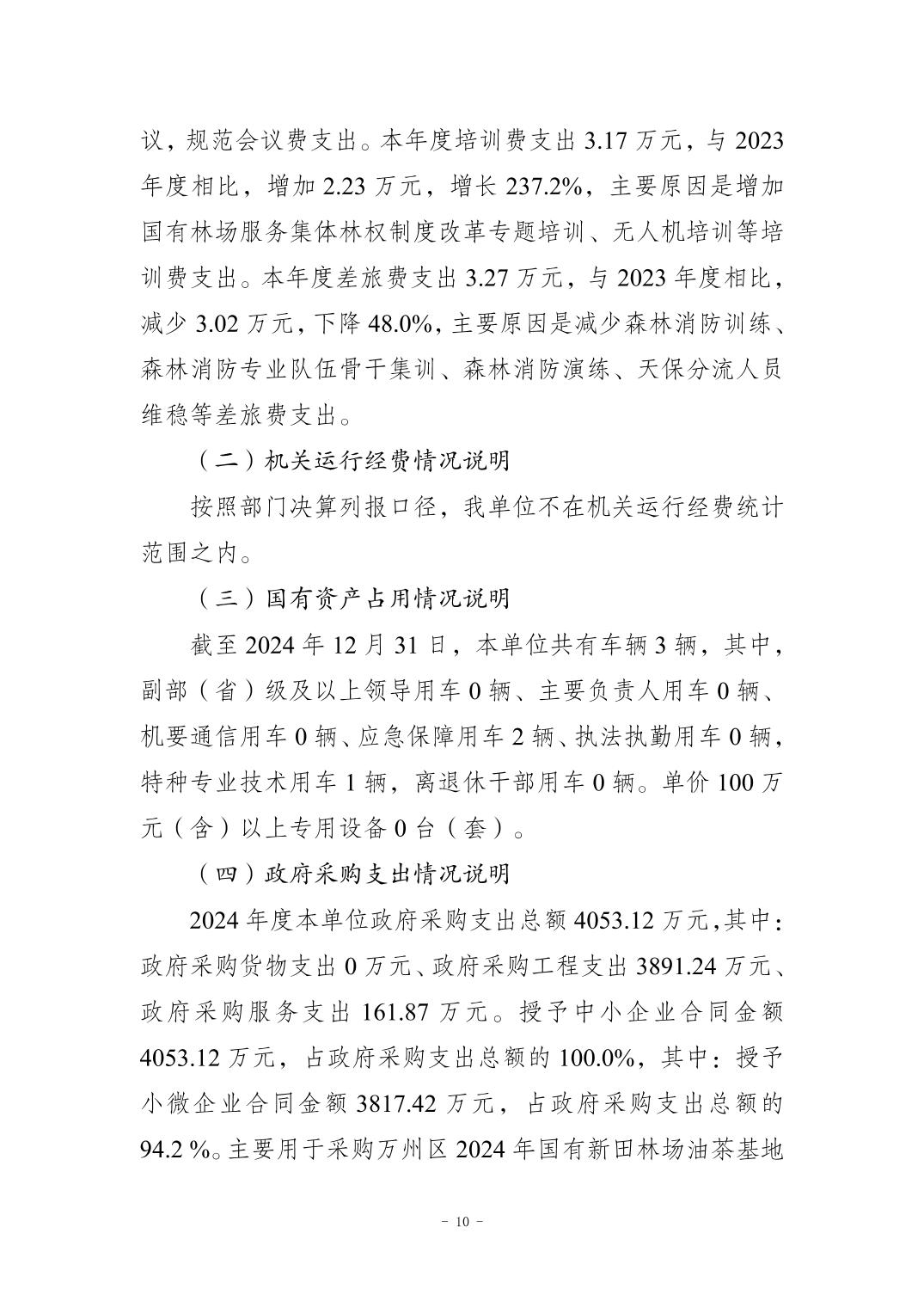 重慶市萬州區國有新田林場2024年決算公開說明