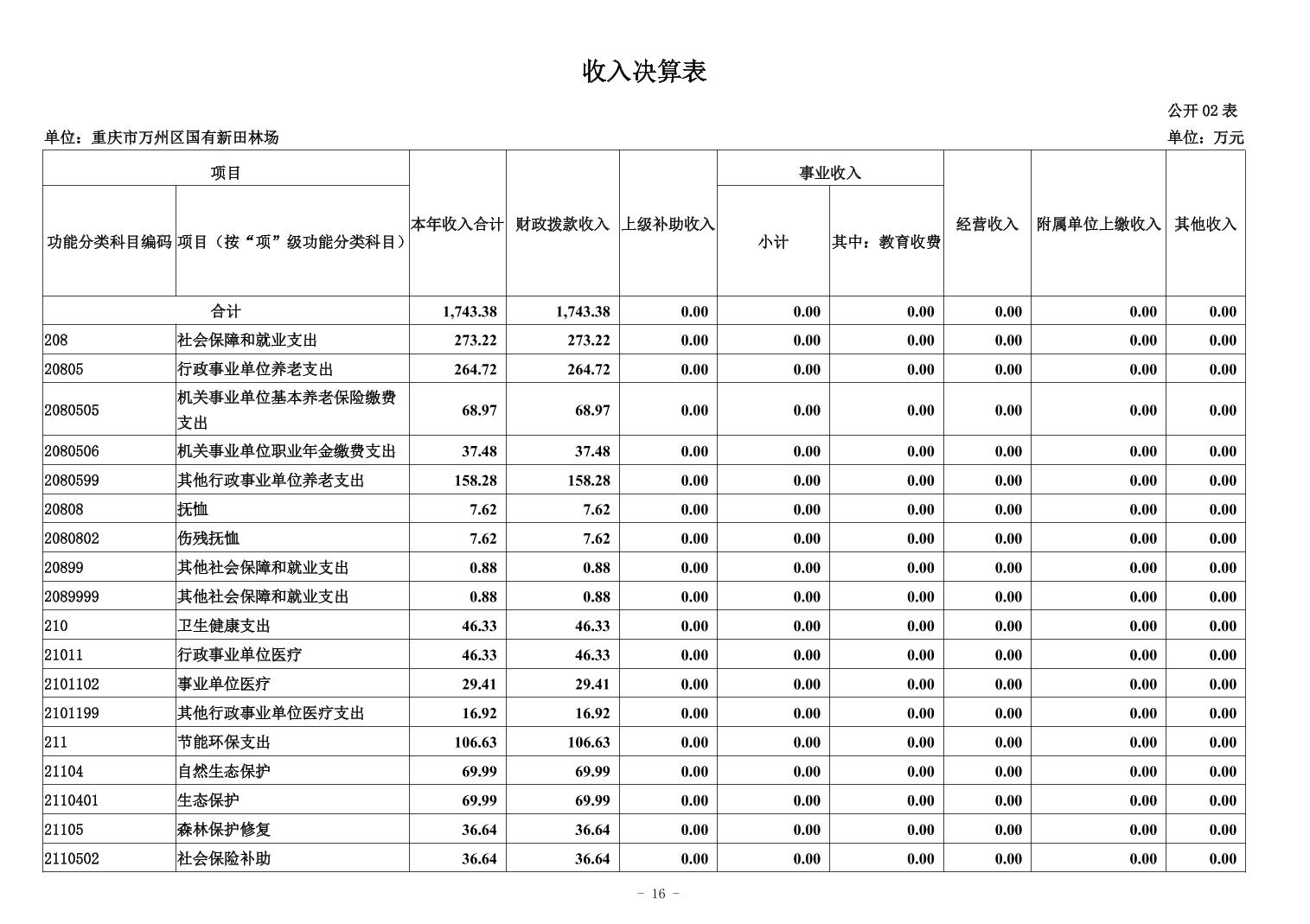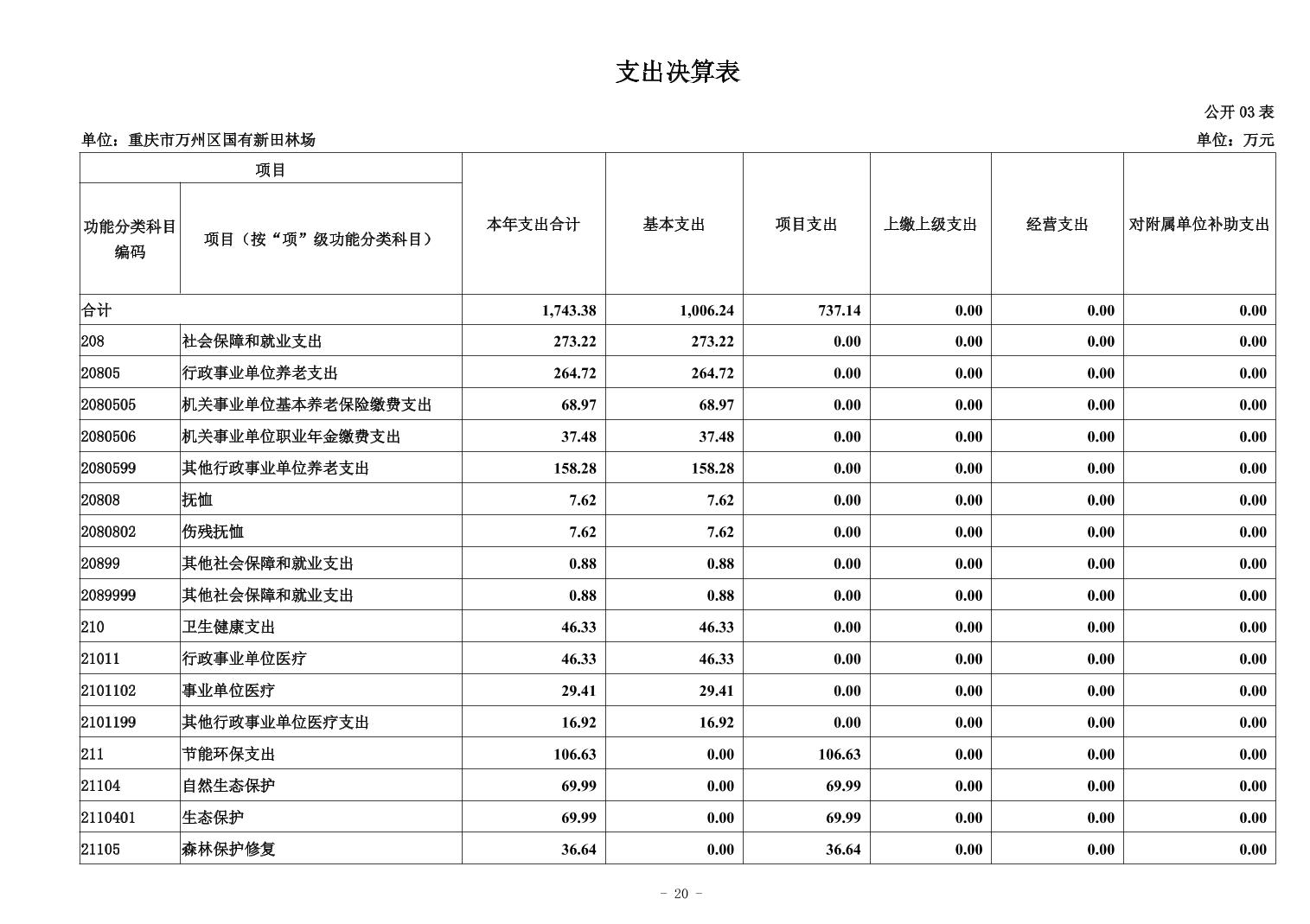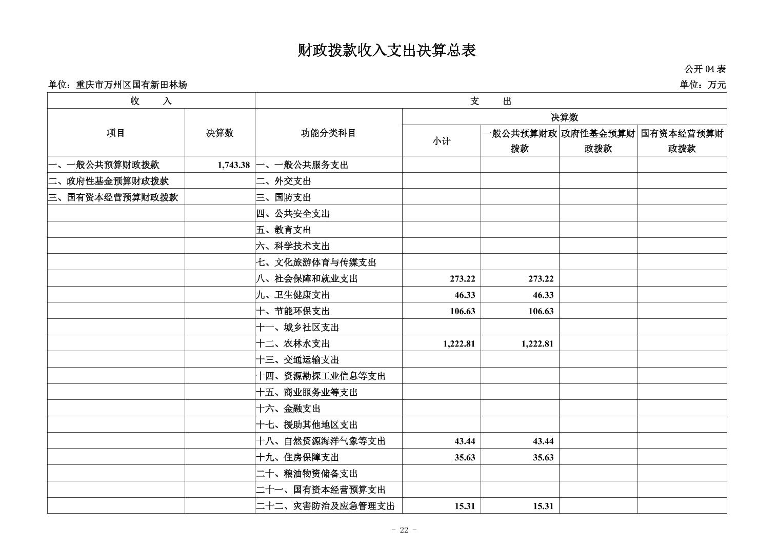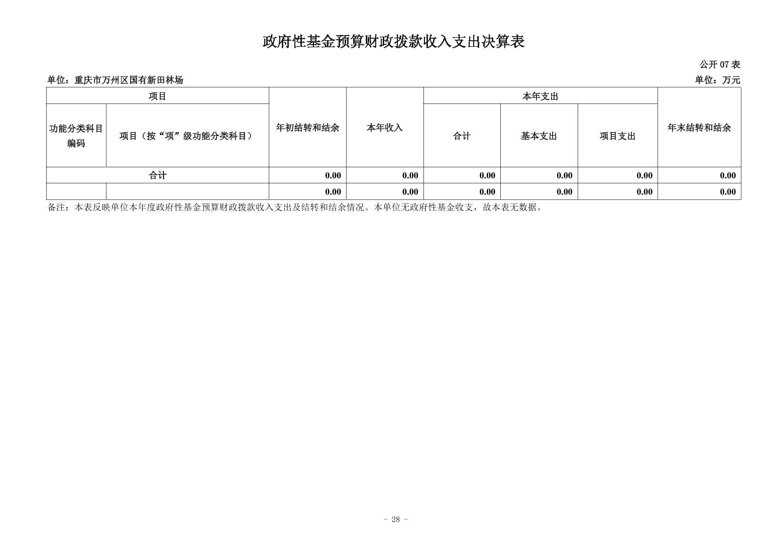 重慶市萬州區國有新田林場2024年決算公開說明