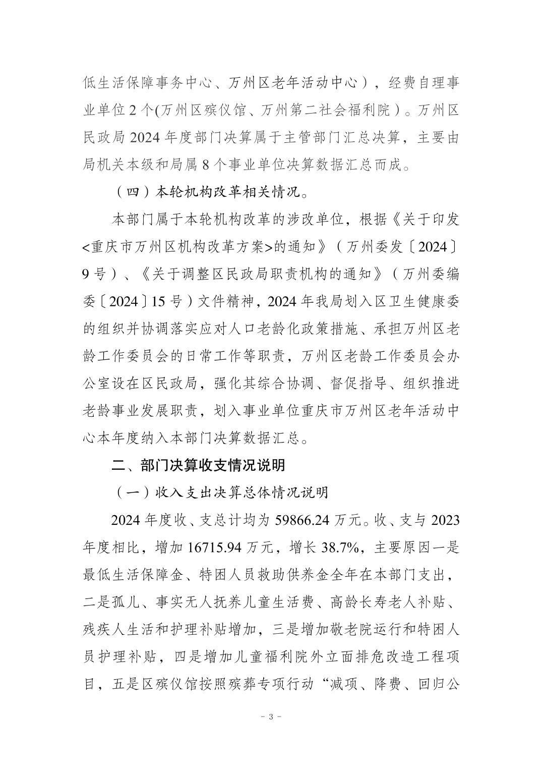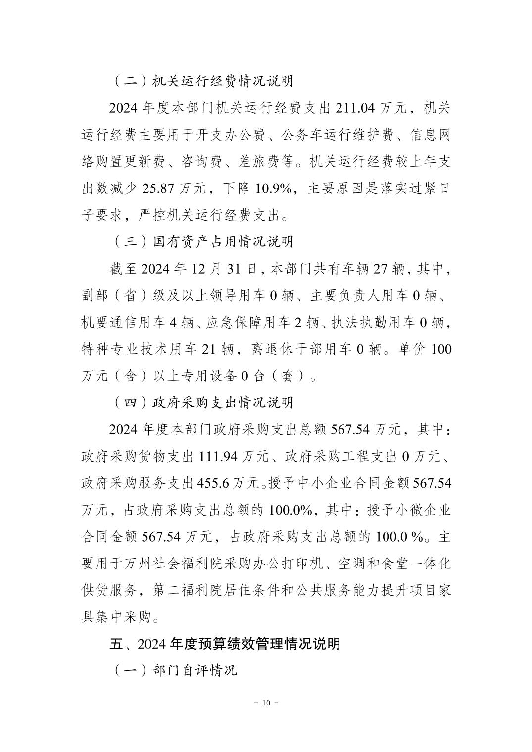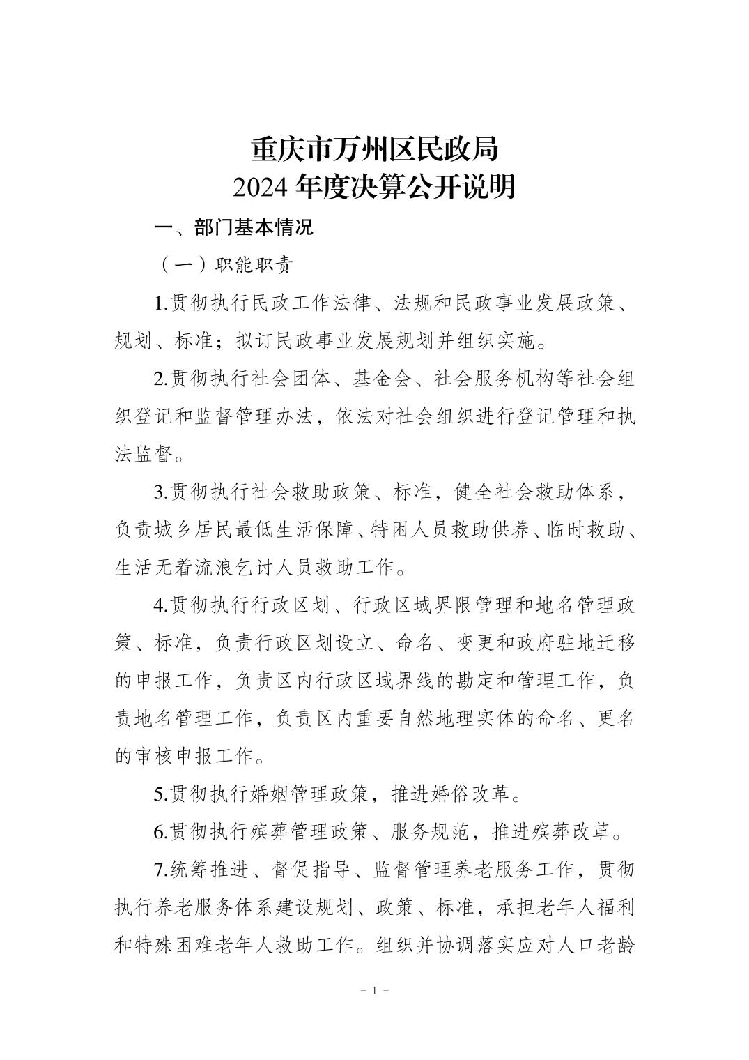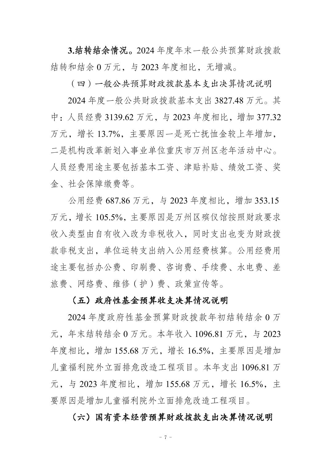 重慶市萬州區(qū)民政局2024年度決算公開說明