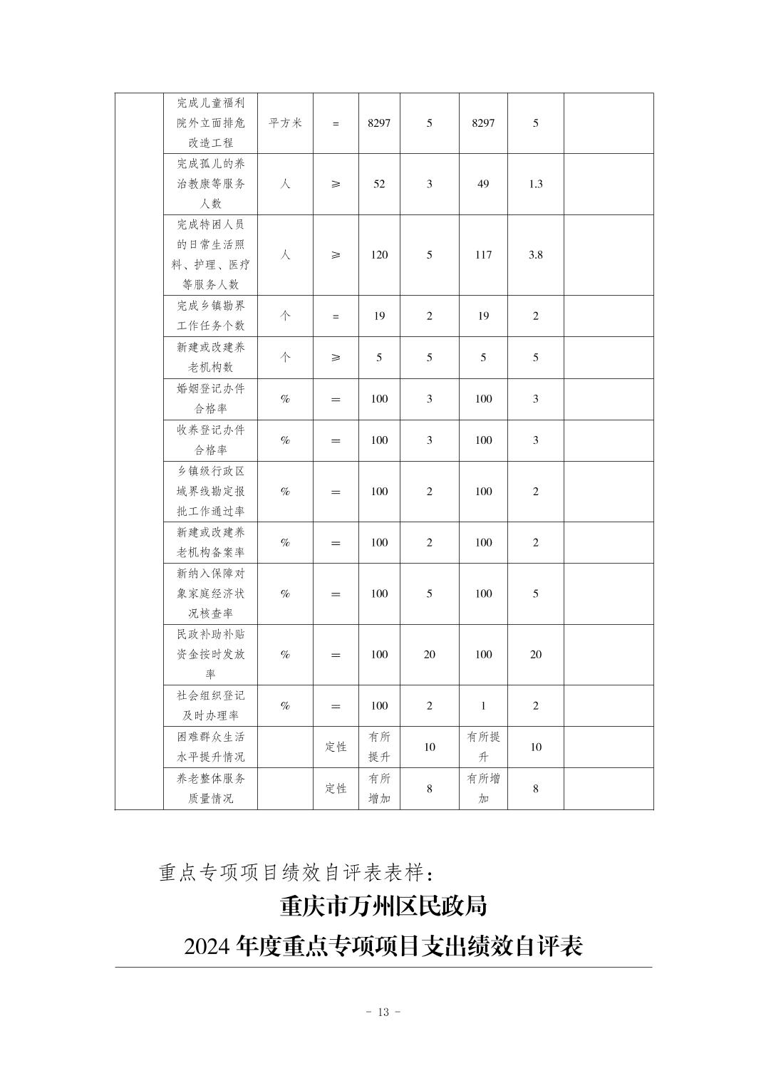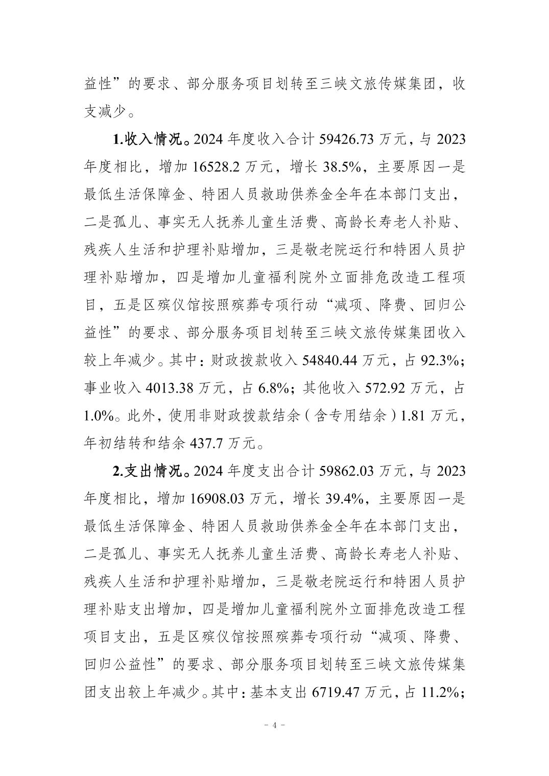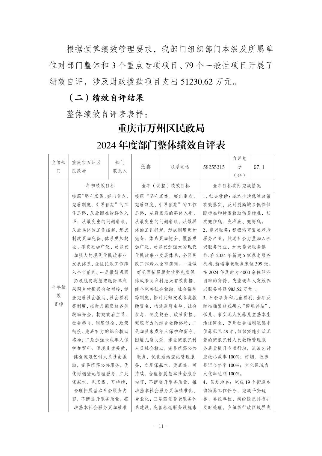 重慶市萬州區(qū)民政局2024年度決算公開說明