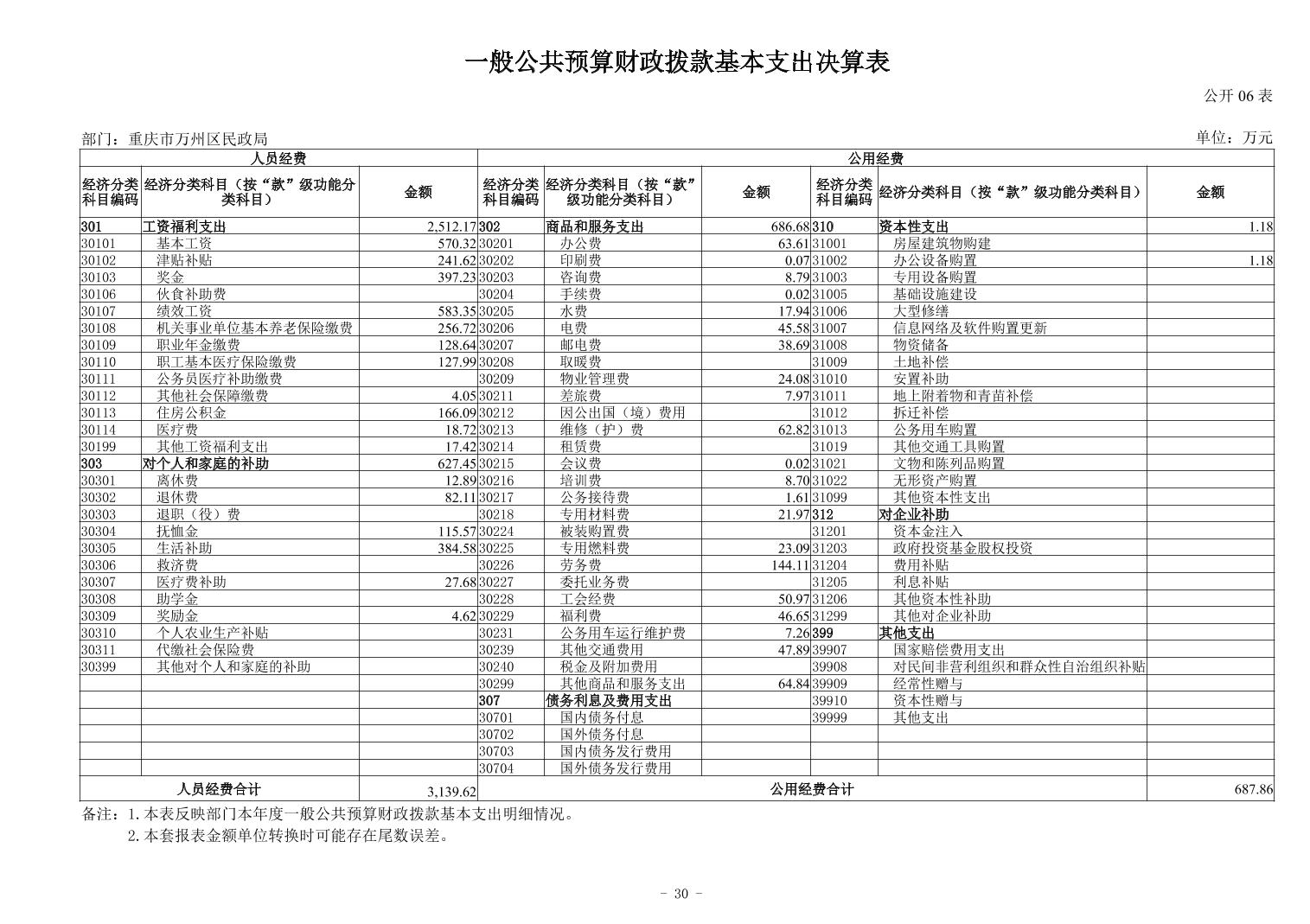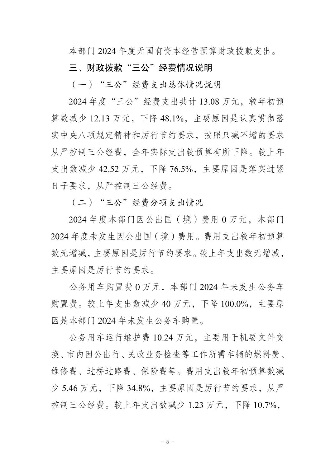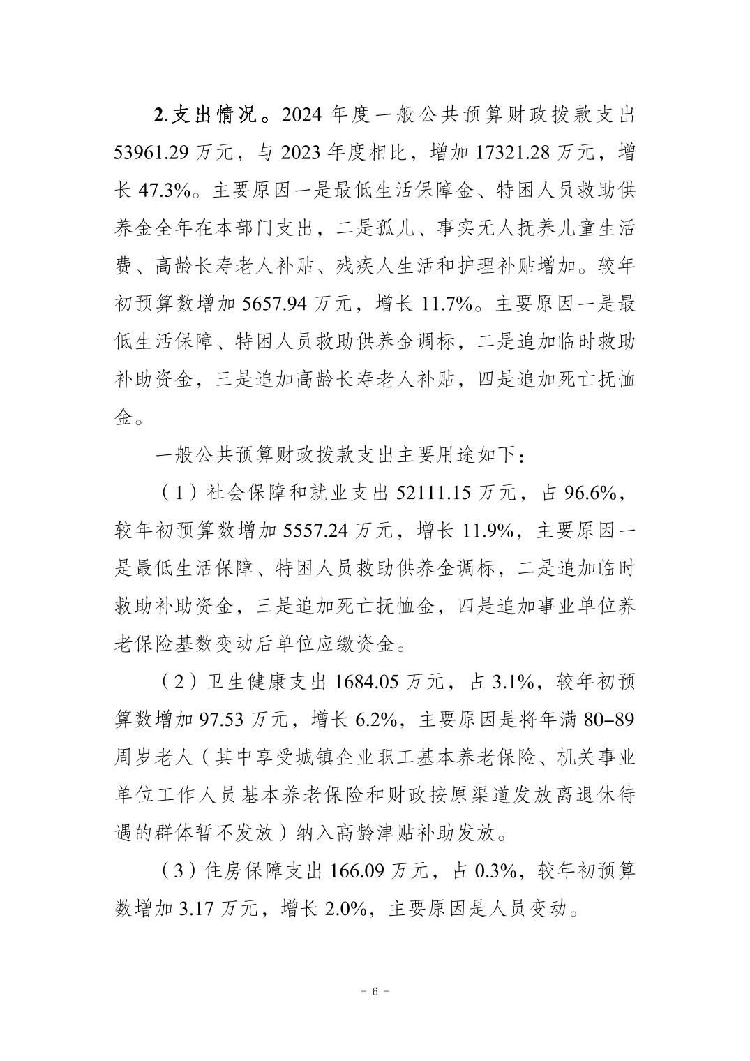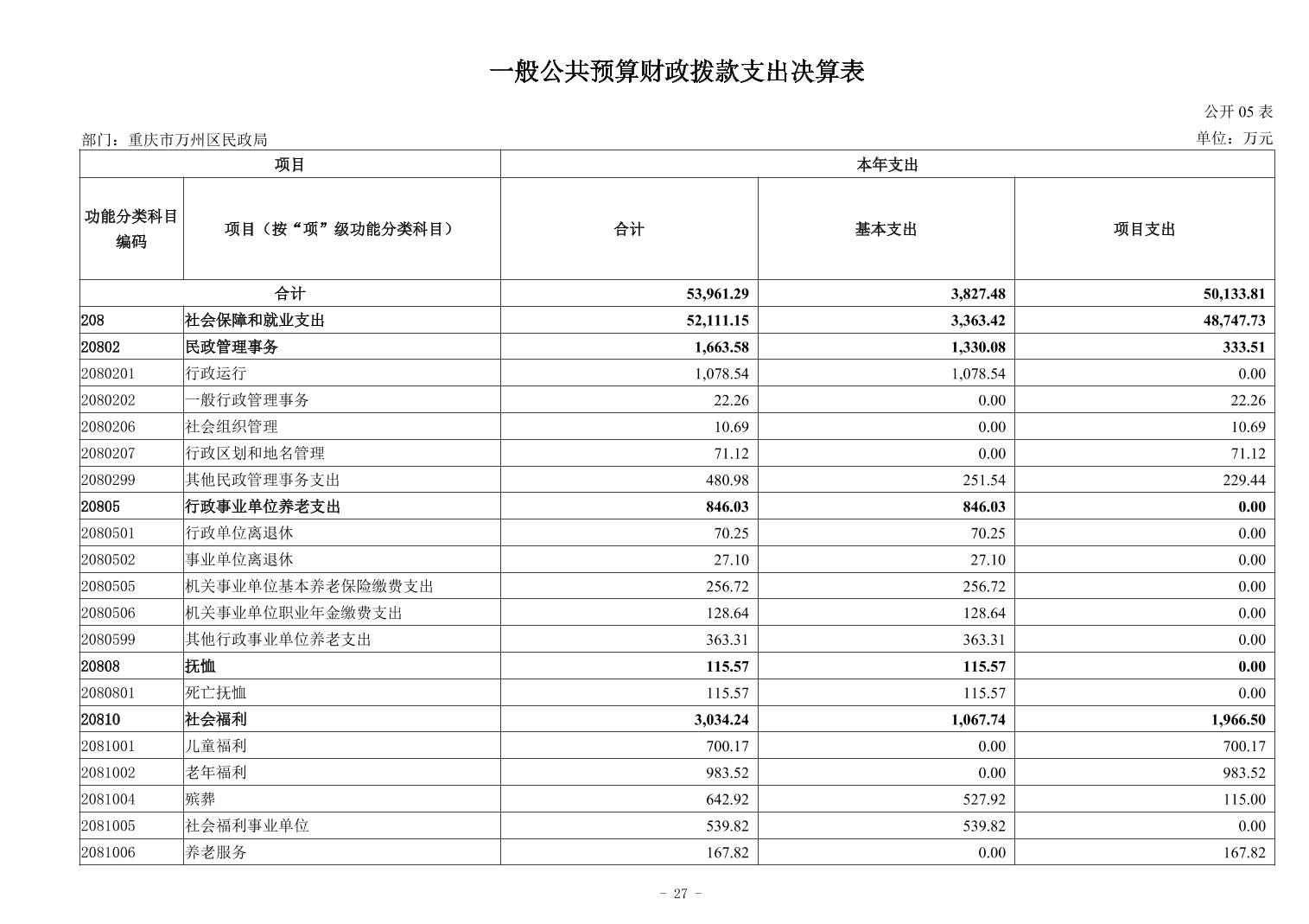 重慶市萬州區(qū)民政局2024年度決算公開說明