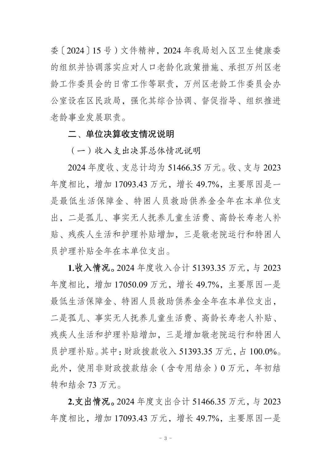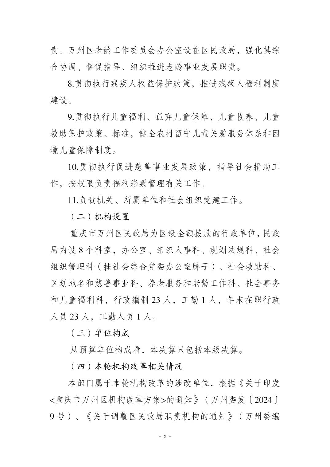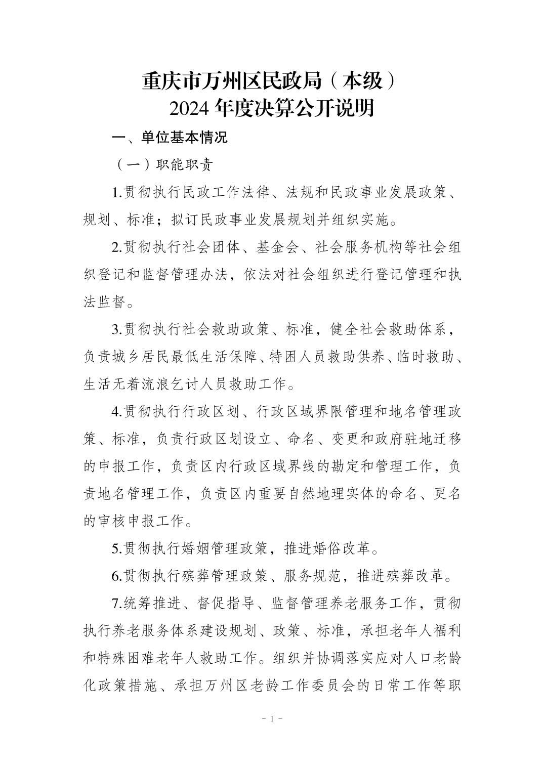 重慶市萬州區民政局(本級)2024年度決算公開說明