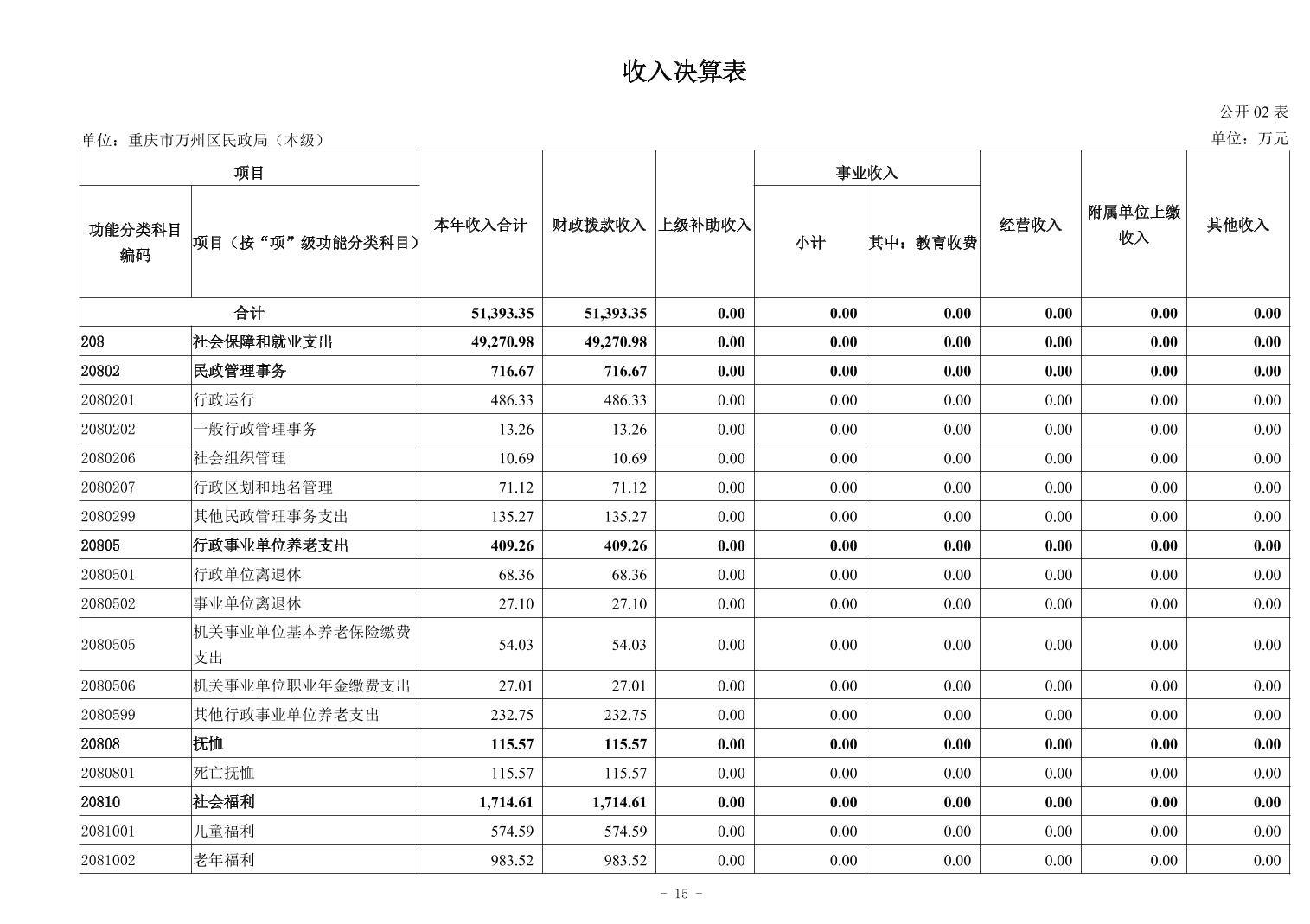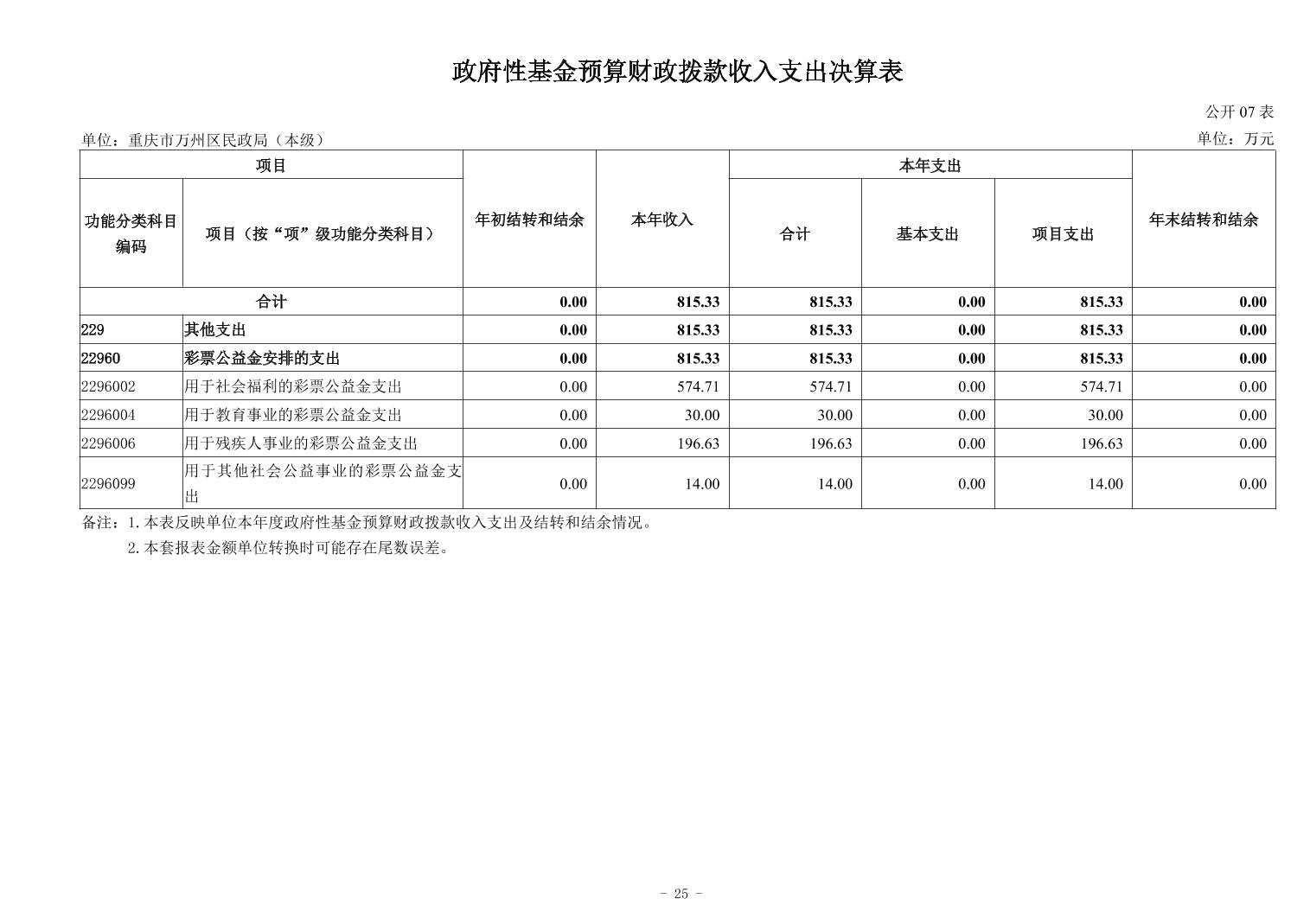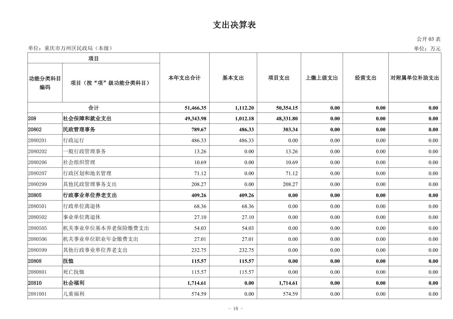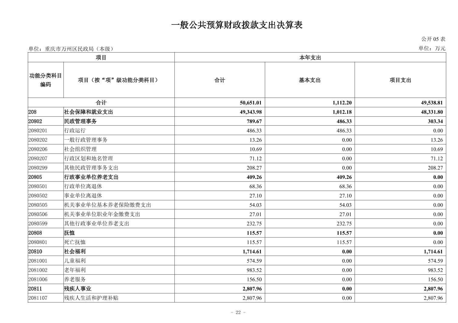 重慶市萬州區民政局(本級)2024年度決算公開說明