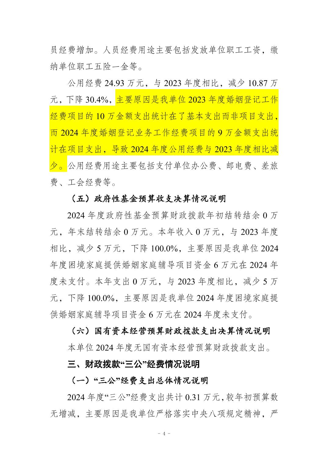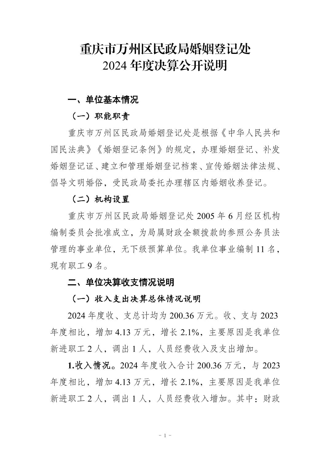 重慶市萬州區(qū)民政局婚姻登記處2024年度決算公開說明