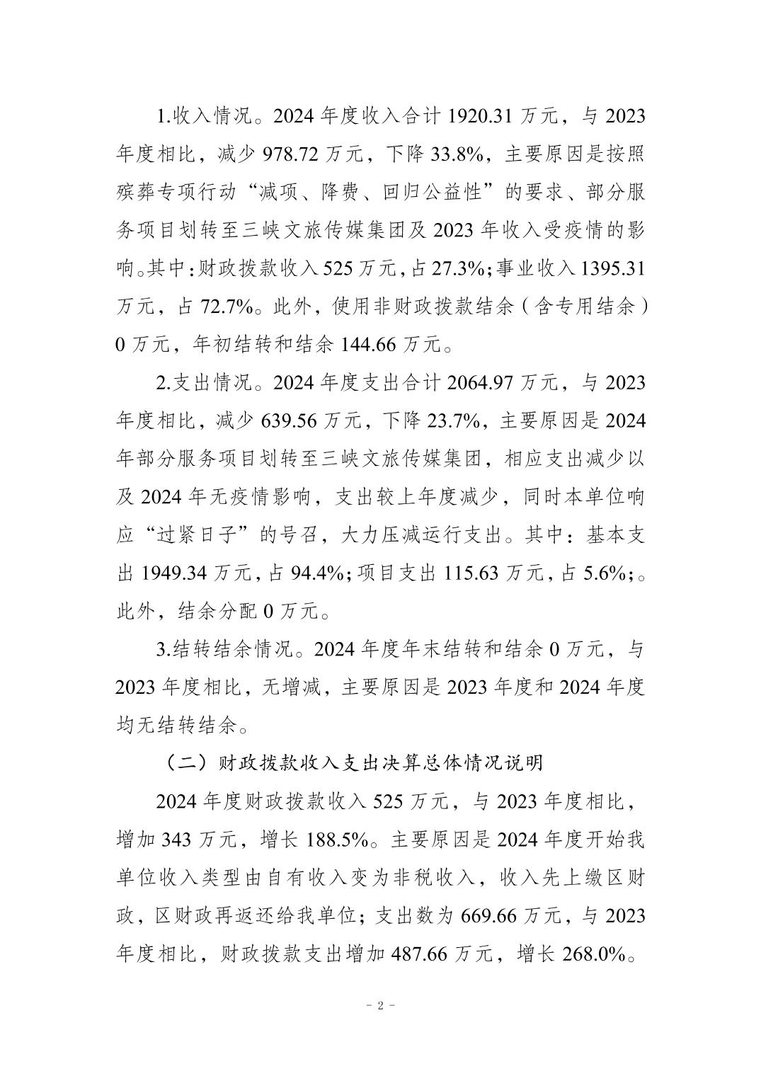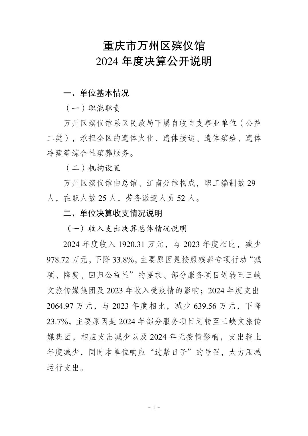 重慶市萬州區殯儀館2024年度決算公開說明