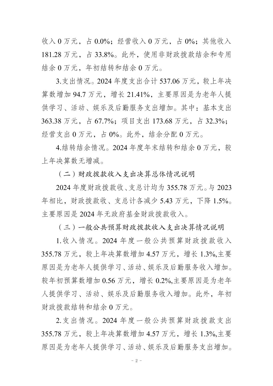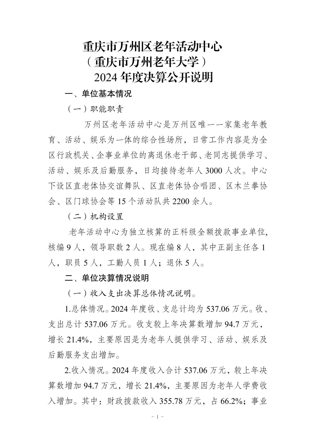 重慶市萬州區老年活動中心 (重慶市萬州老年大學)2024年度決算公開說明