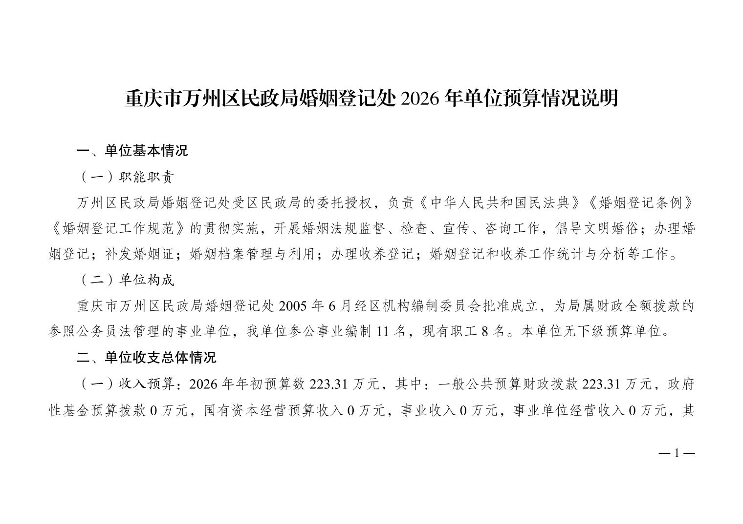 重慶市萬州區民政局婚姻登記處2026年單位預算情況說明