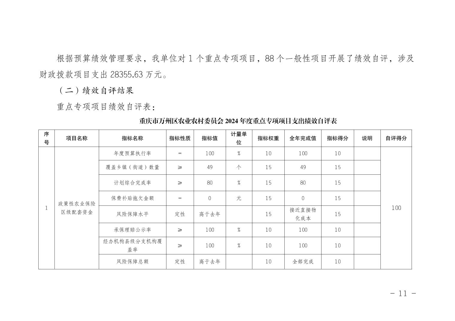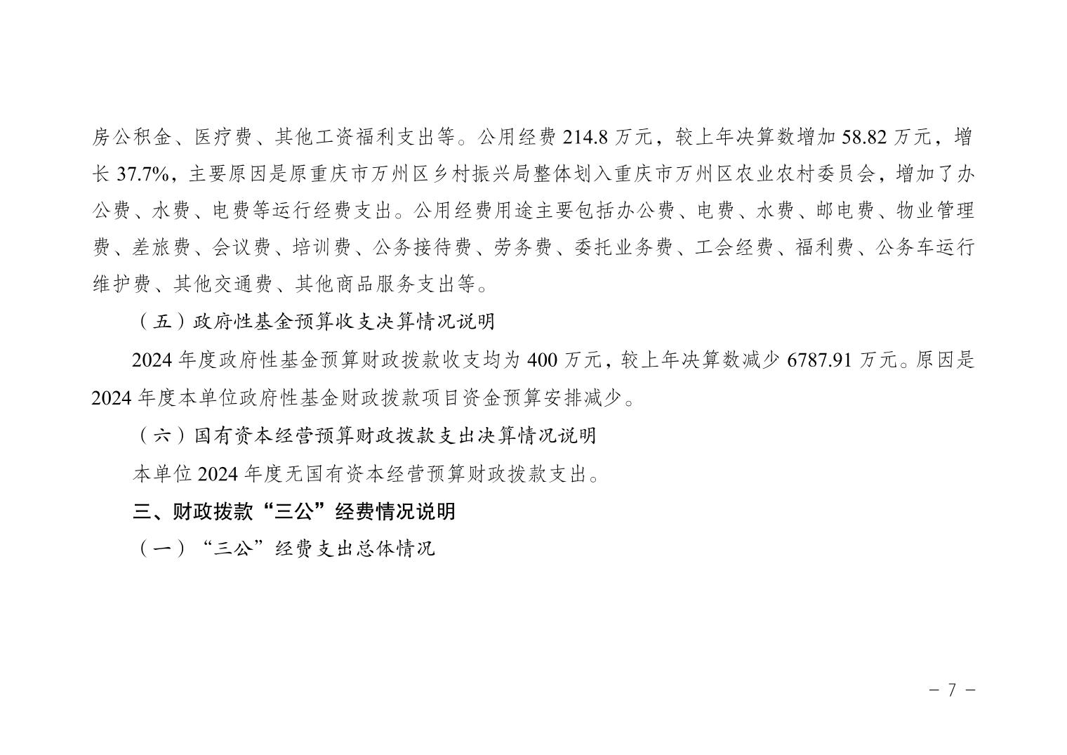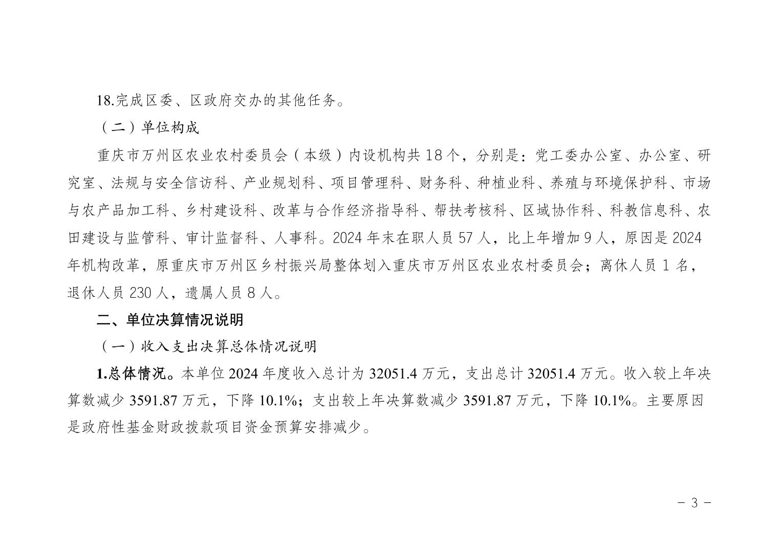 重慶市萬州區農業農村委員會(本級)2024年決算公開說明及公開報表