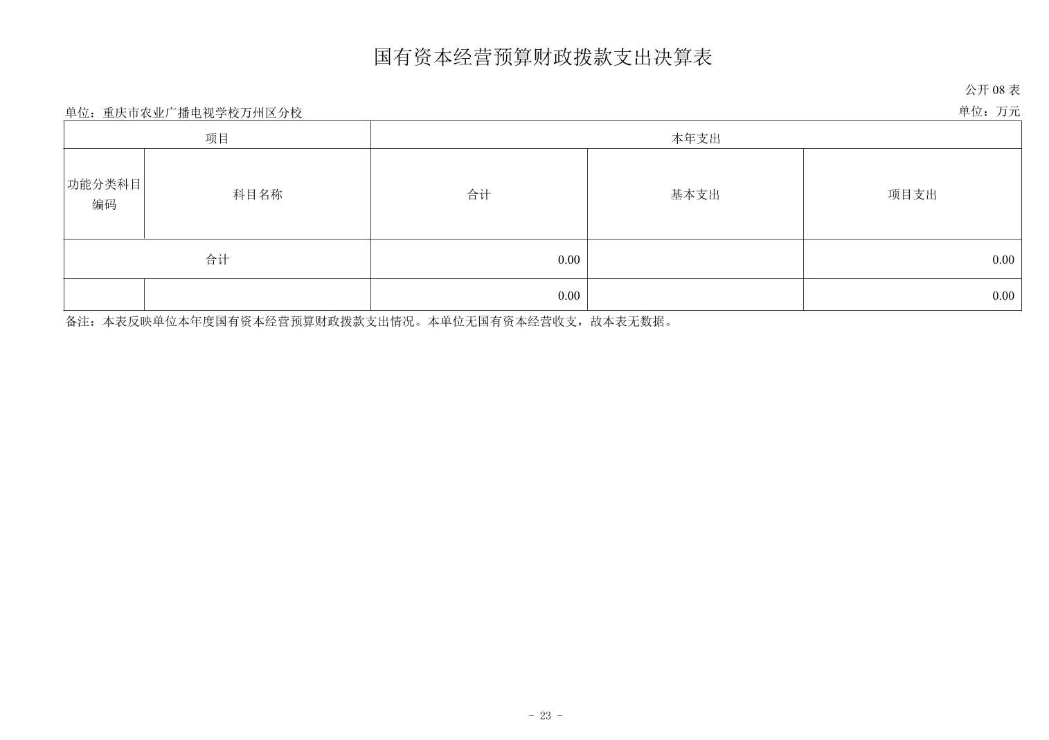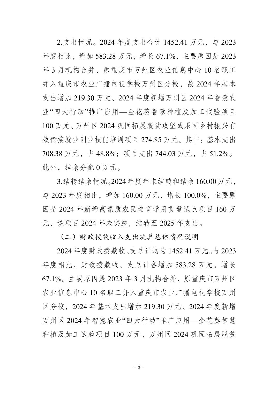 重慶市農(nóng)業(yè)廣播電視學(xué)校萬州區(qū)分校2024年決算公開說明及公開報(bào)表