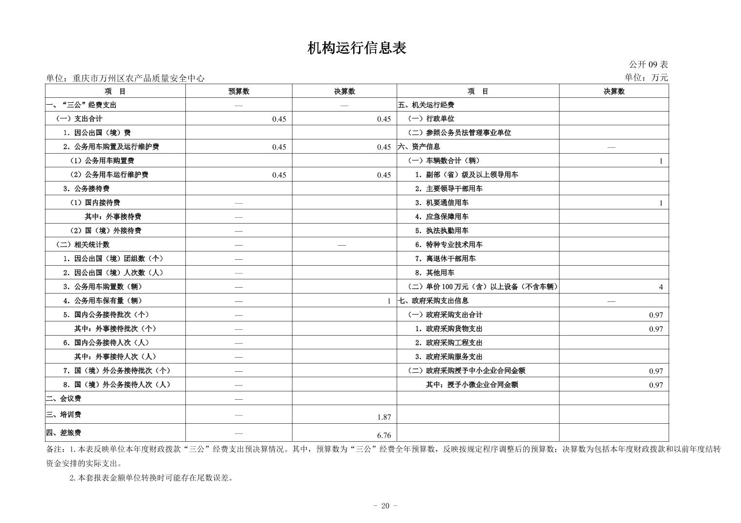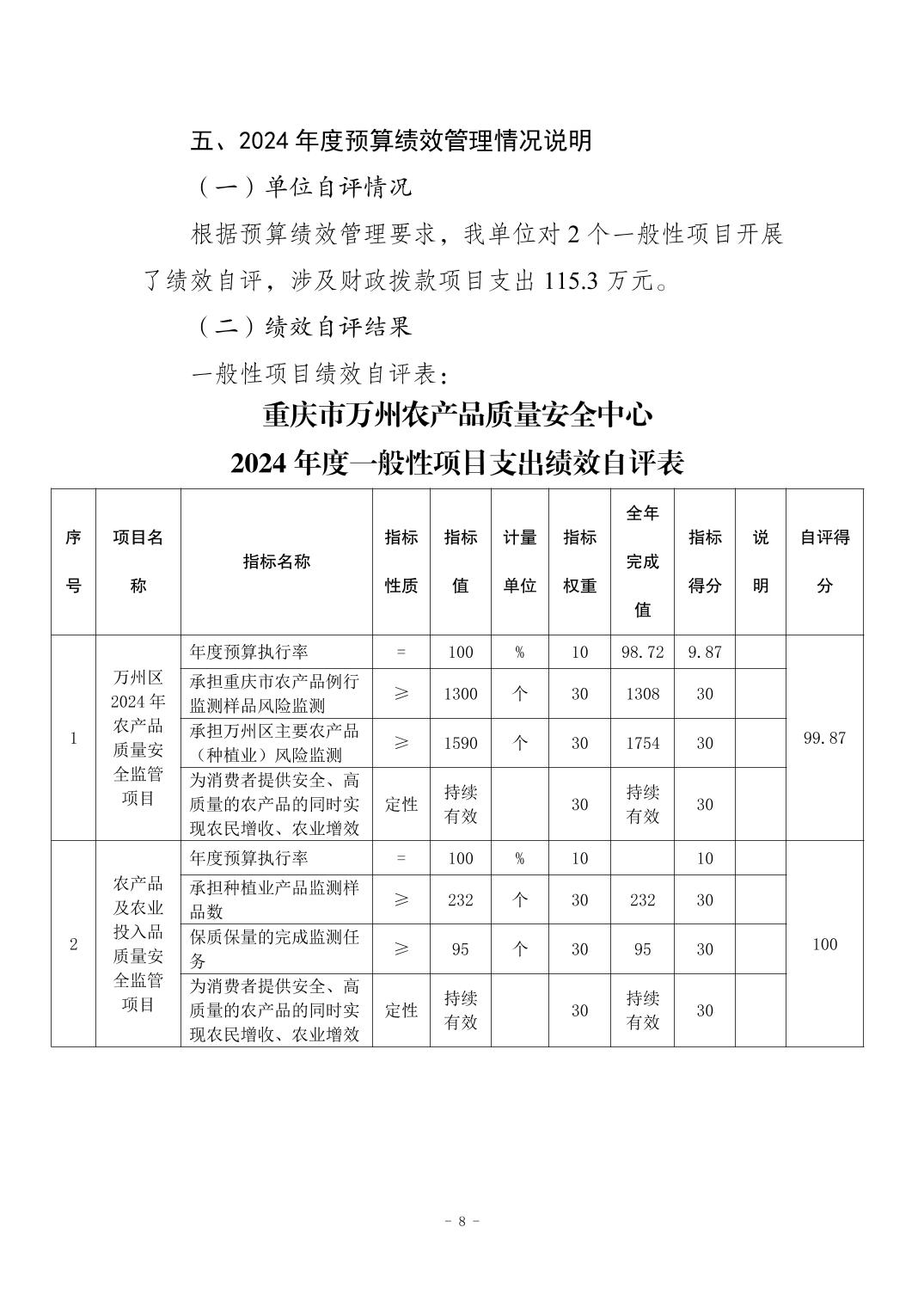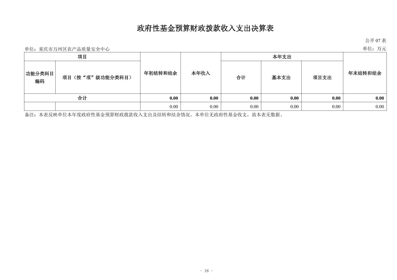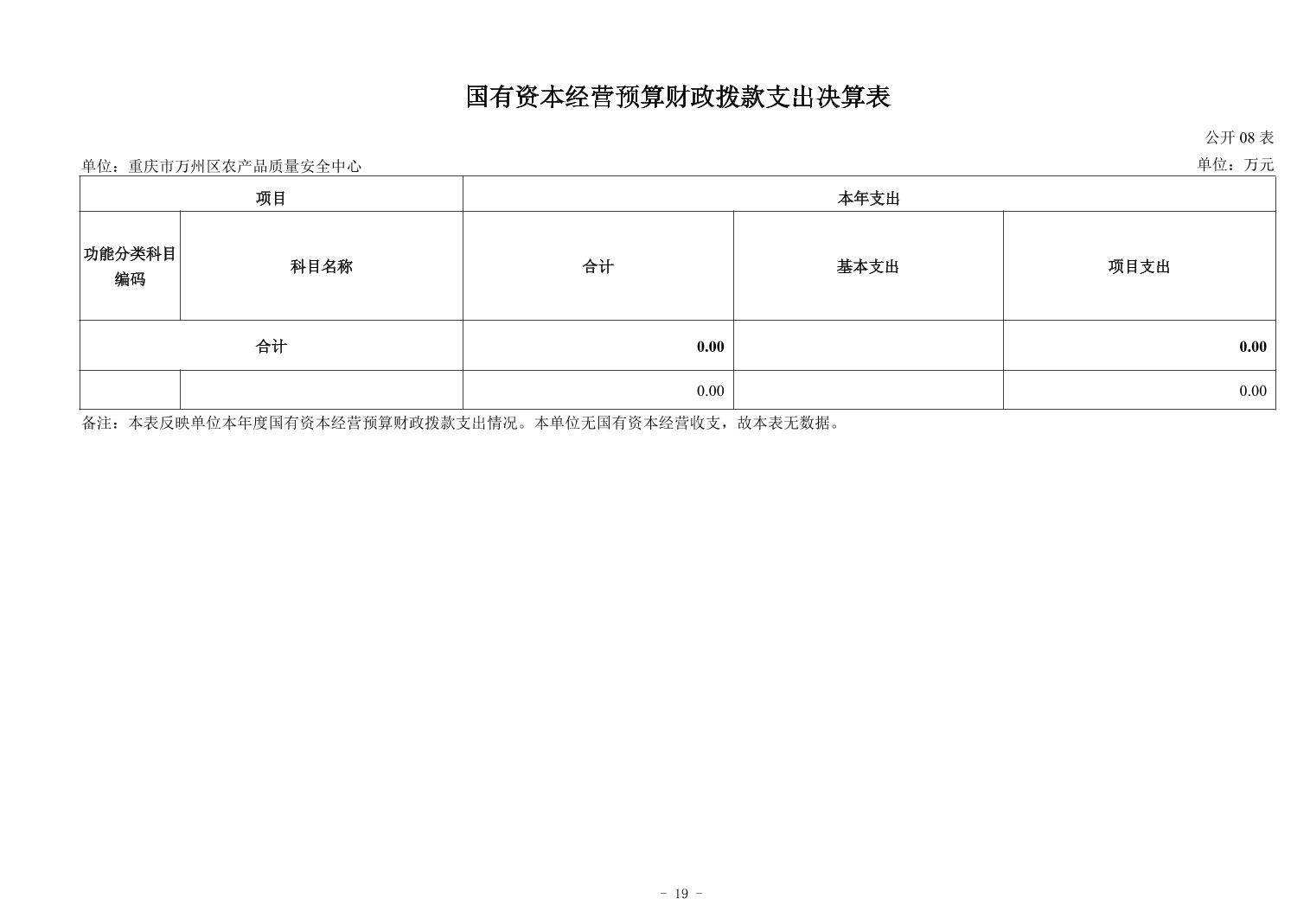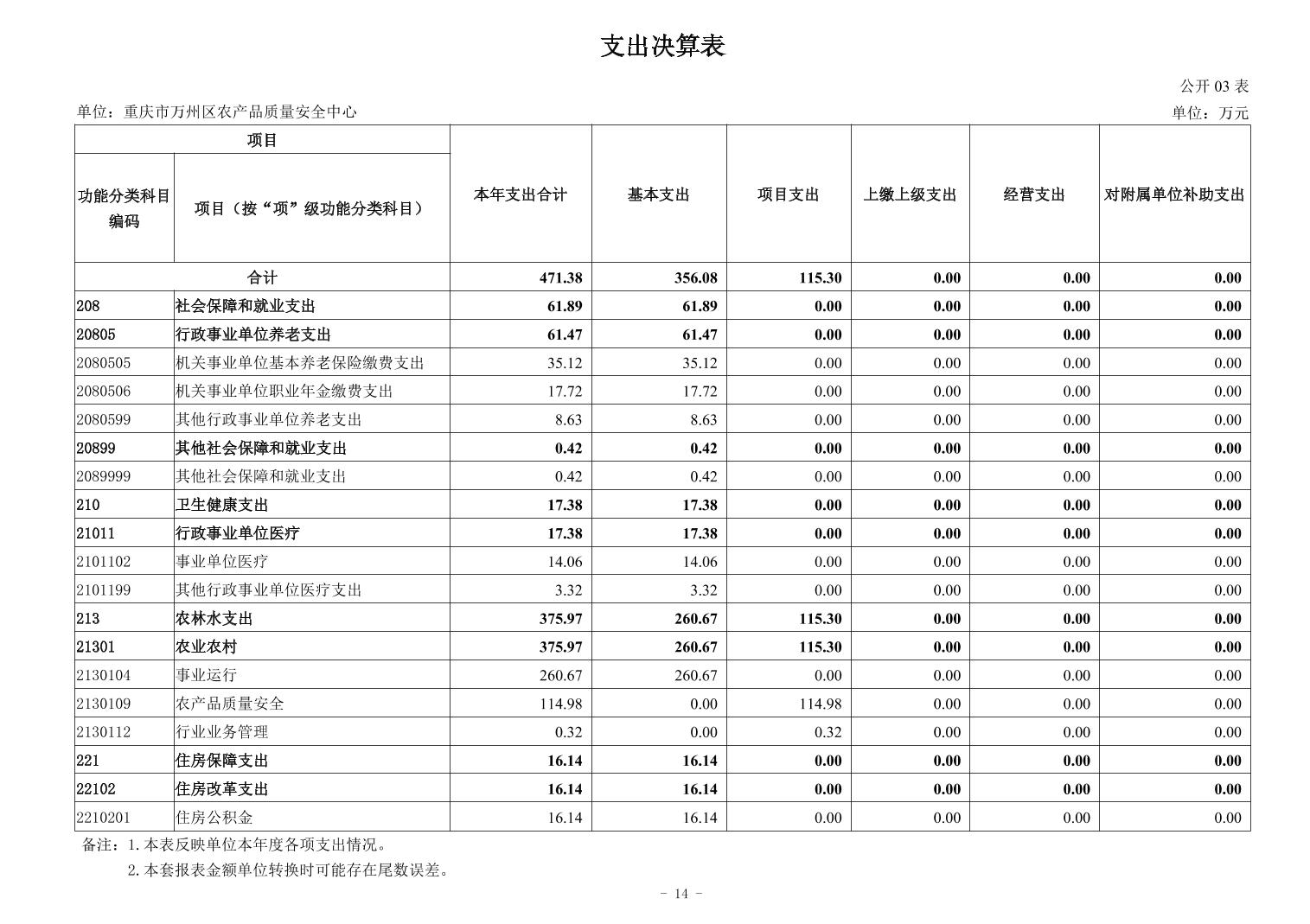 重慶市萬州區農產品質量安全中心2024年決算公開說明及公開報表