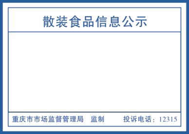 1.以上樣式分為空白和帶格式兩種,空白格式應(yīng)使用原包裝上的食品信息標志,剪一下后粘貼于空白格式內(nèi)進行公示,如原包裝食品信息字體較小,應(yīng)進行放大處理,方便消費者查看;也可使用標簽打印機打印好后,粘貼于空白格式內(nèi);