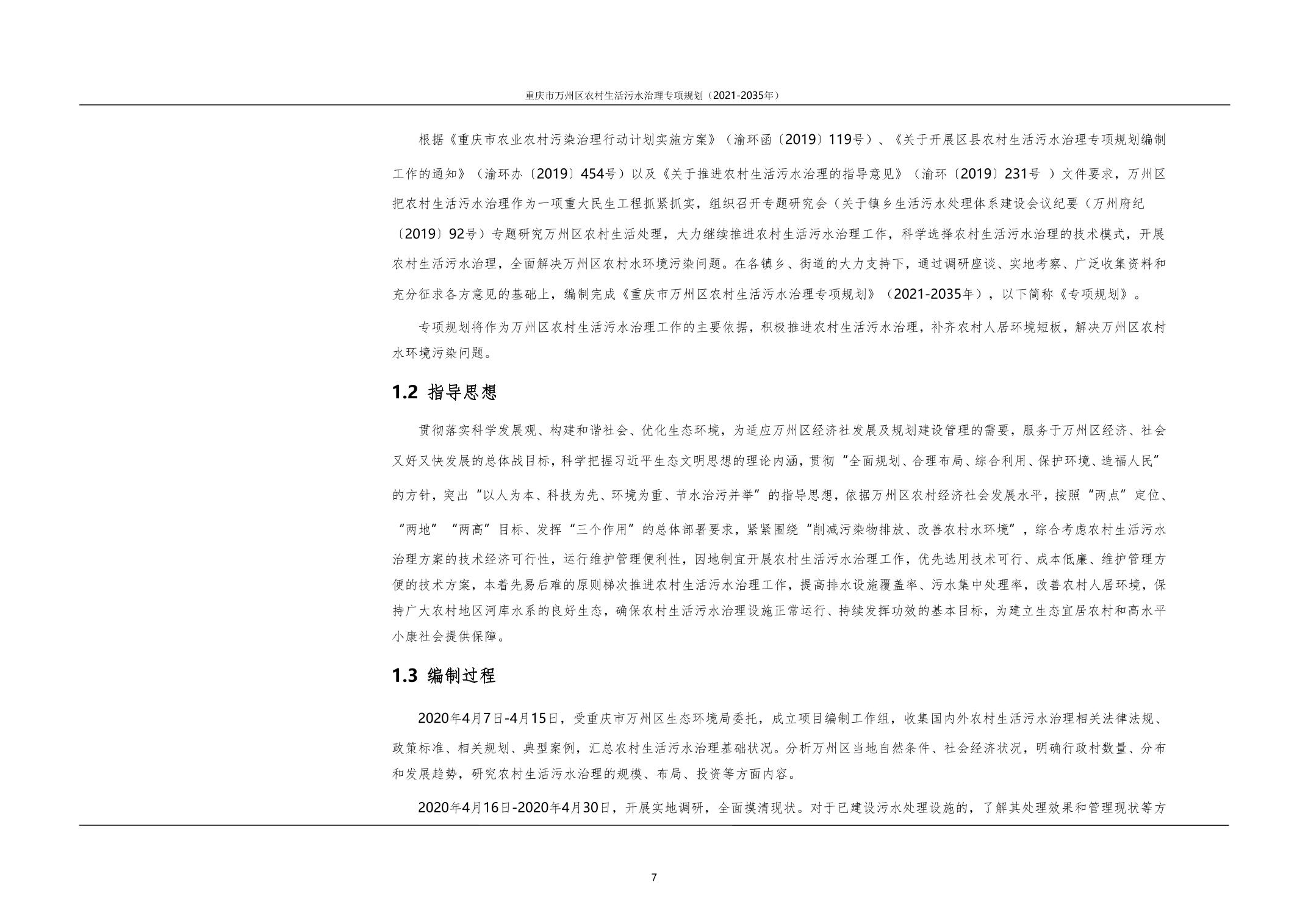 重慶市萬州區農村生活污水治理專項規劃(2021-2035年)