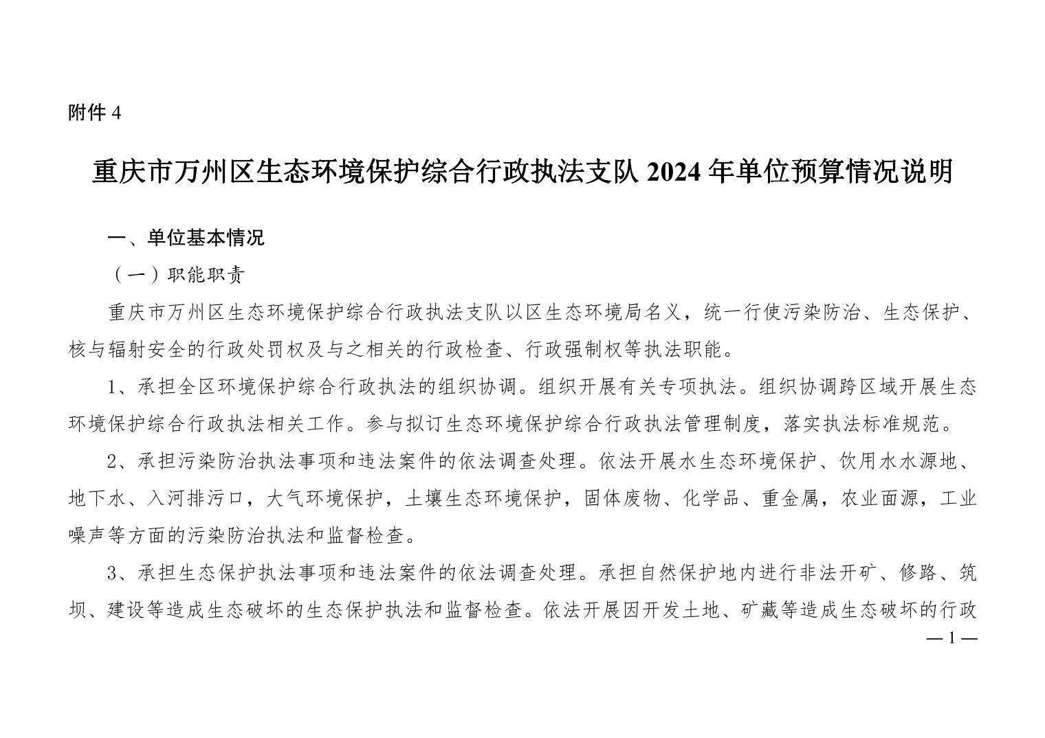 重慶市萬州區生態環境保護綜合行政執法支隊2024年單位預算公開說明