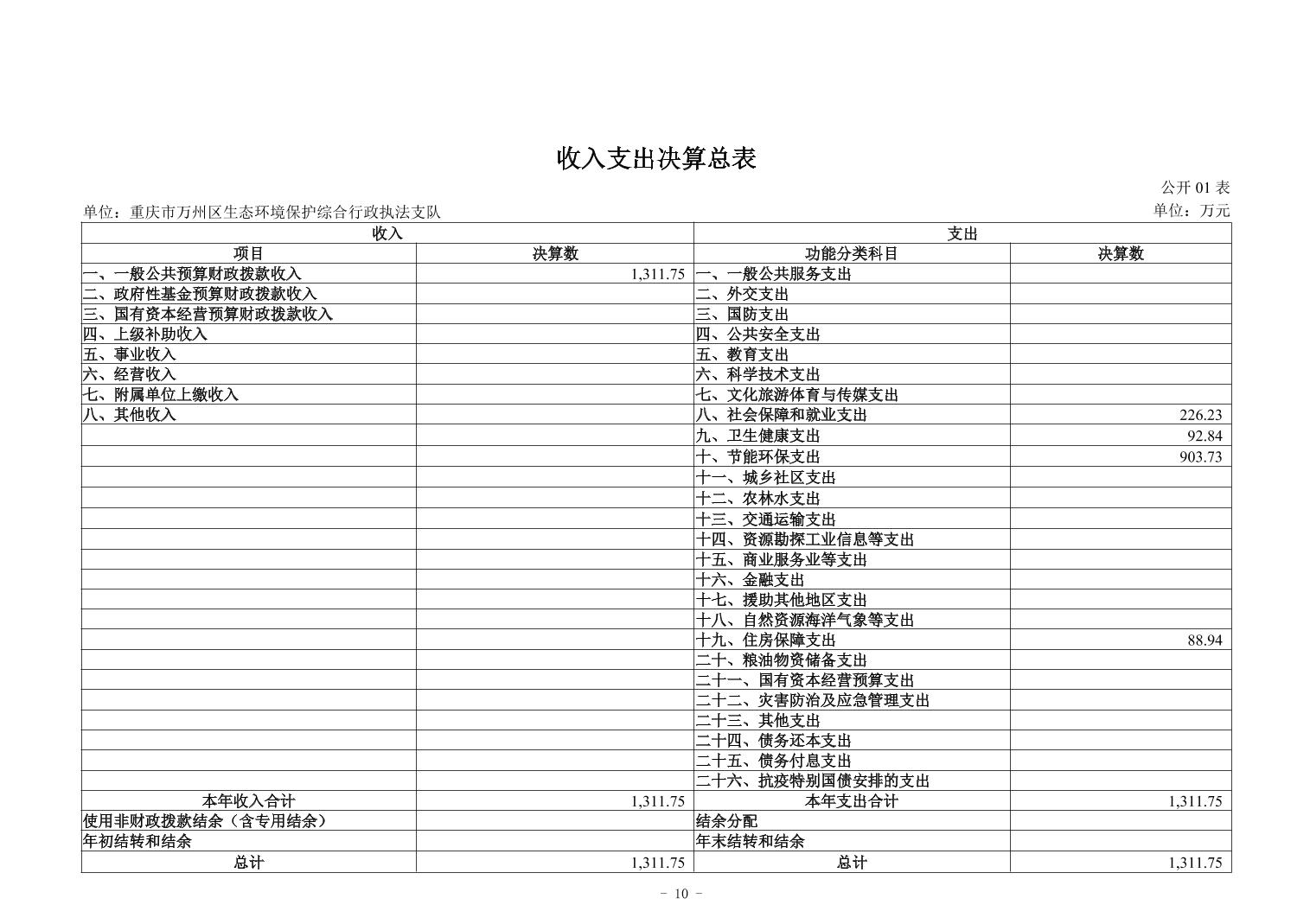 405002-重慶市萬州區(qū)生態(tài)環(huán)境保護綜合行政執(zhí)法支隊_2024年決算公開說明及公開報表