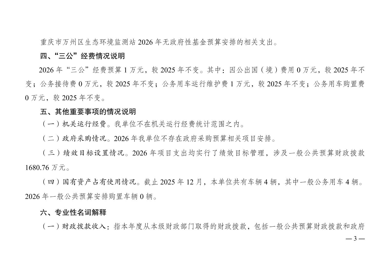 重慶市萬州區生態環境監測站2026年單位預算情況說明