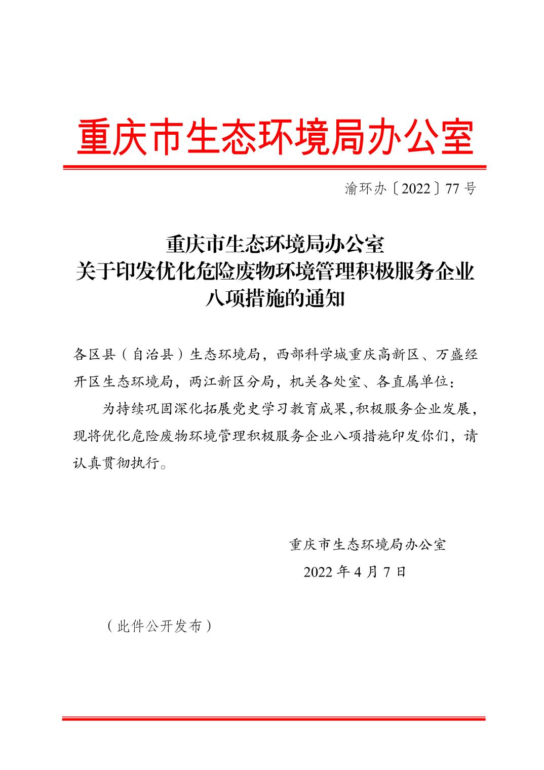 關于印發優化危險廢物環境管理積極服務企業八項措施的通知