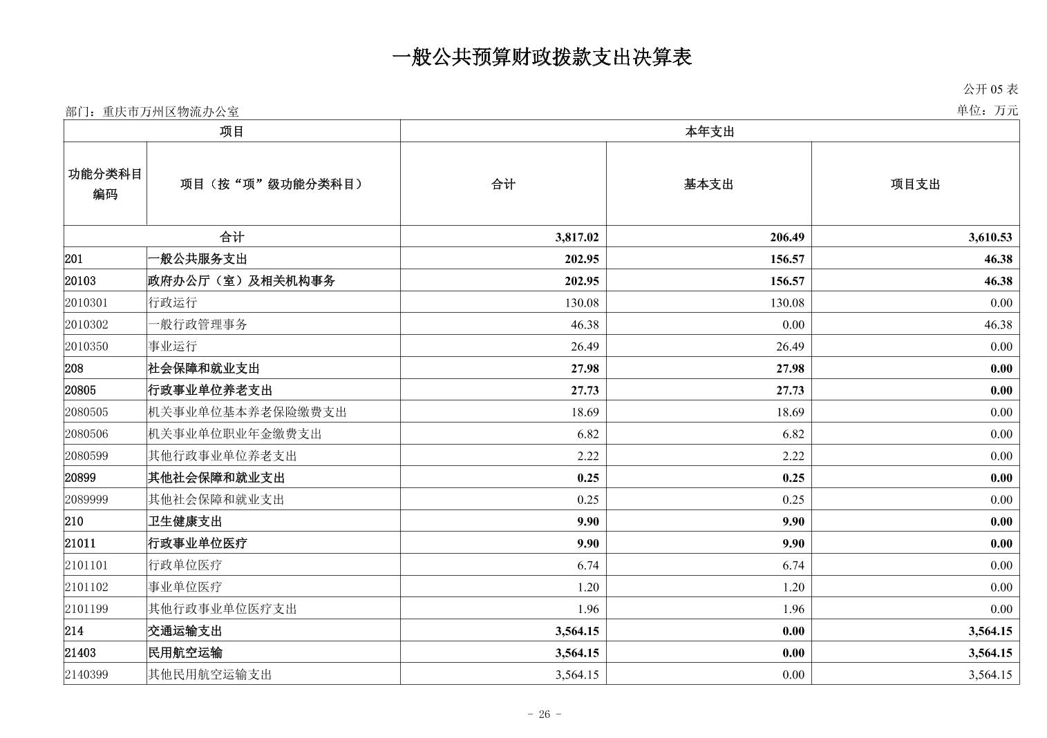 重慶市萬州區(qū)物流辦公室_2024年決算公開說明及公開報表