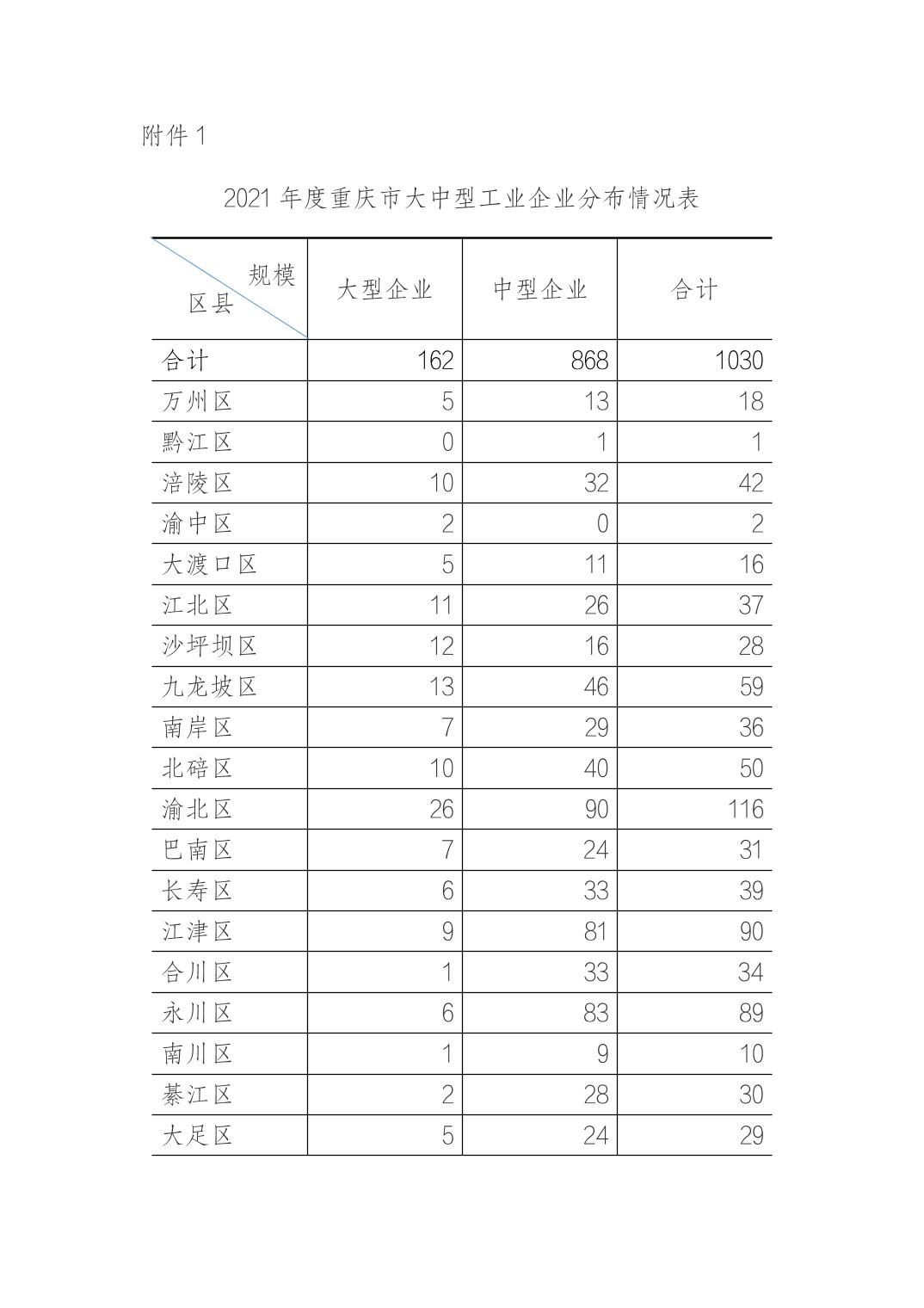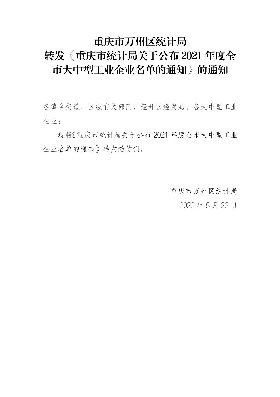 重慶市萬州區統計局 關于轉發《重慶市統計局關于公布2021年度全市大中型工業企業名單的通知》的通知