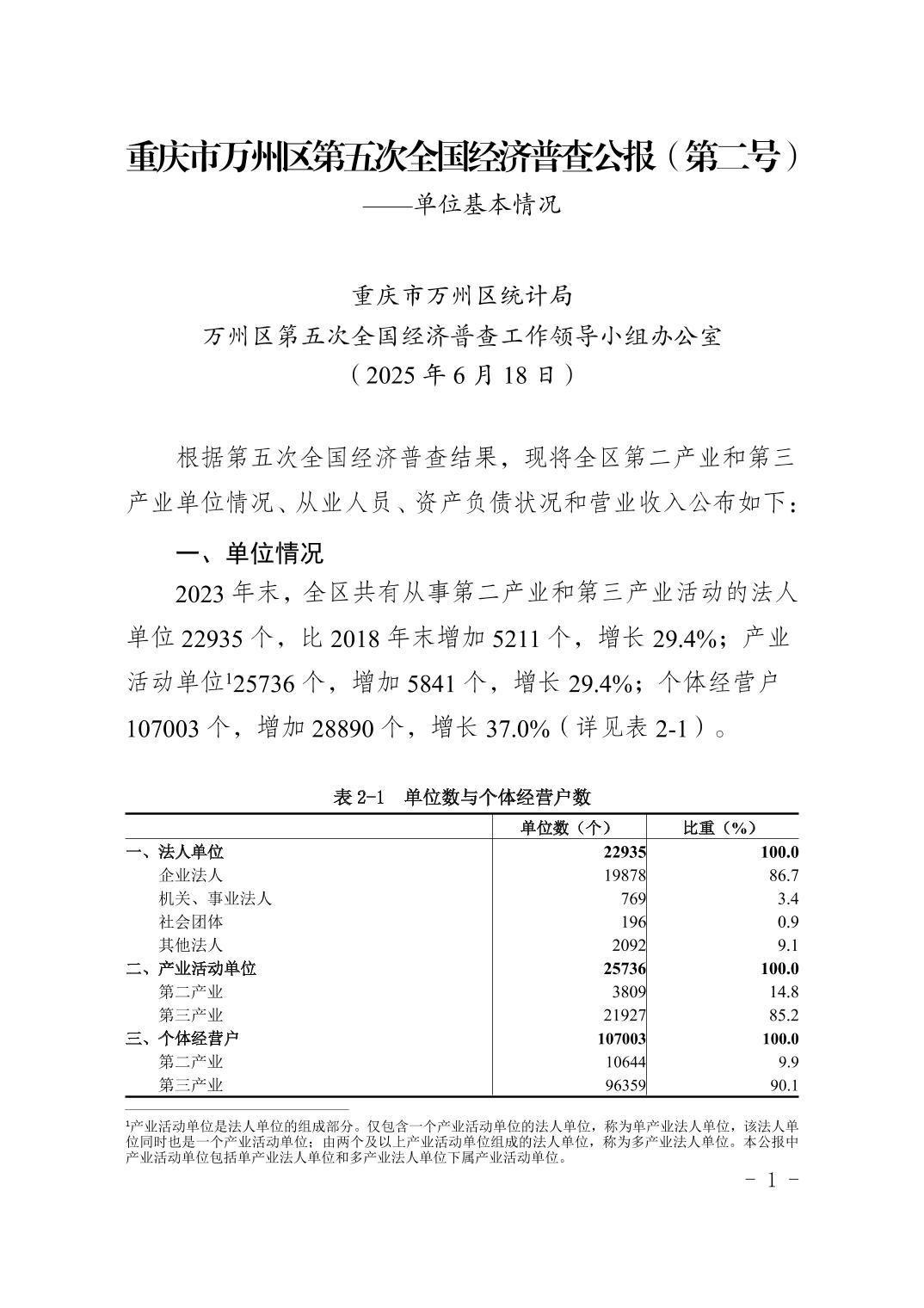 重慶市萬(wàn)州區(qū)第五次全國(guó)經(jīng)濟(jì)普查公報(bào)(第二號(hào))