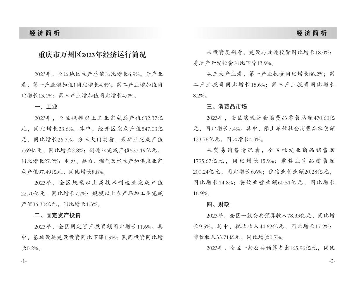 萬州區統計月報-2023年12月