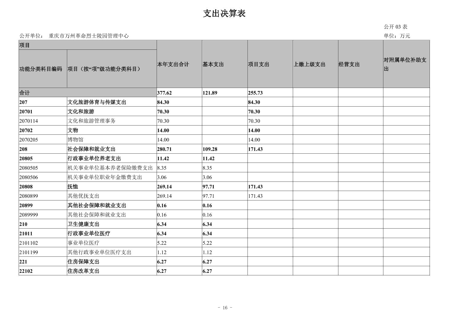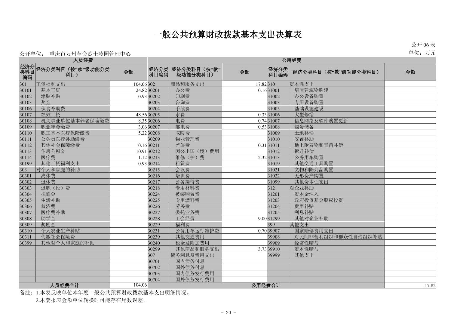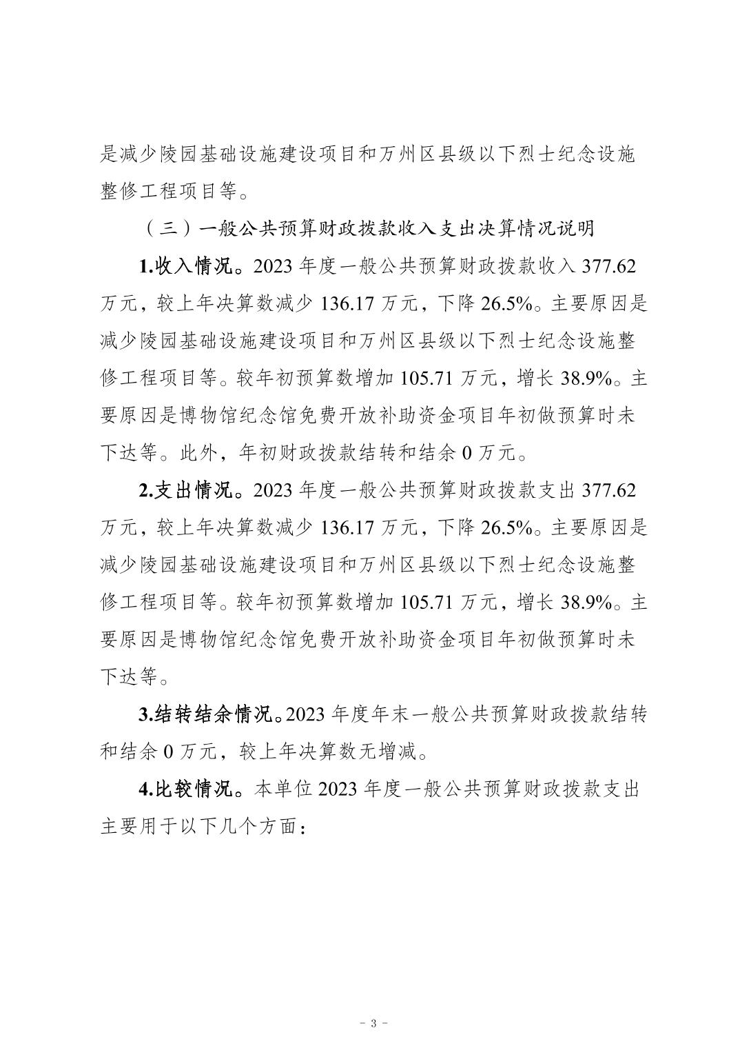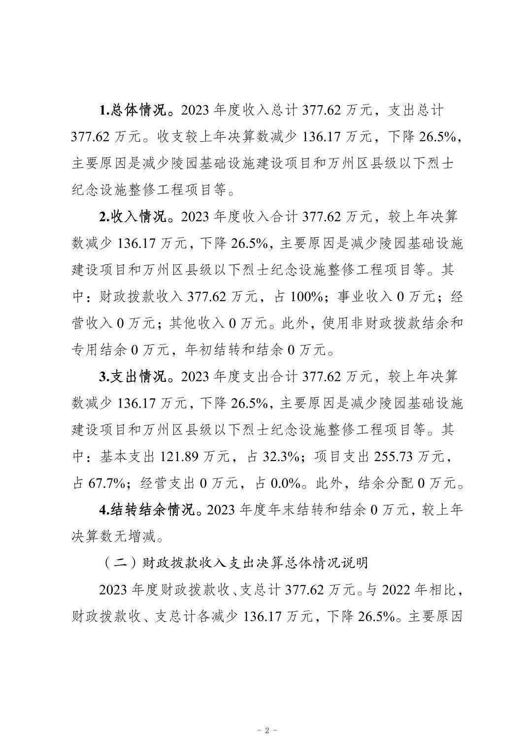 重慶市萬(wàn)州革命烈士陵園管理中心2023年度決算公開說明