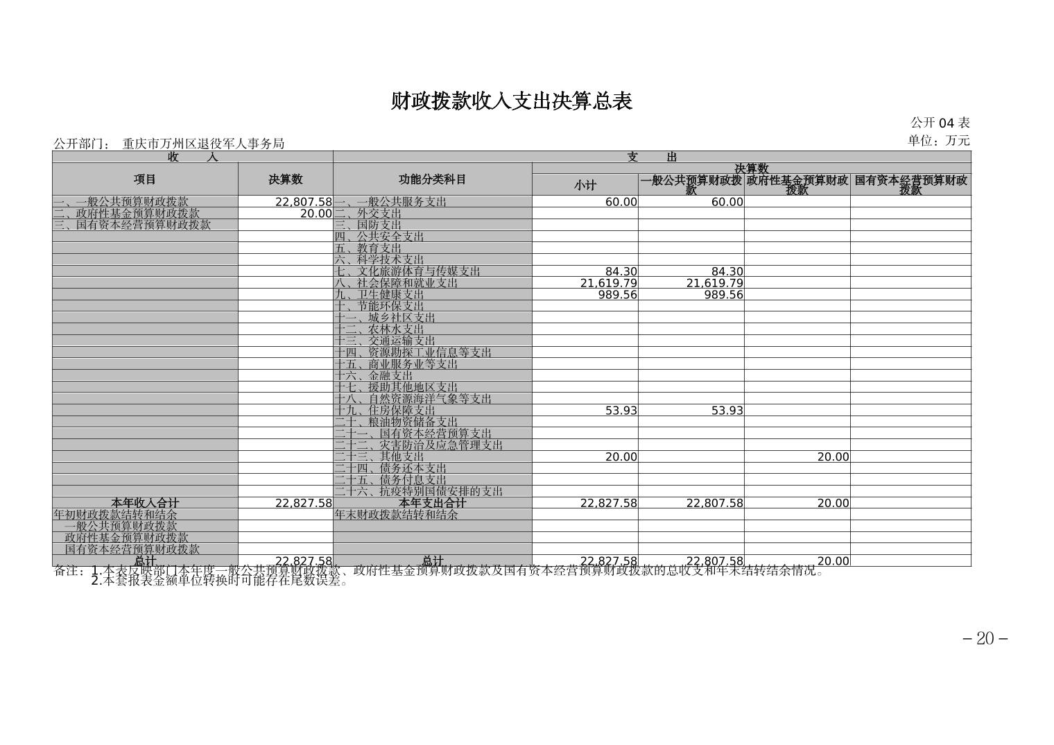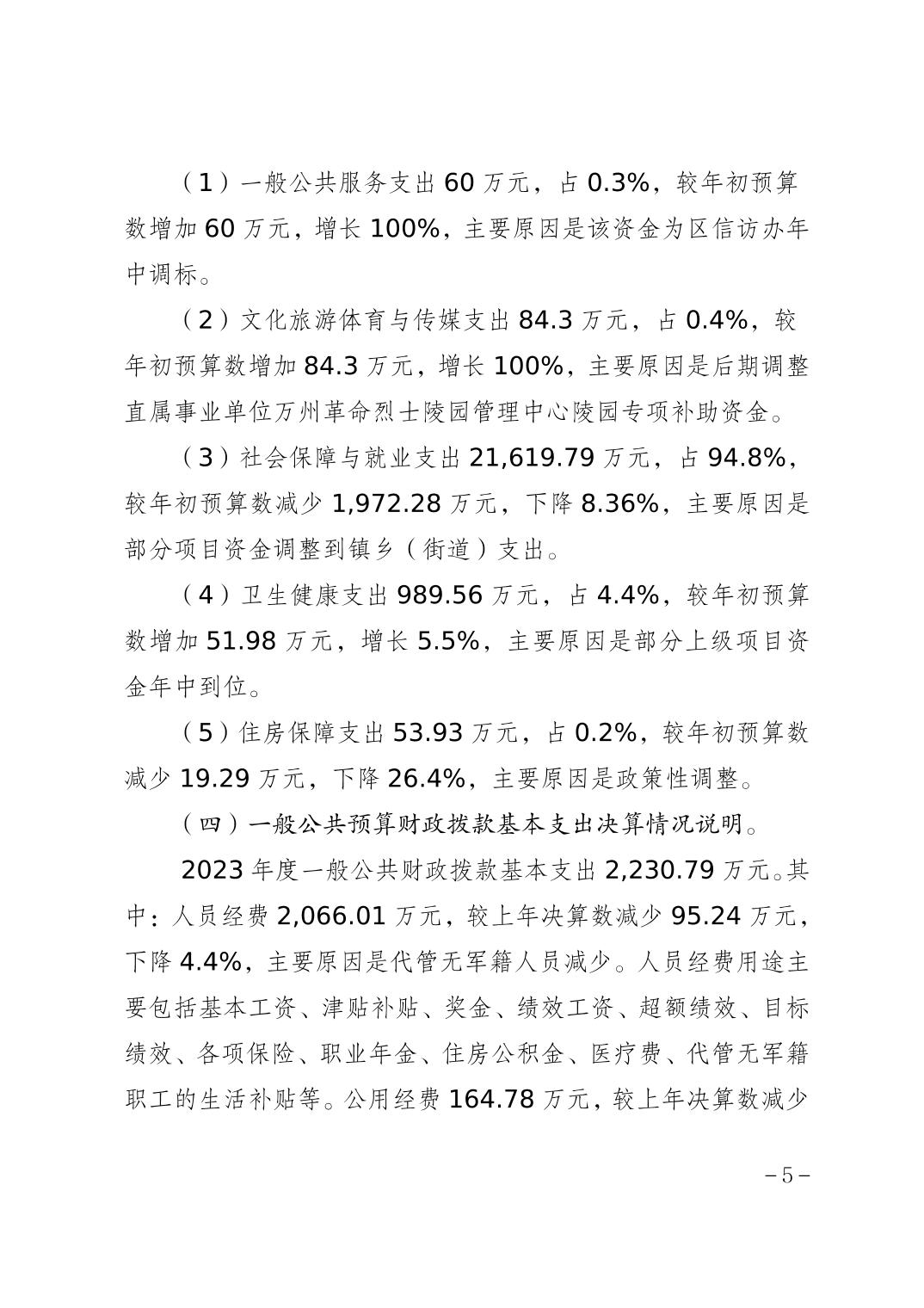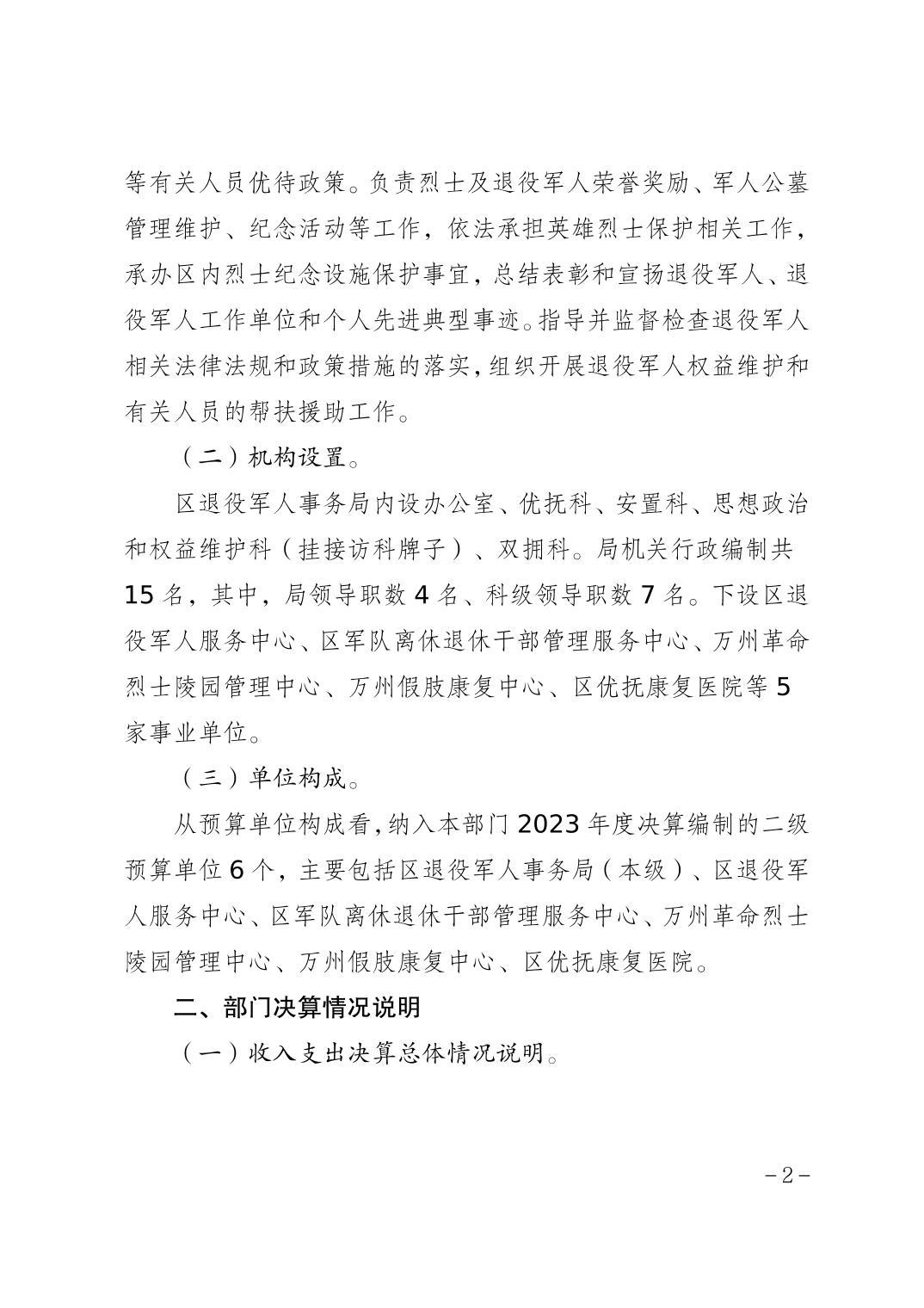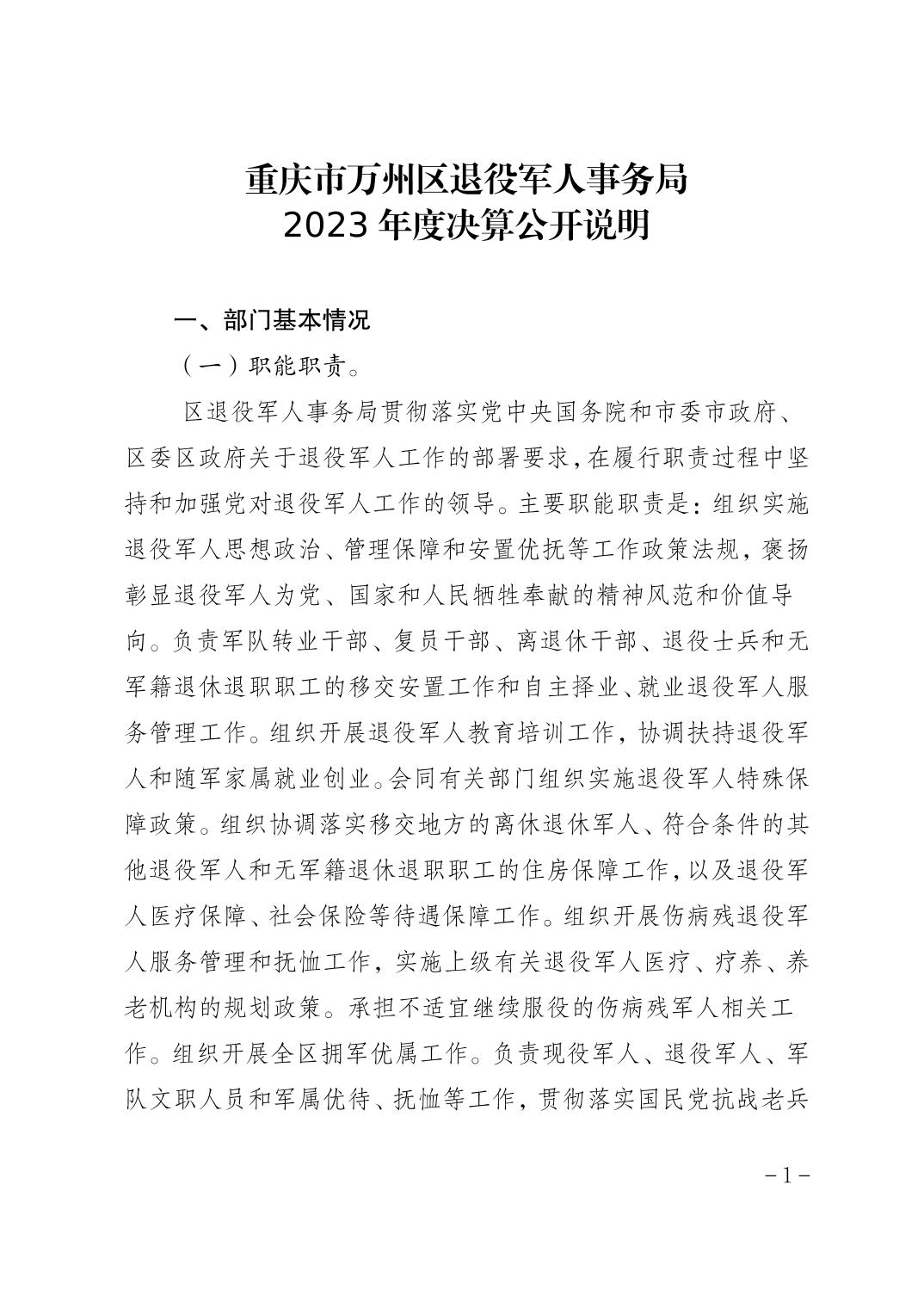 重慶市萬州區退役軍人事務局2023年度部門決算公開說明