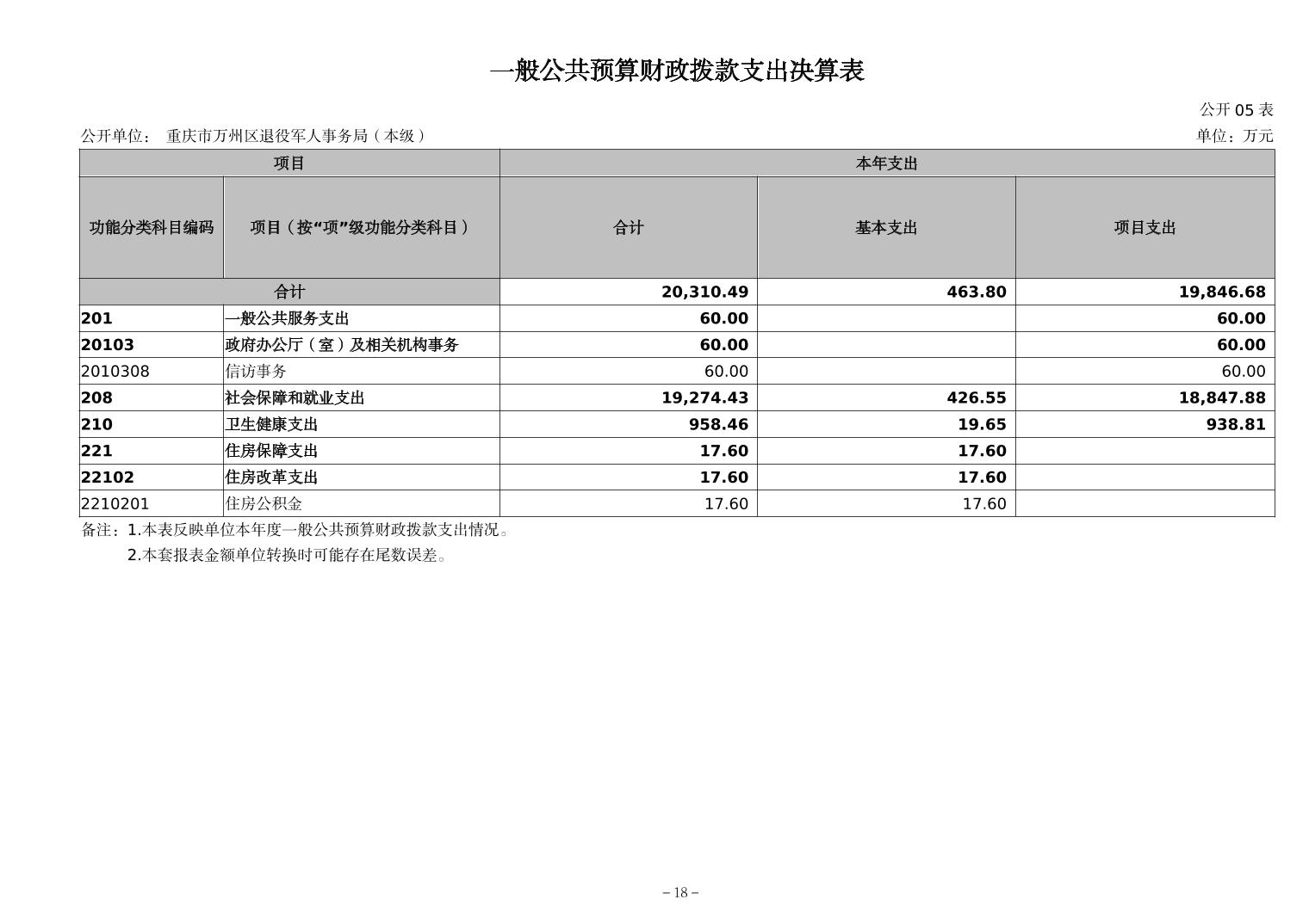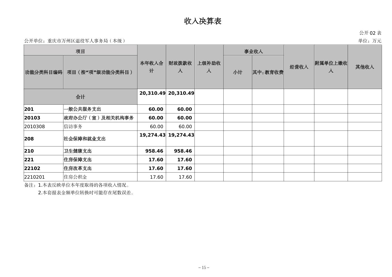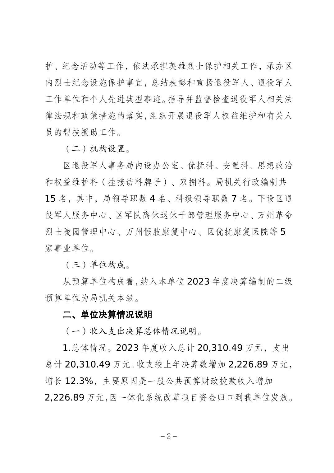 重慶市萬州區退役軍人事務局(本級)2023年度單位決算公開說明