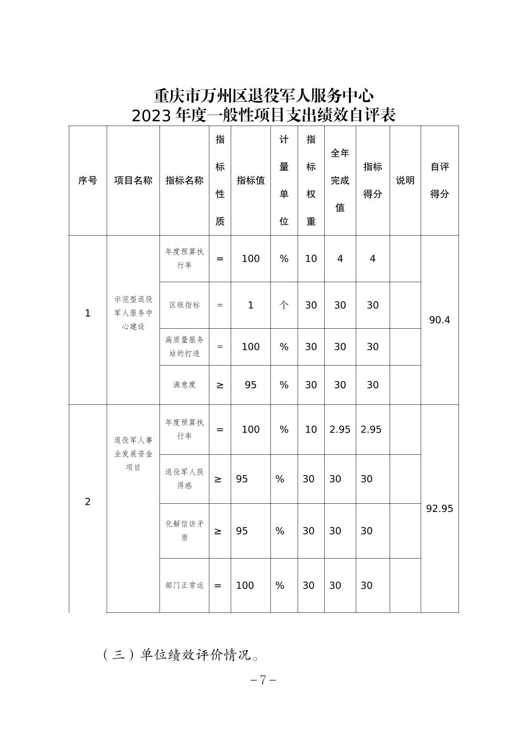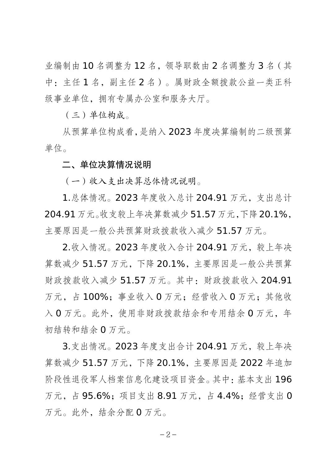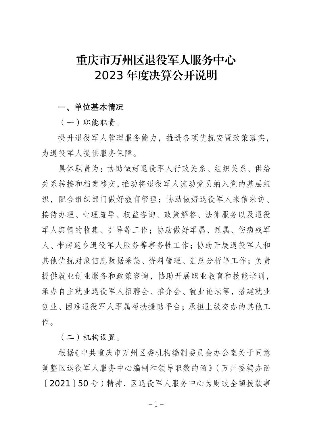 重慶市萬州區(qū)退役軍人服務(wù)中心2023年度單位決算公開說明