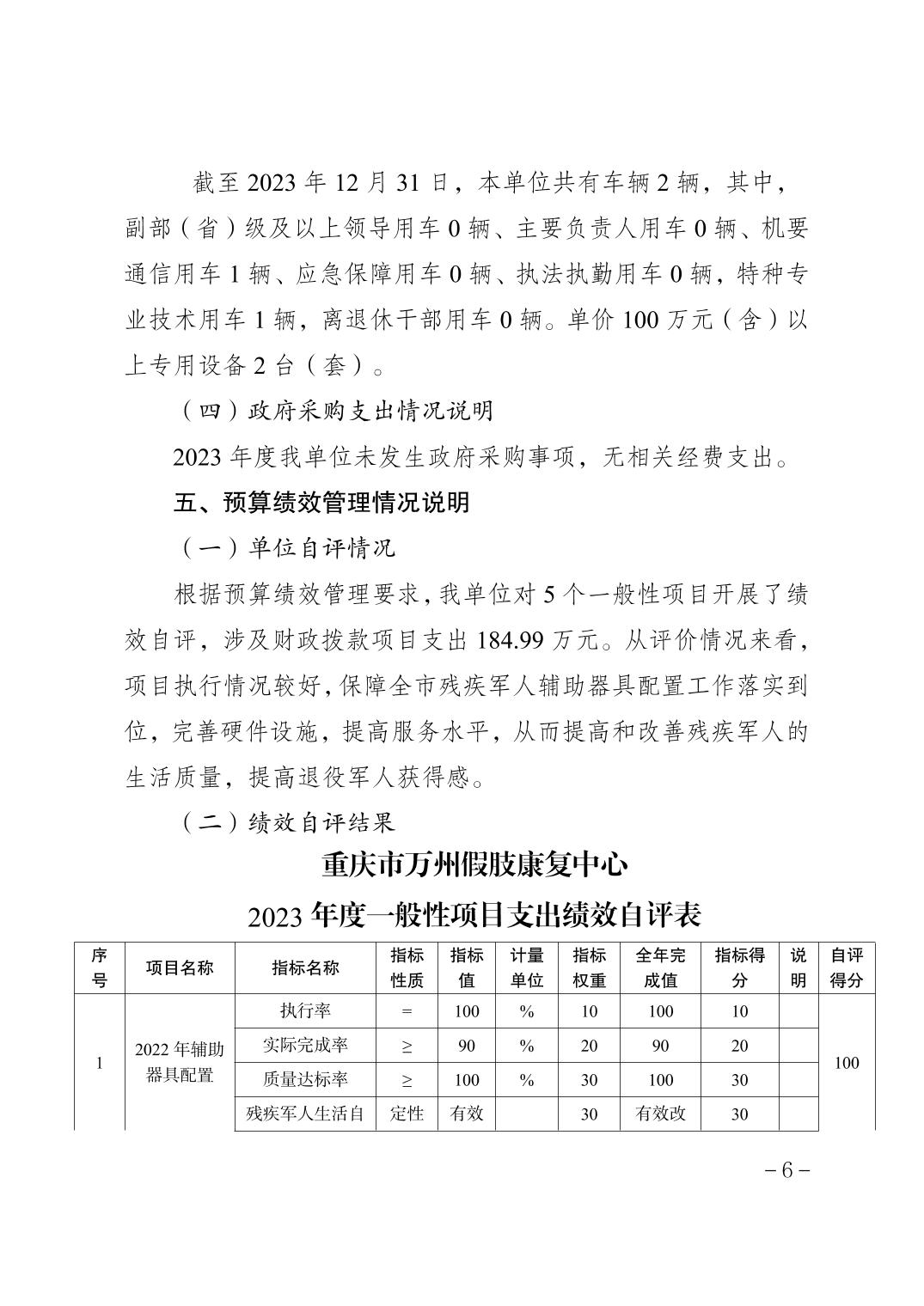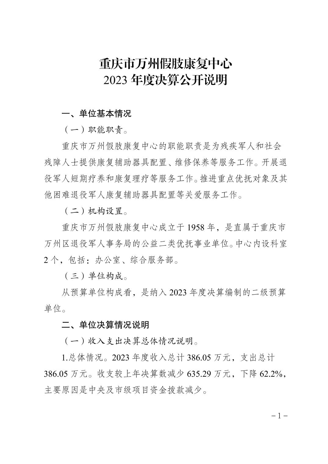 重慶市萬州假肢康復中心2023年決算公開說明