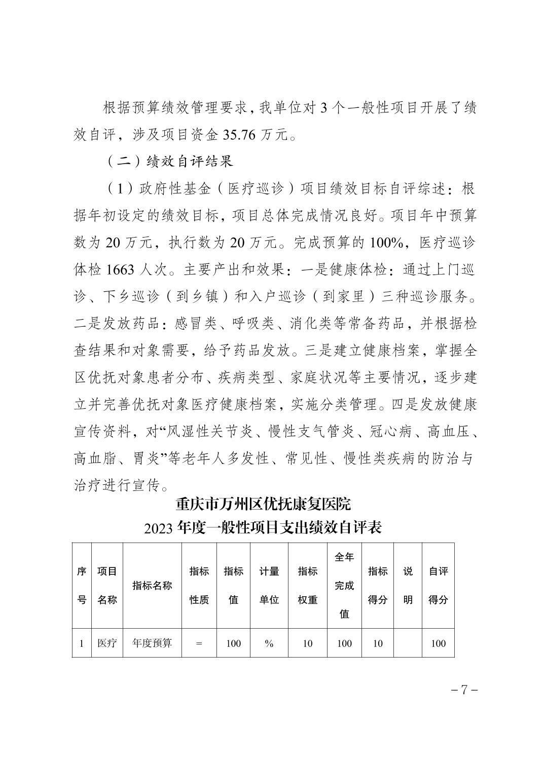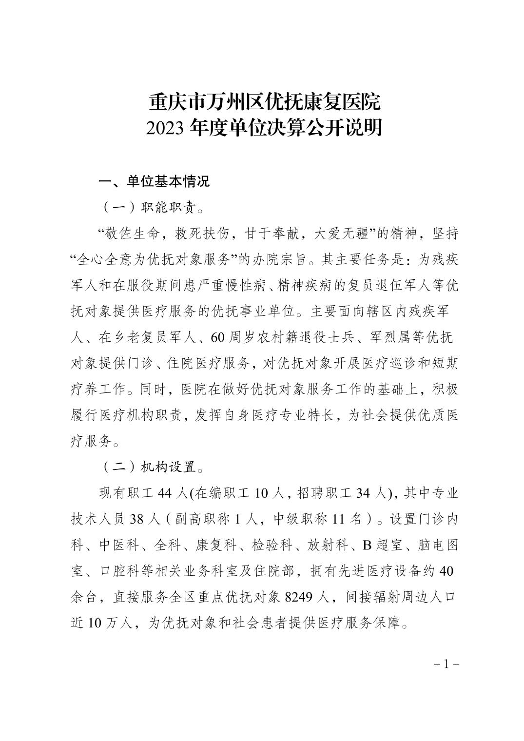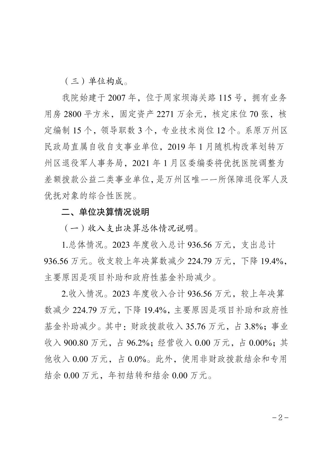 重慶市萬州區優撫康復醫院2023年決算公開說明