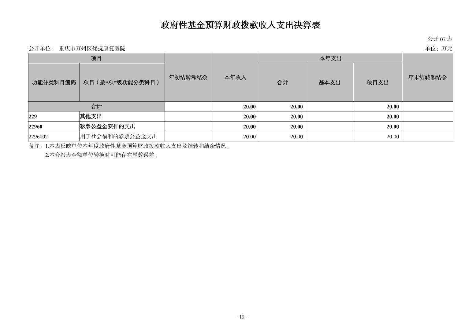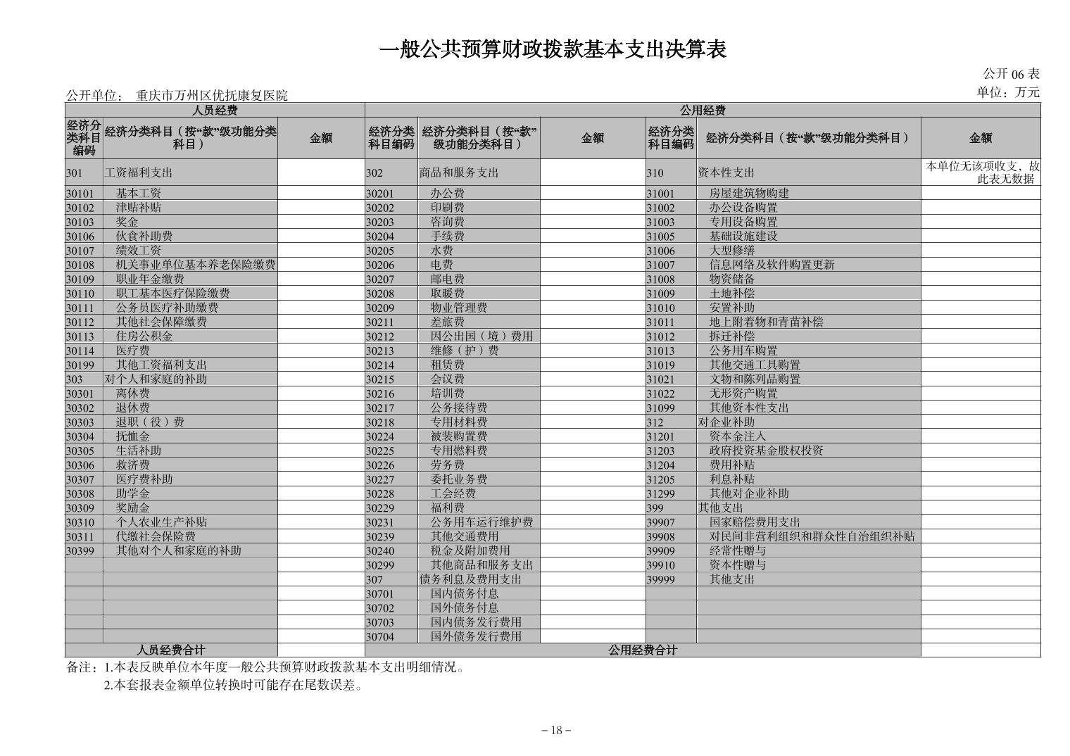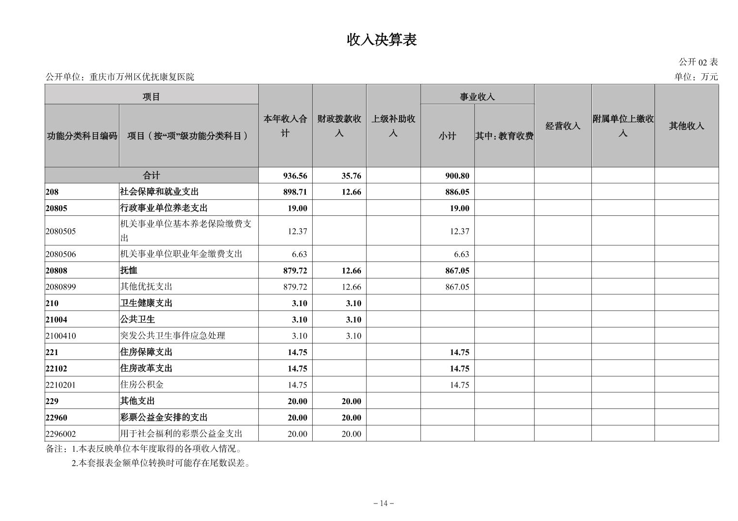 重慶市萬州區優撫康復醫院2023年決算公開說明