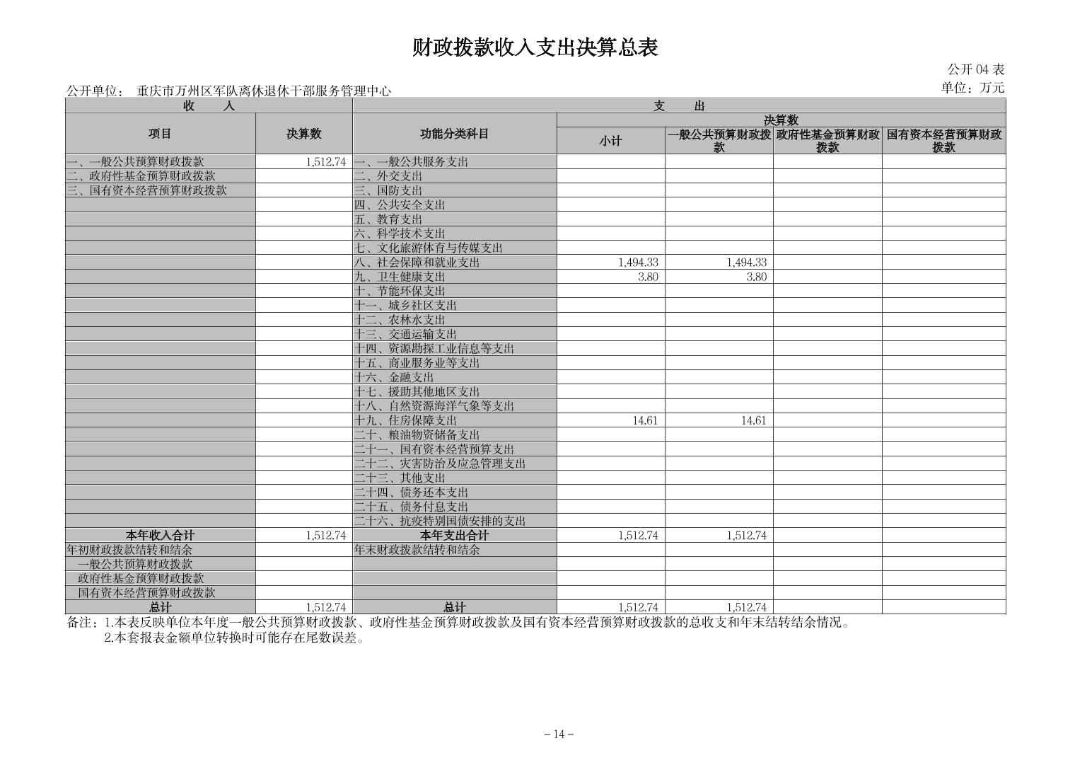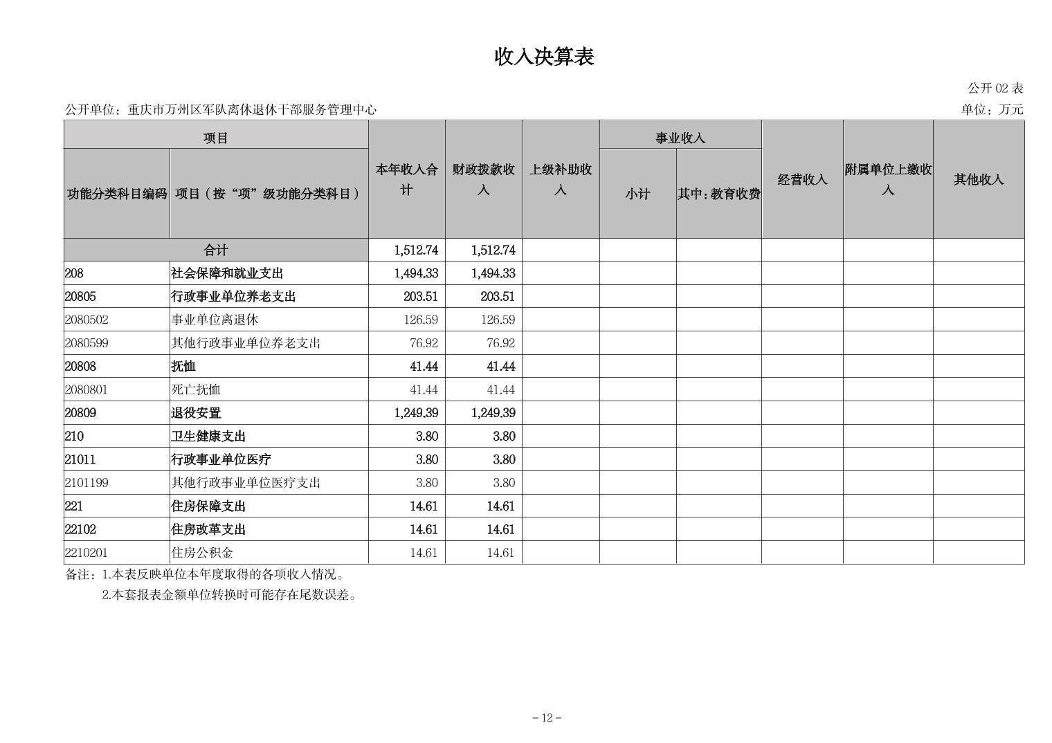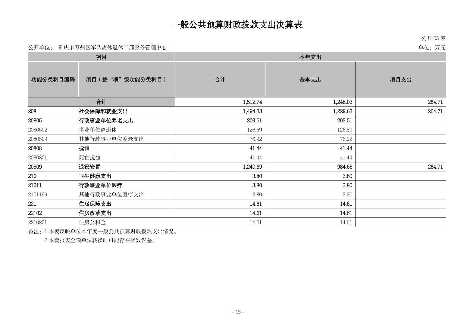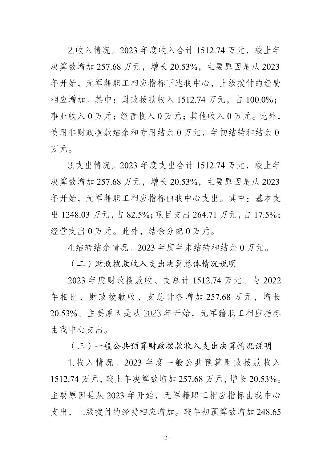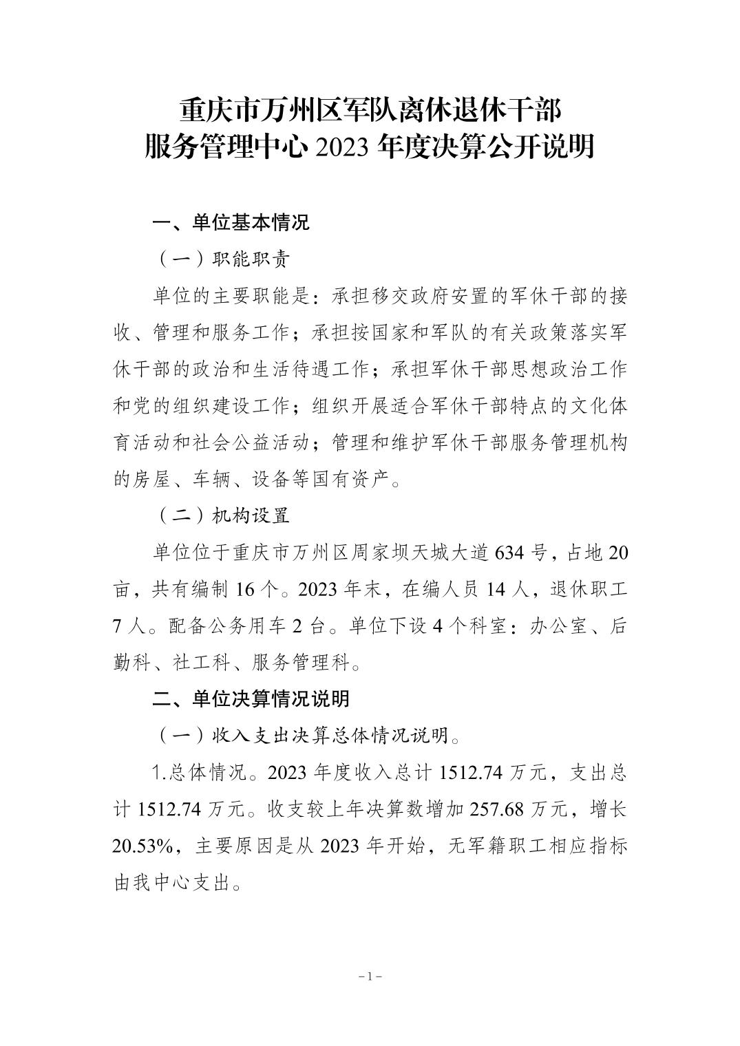 重慶市萬州區軍隊離休退休干部服務管理中心2023年決算公開說明