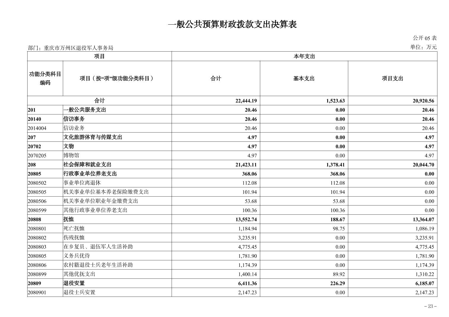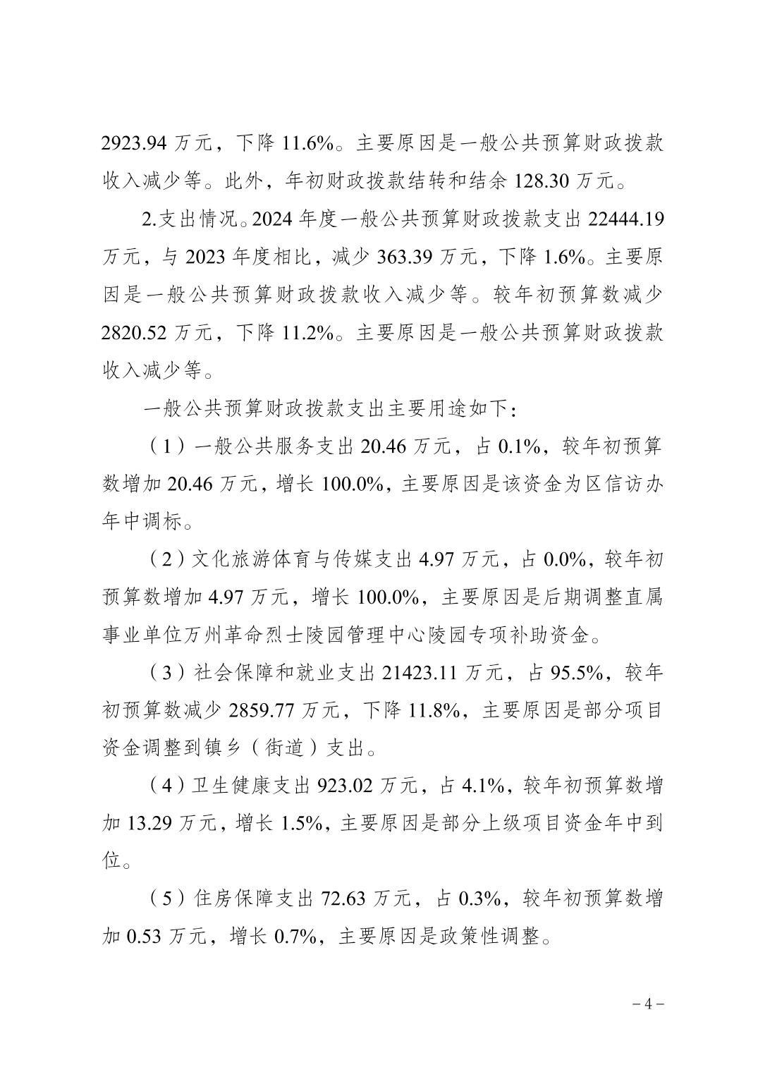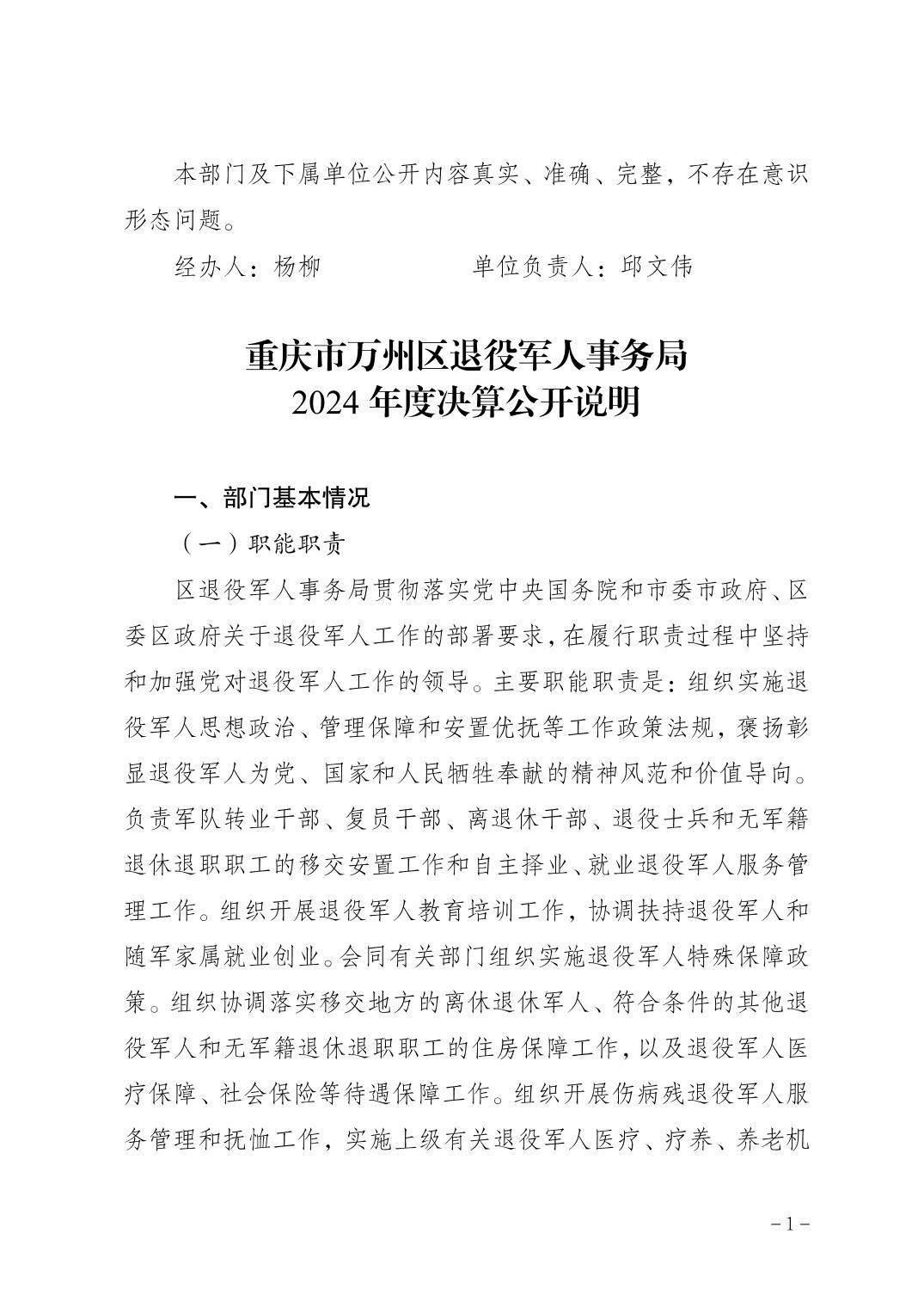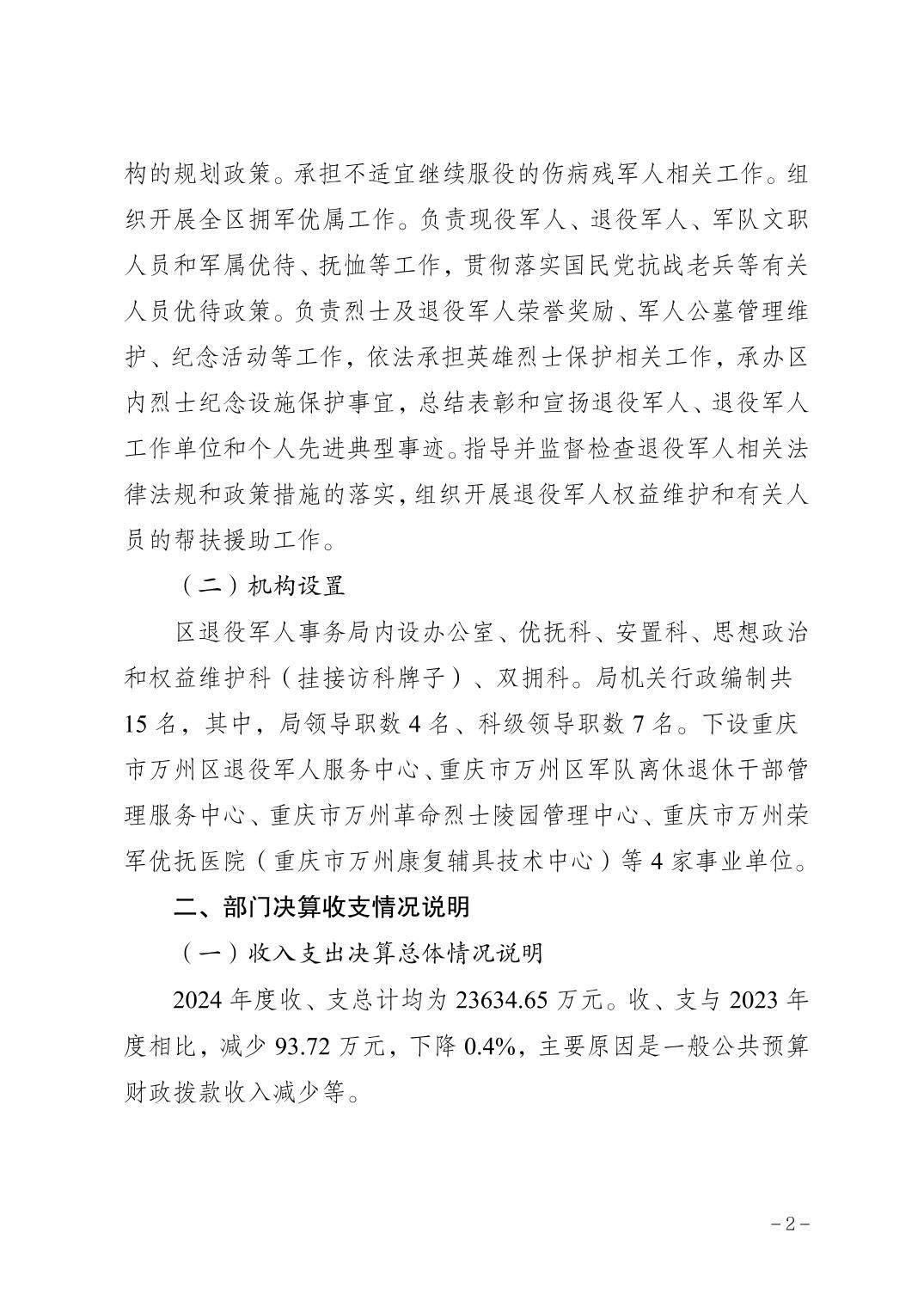 重慶市萬州區退役軍人事務局 2024年度決算公開說明