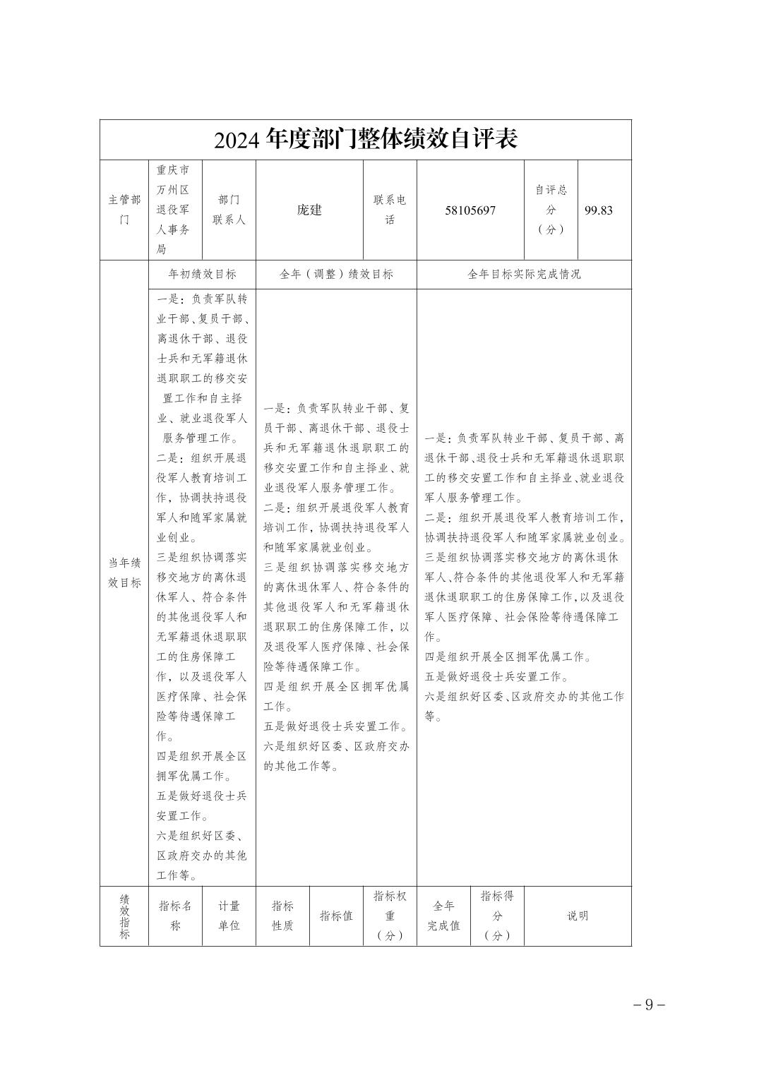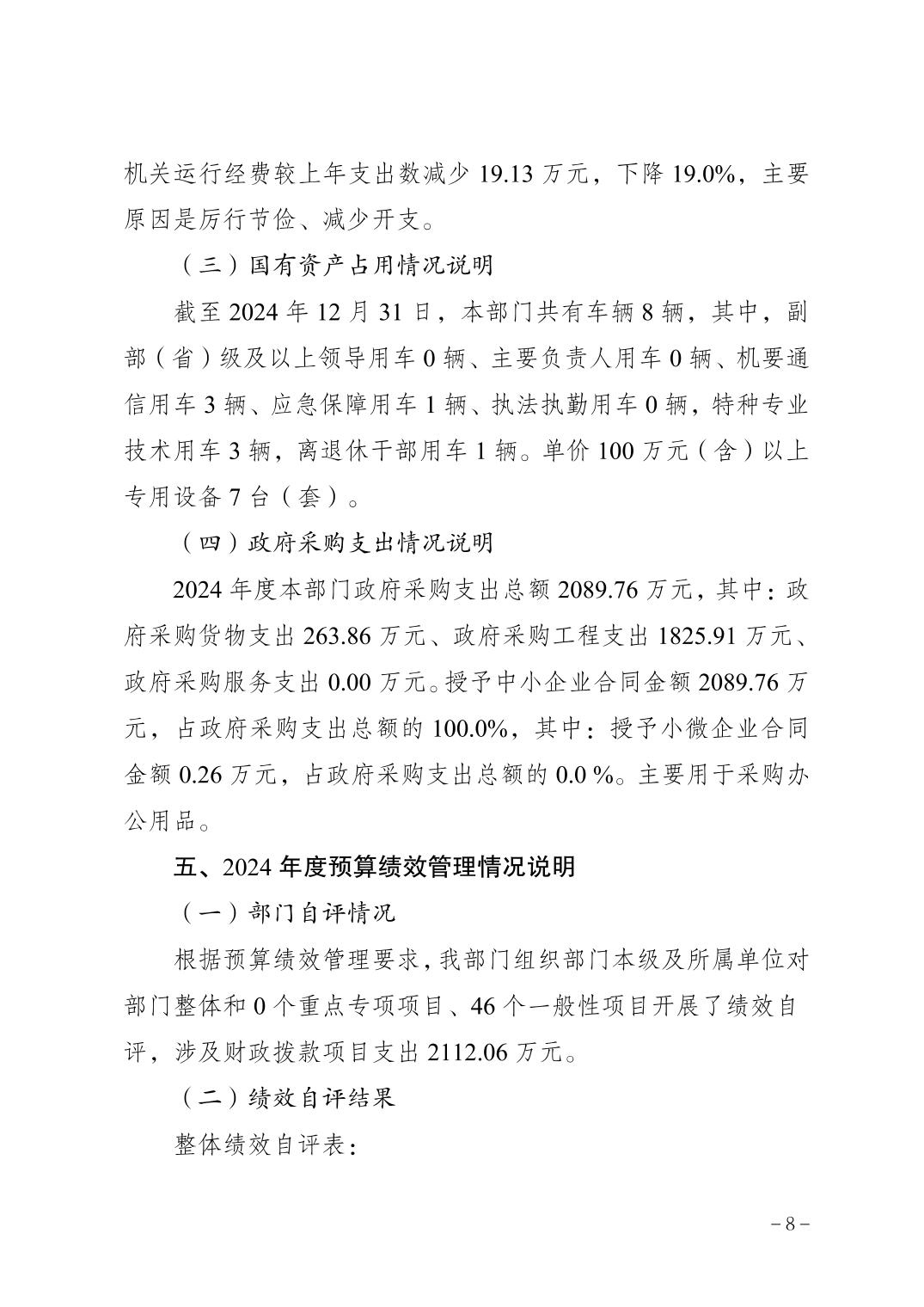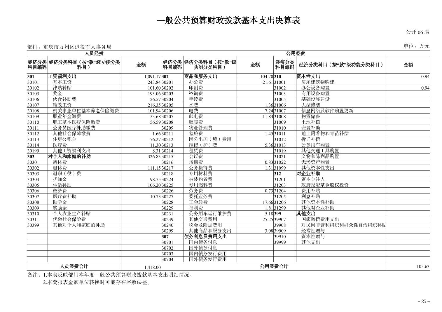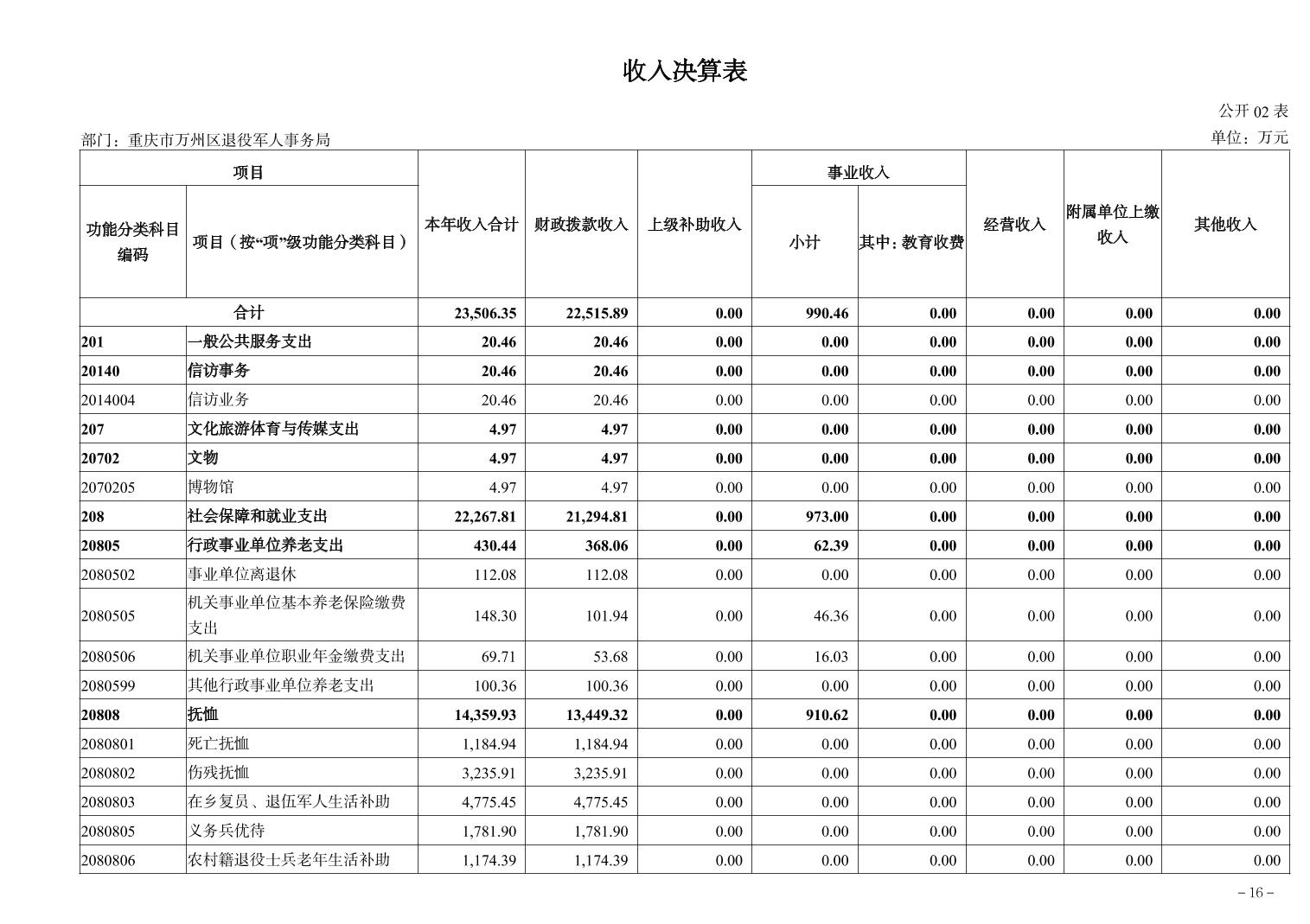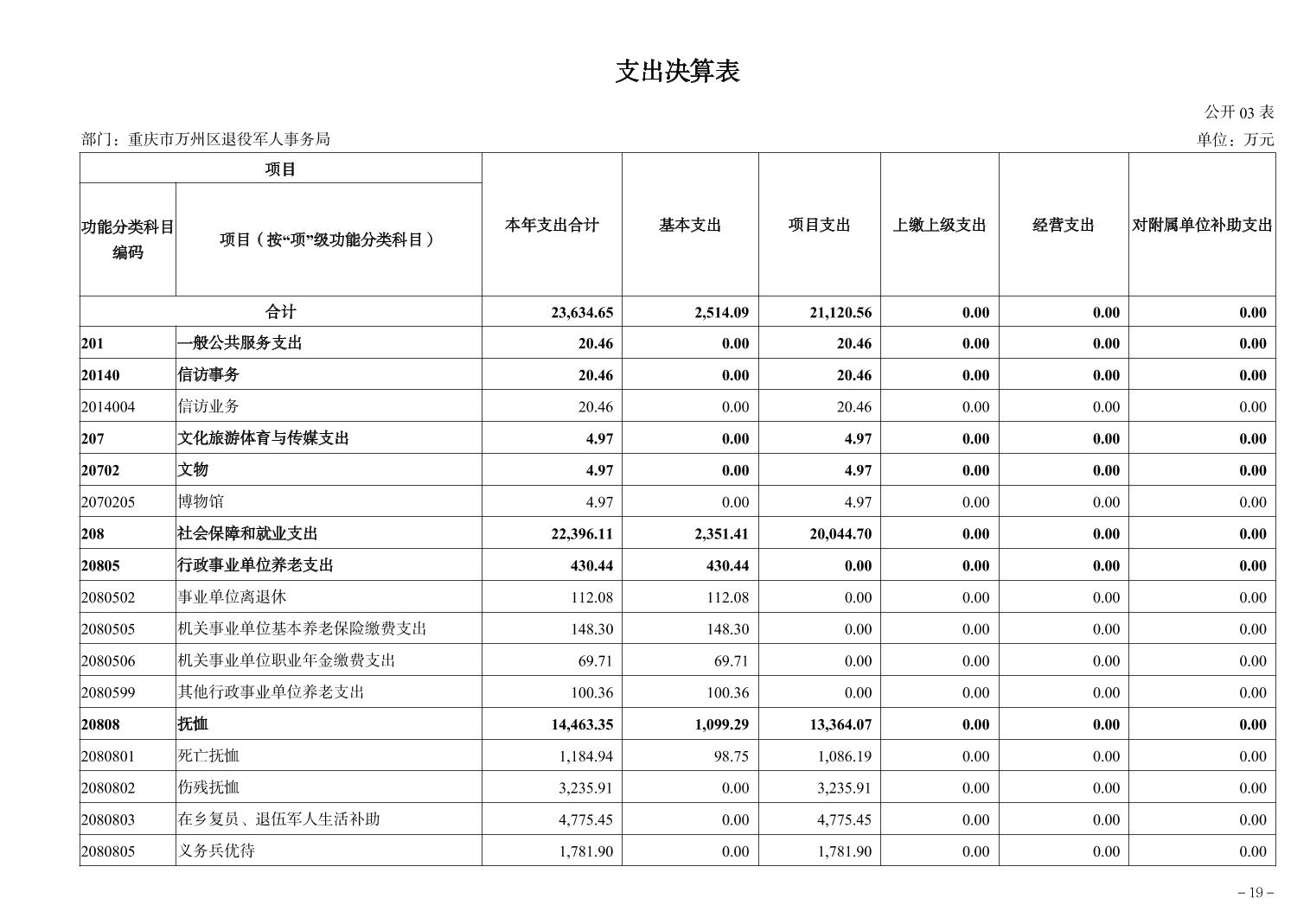 重慶市萬州區退役軍人事務局 2024年度決算公開說明