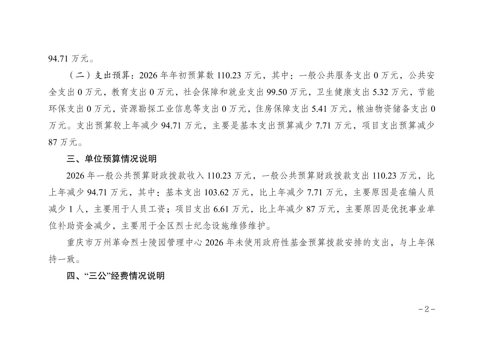 重慶市萬州革命烈士陵園管理中心 2026年單位預算情況說明