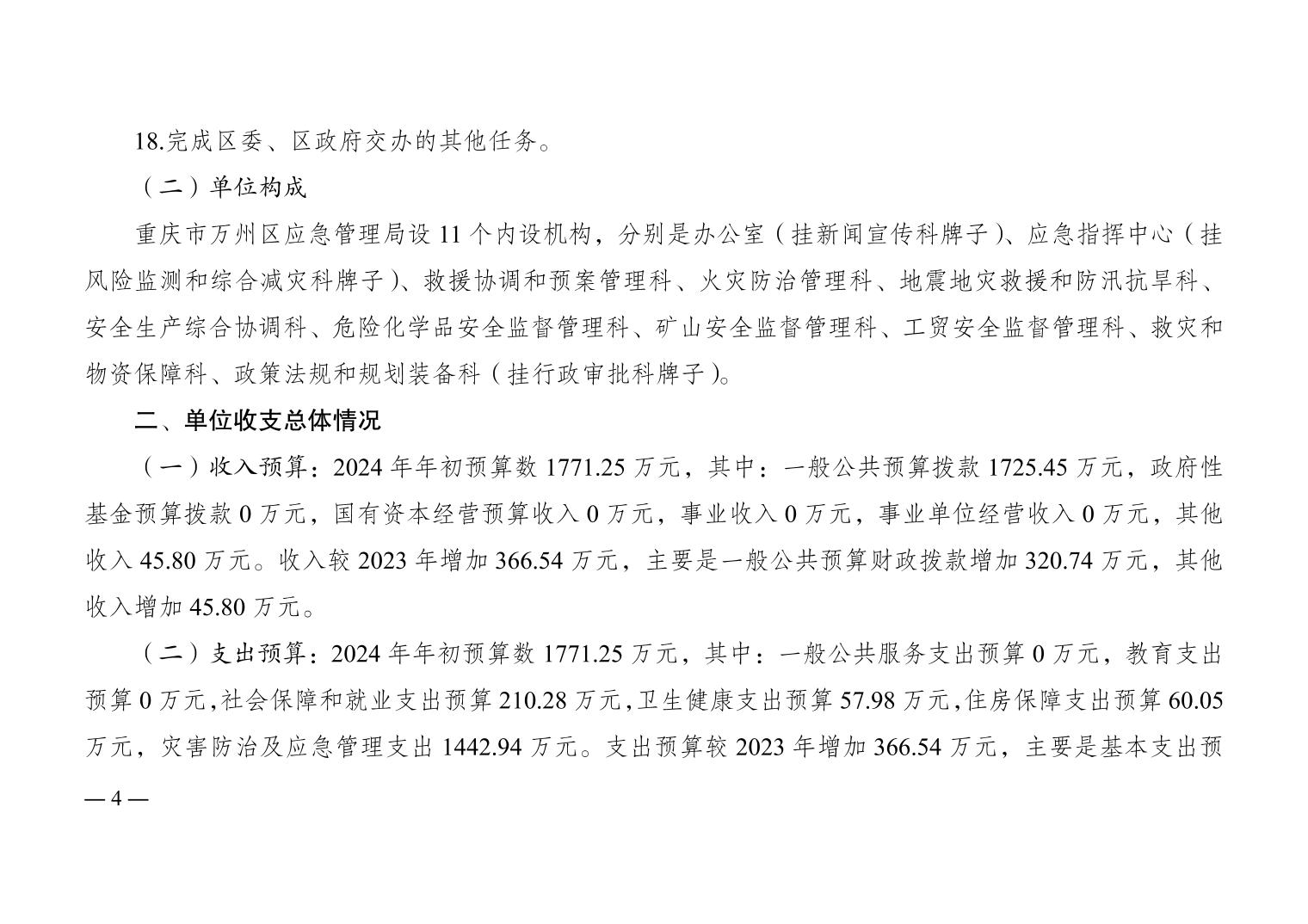 重慶市萬州區應急管理局(本級)2024年單位預算情況說明