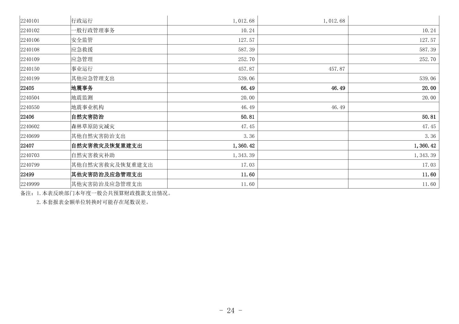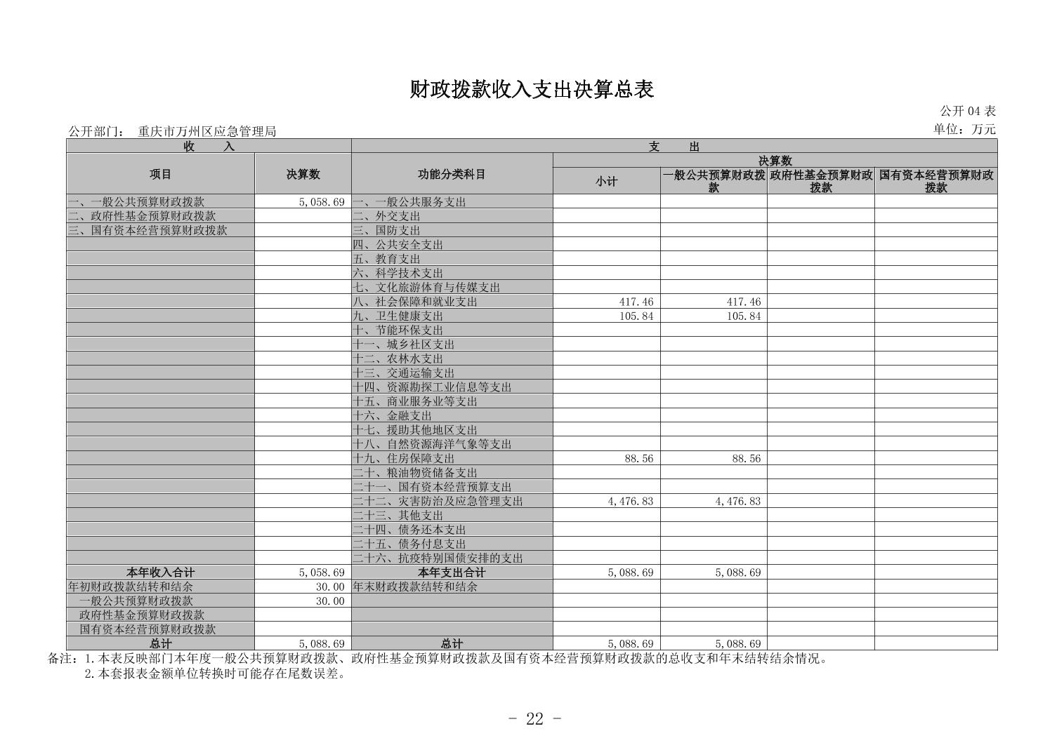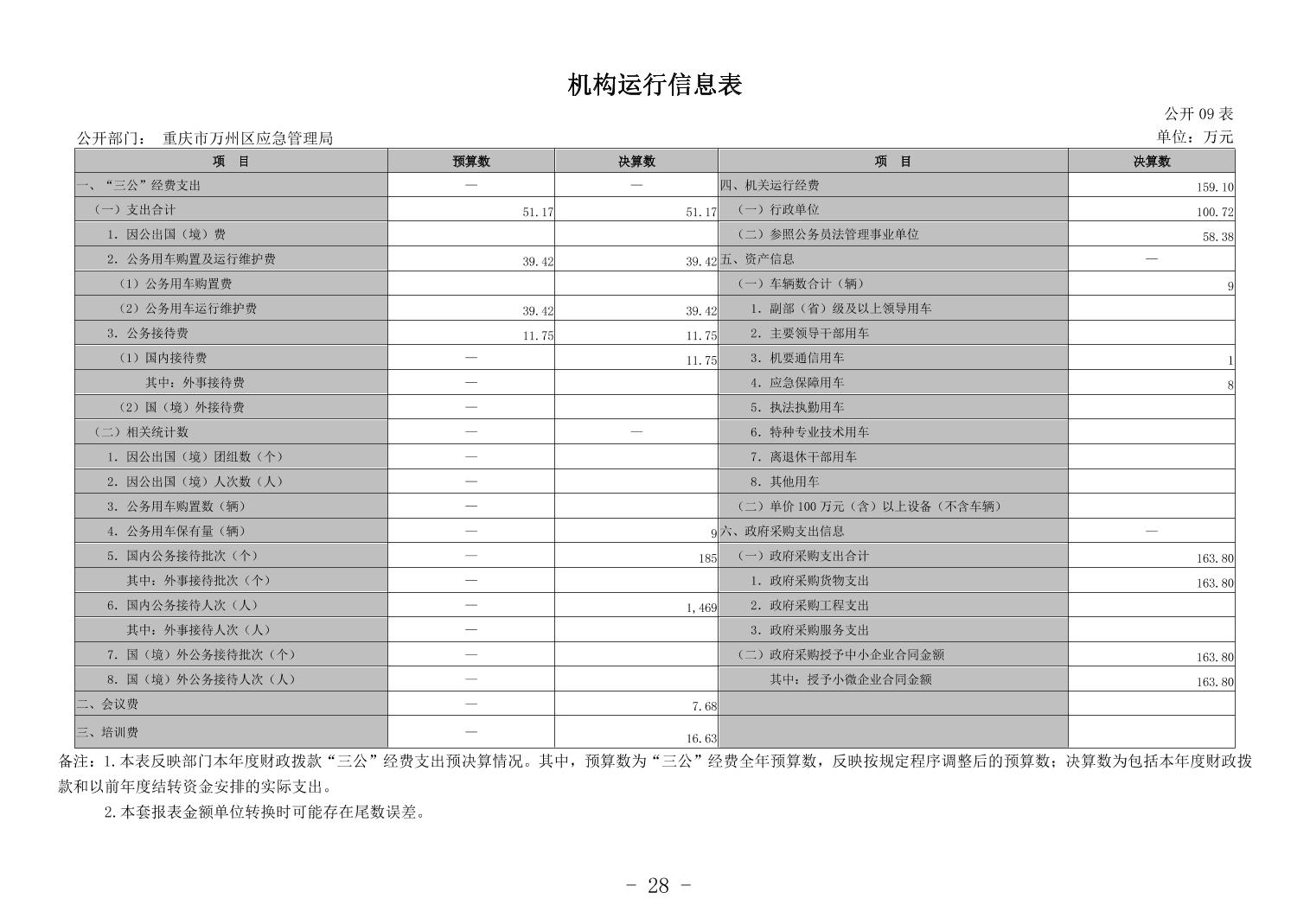 重慶市萬州區應急管理局2023年度決算公開說明及報表