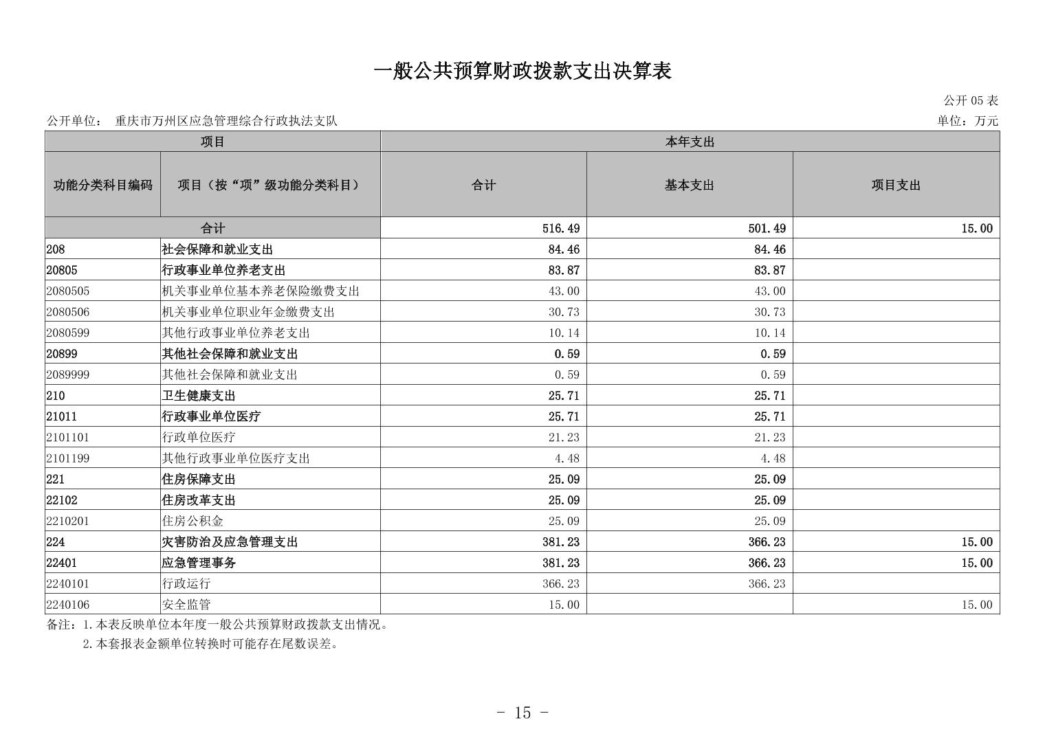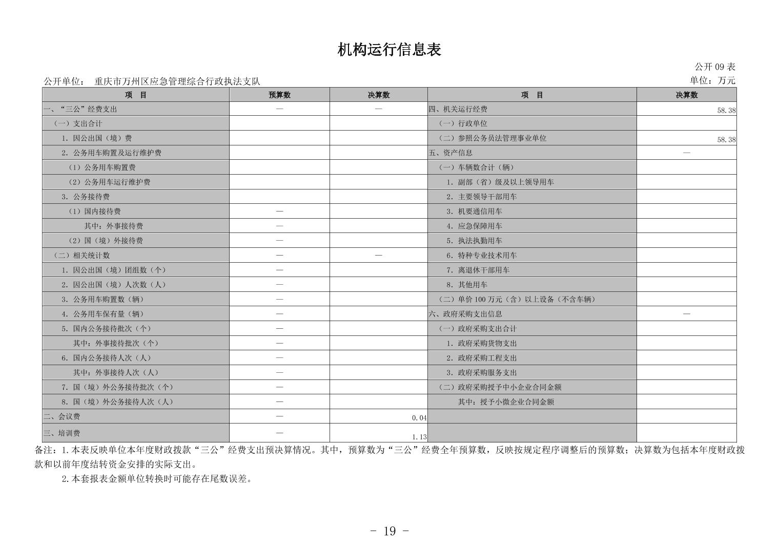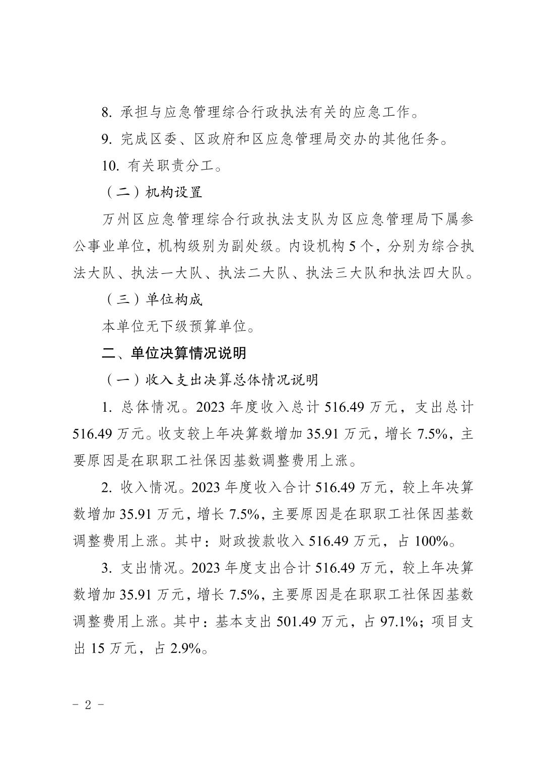 重慶市萬州區應急管理綜合行政執法支隊2023年度決算公開說明及報表