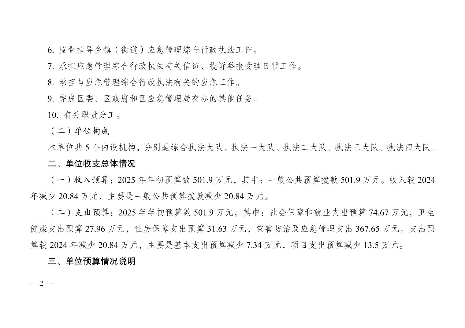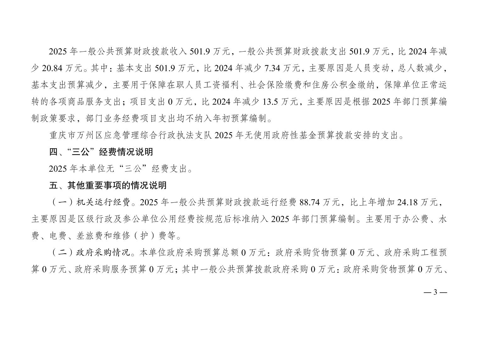 重慶市萬州區應急管理綜合行政執法支隊2025年單位預算情況說明