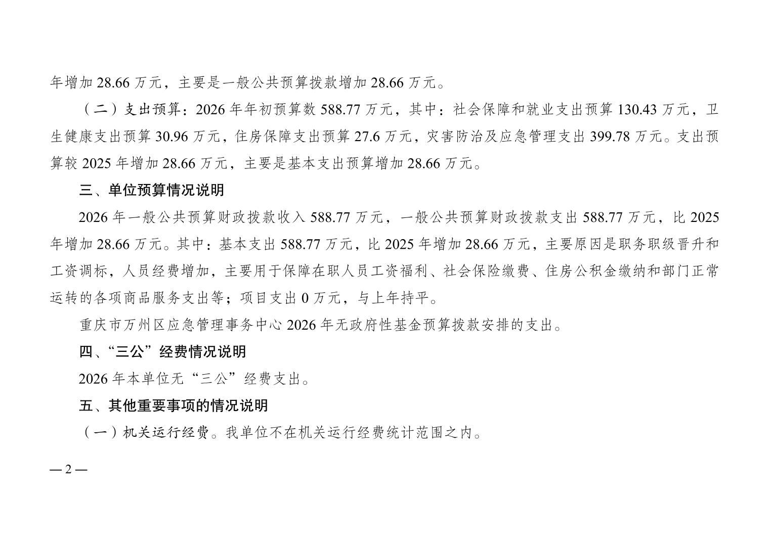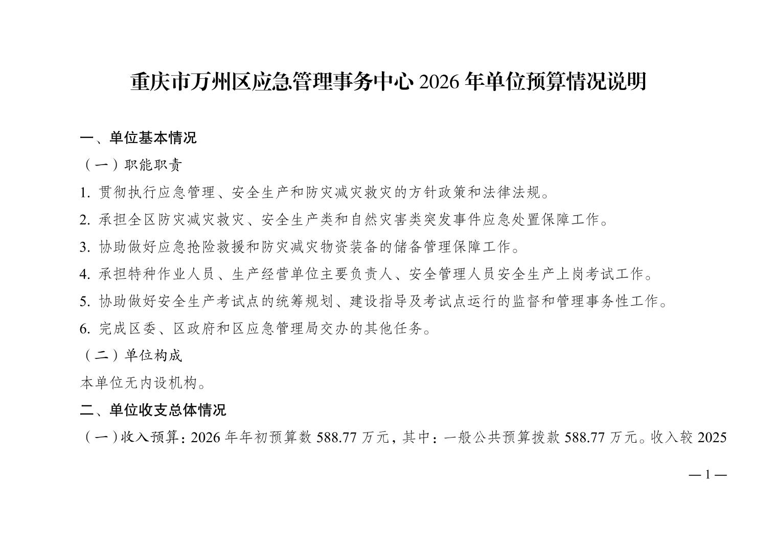 重慶市萬州區應急管理事務中心2026年單位預算情況說明