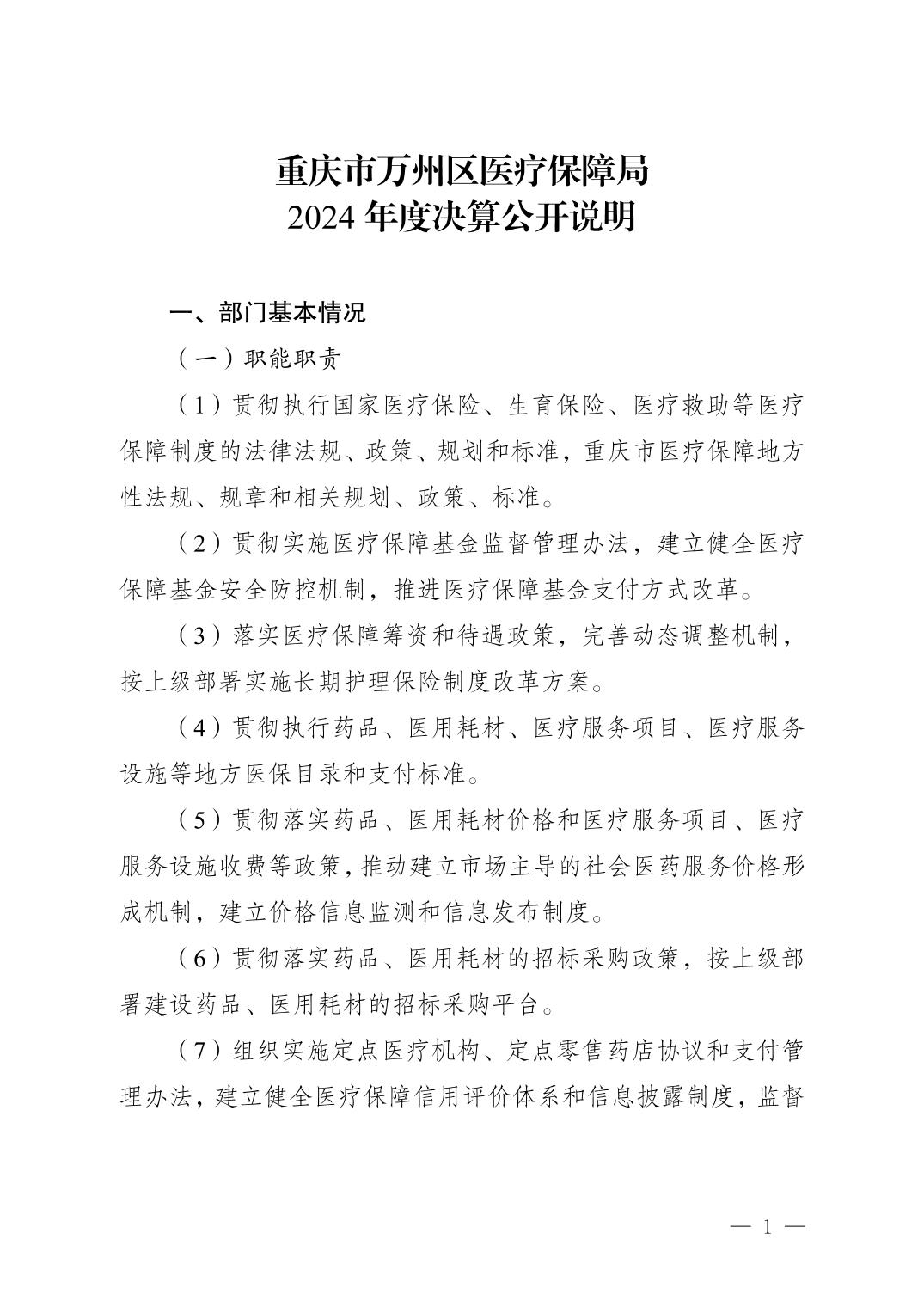 重慶市萬(wàn)州區(qū)醫(yī)療保障局2024年決算公開(kāi)說(shuō)明及公開(kāi)報(bào)表